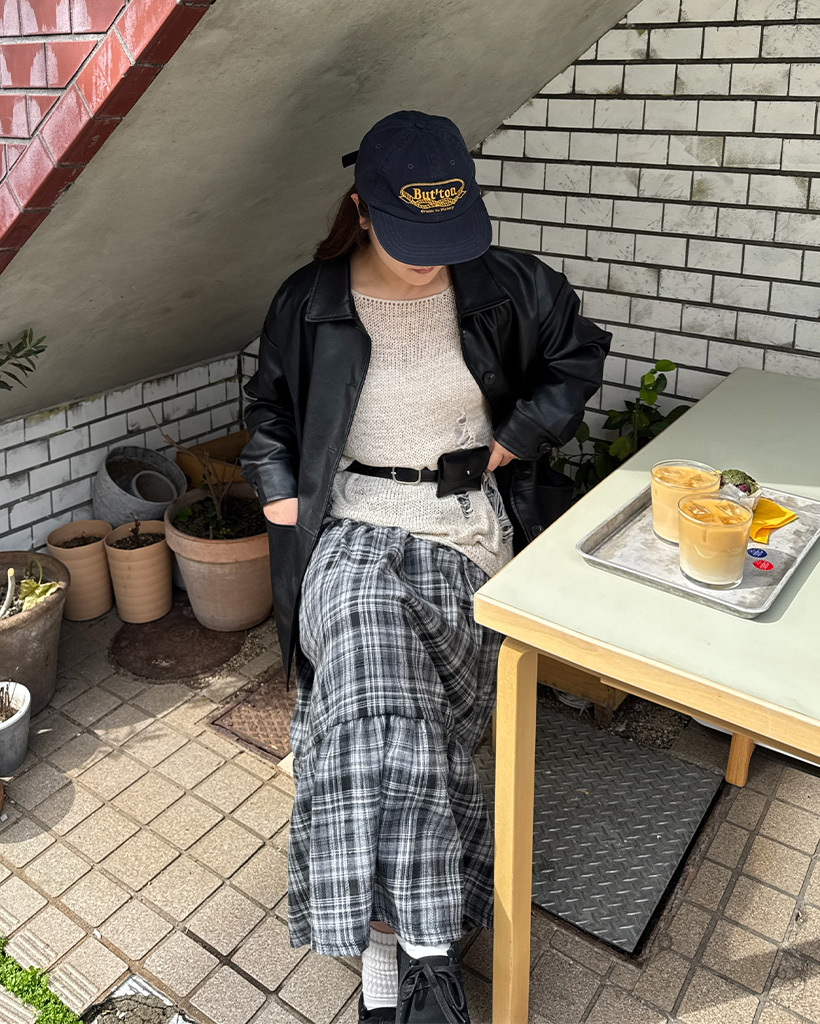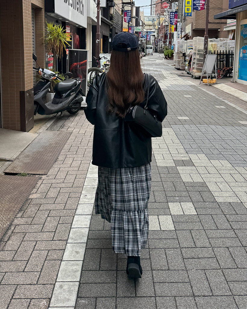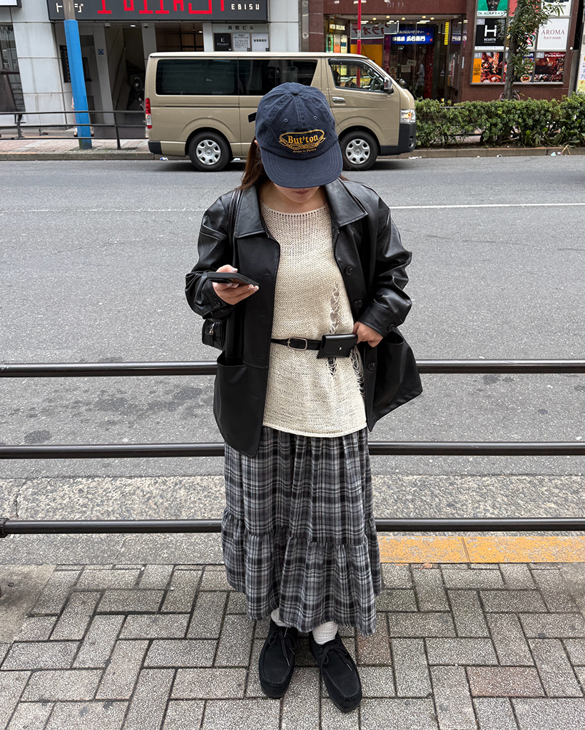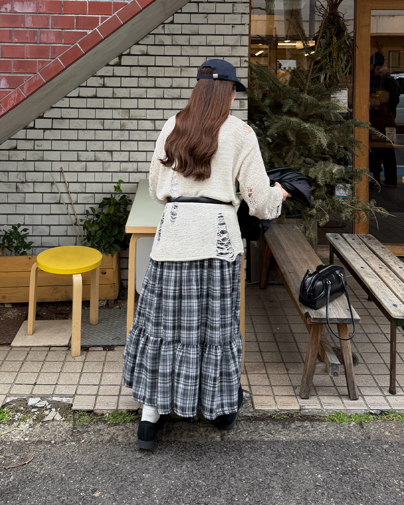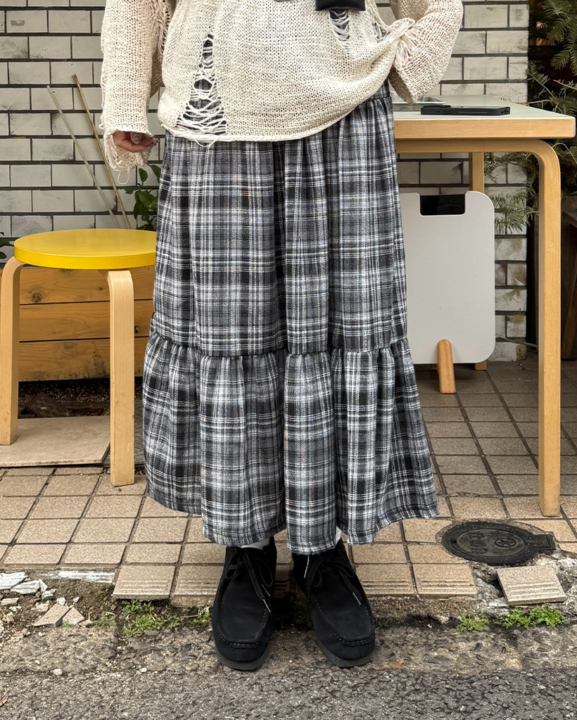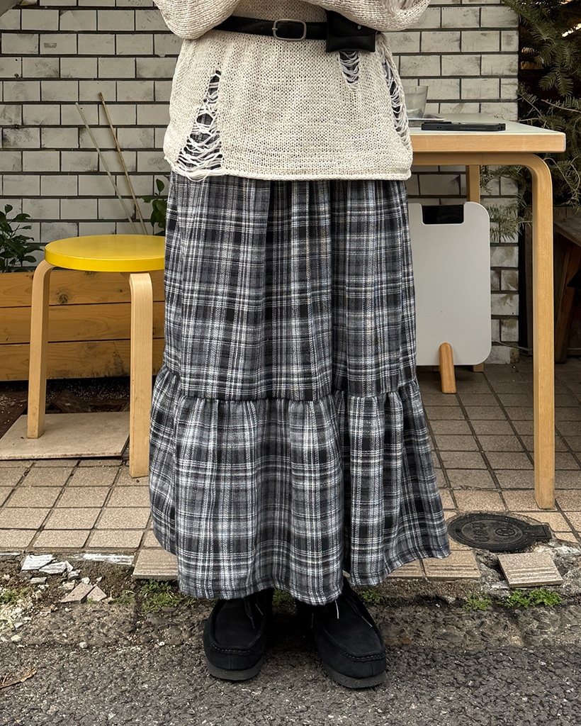 チェックシャーリングロングスカート