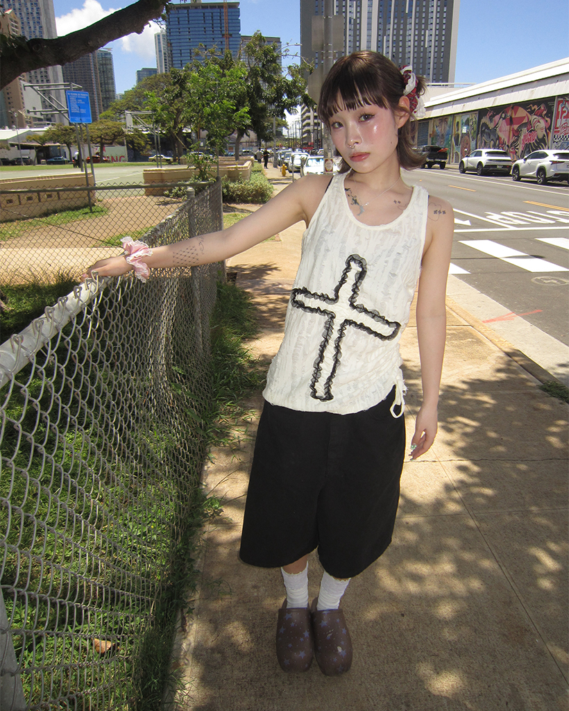 バッグタグワイドバミューダコットンパンツ
