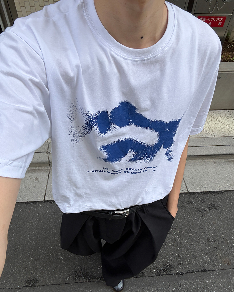 (ユニセックス)スプレーユニークデザインハーフTシャツ