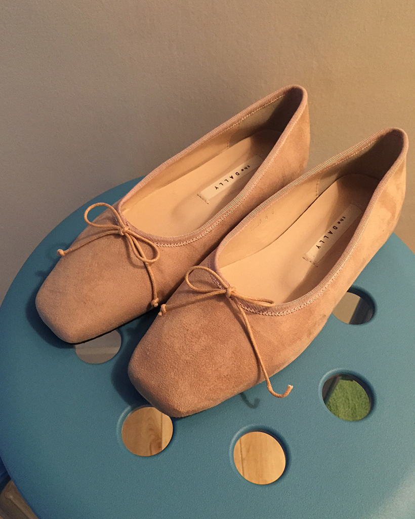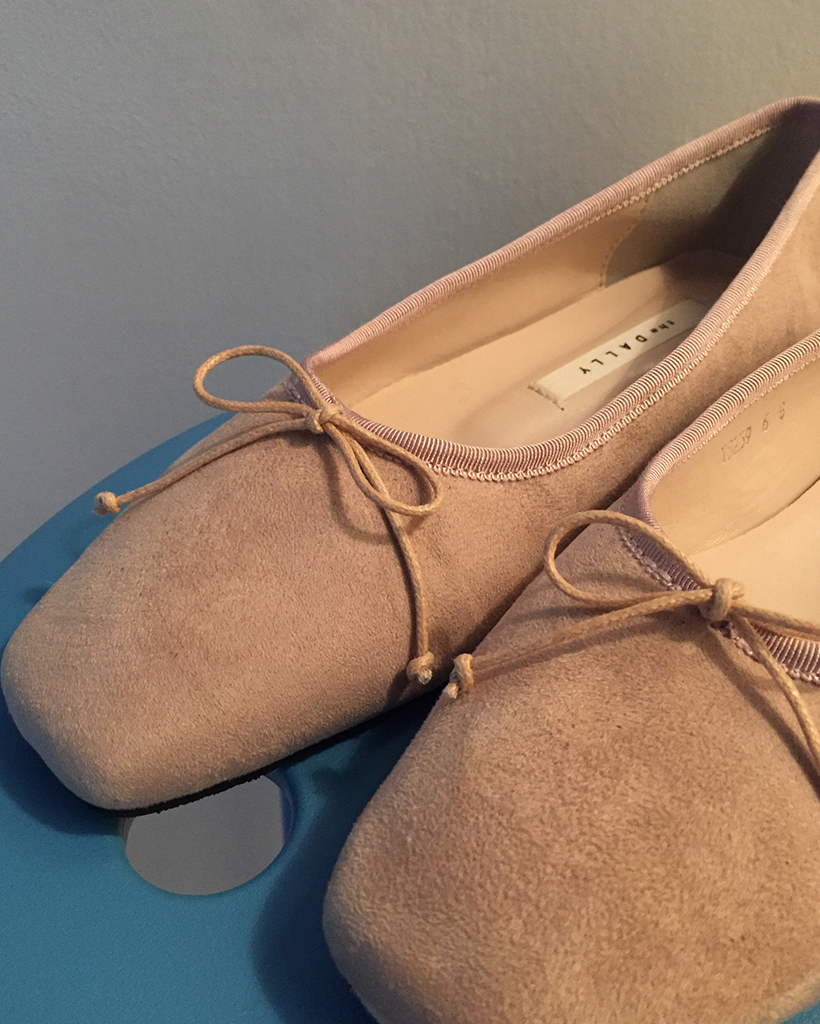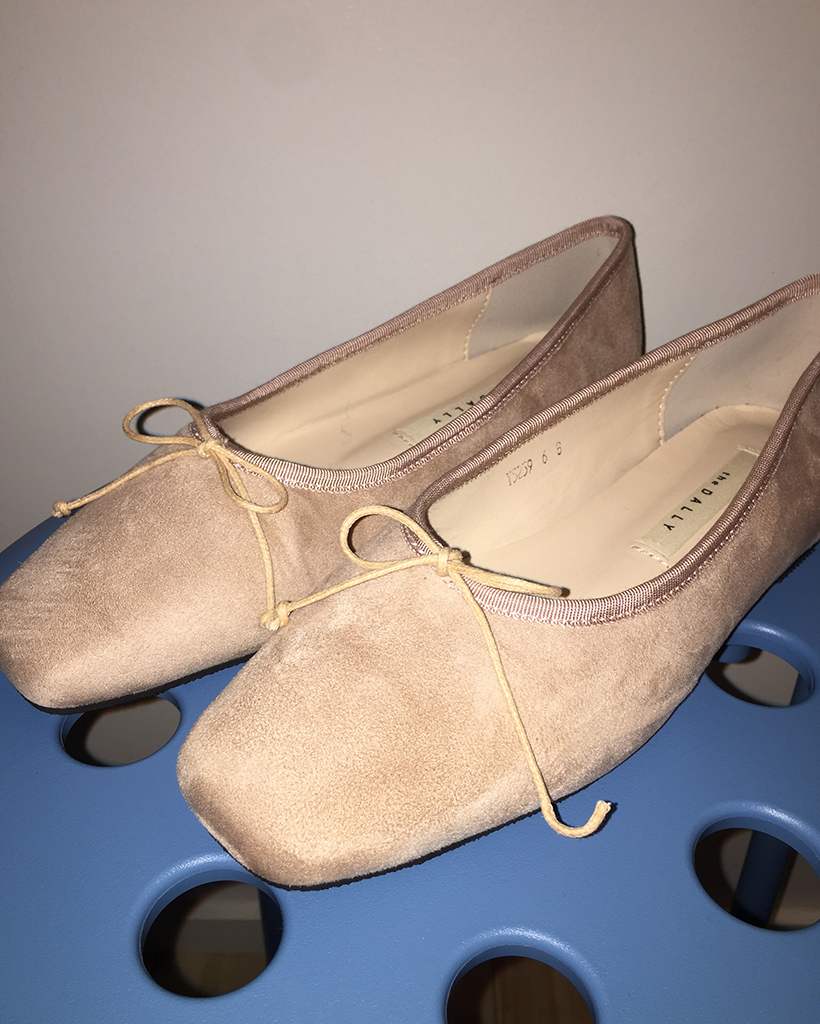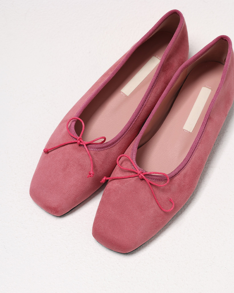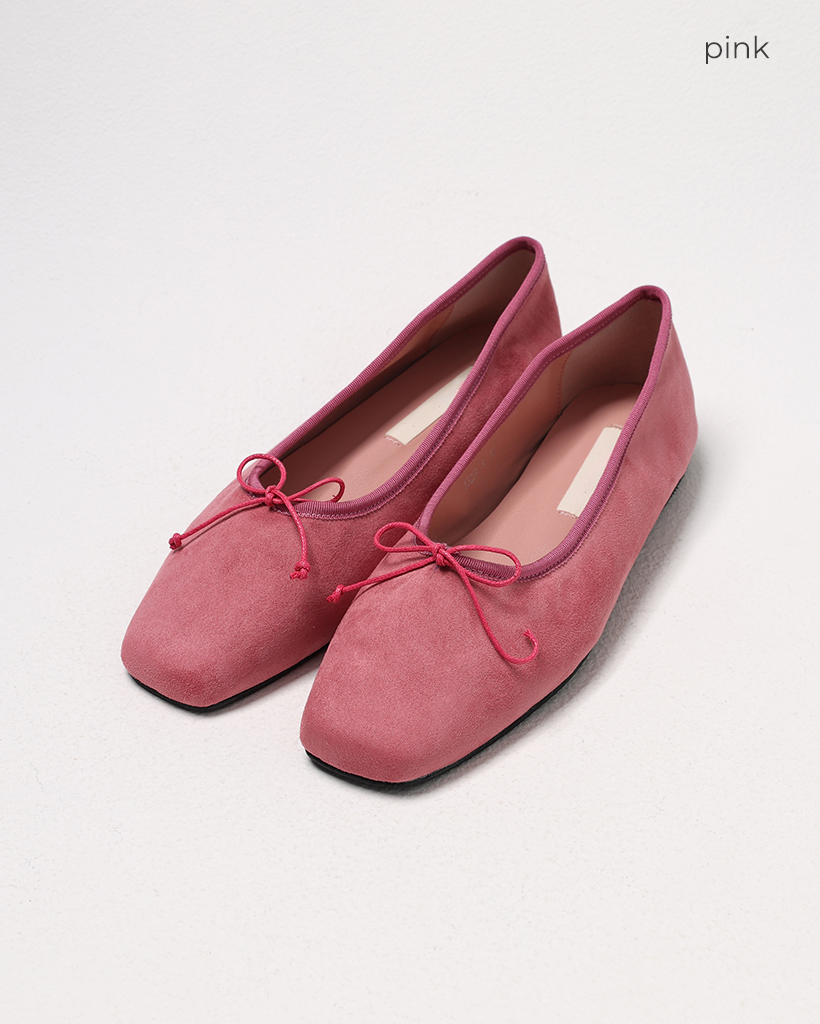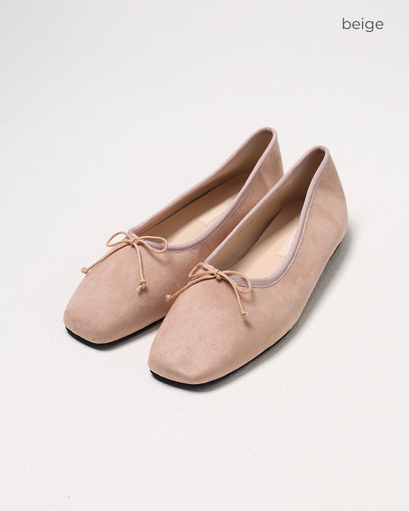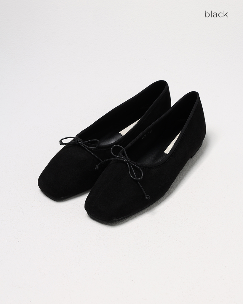 リボンスクエアトゥフラットシューズ