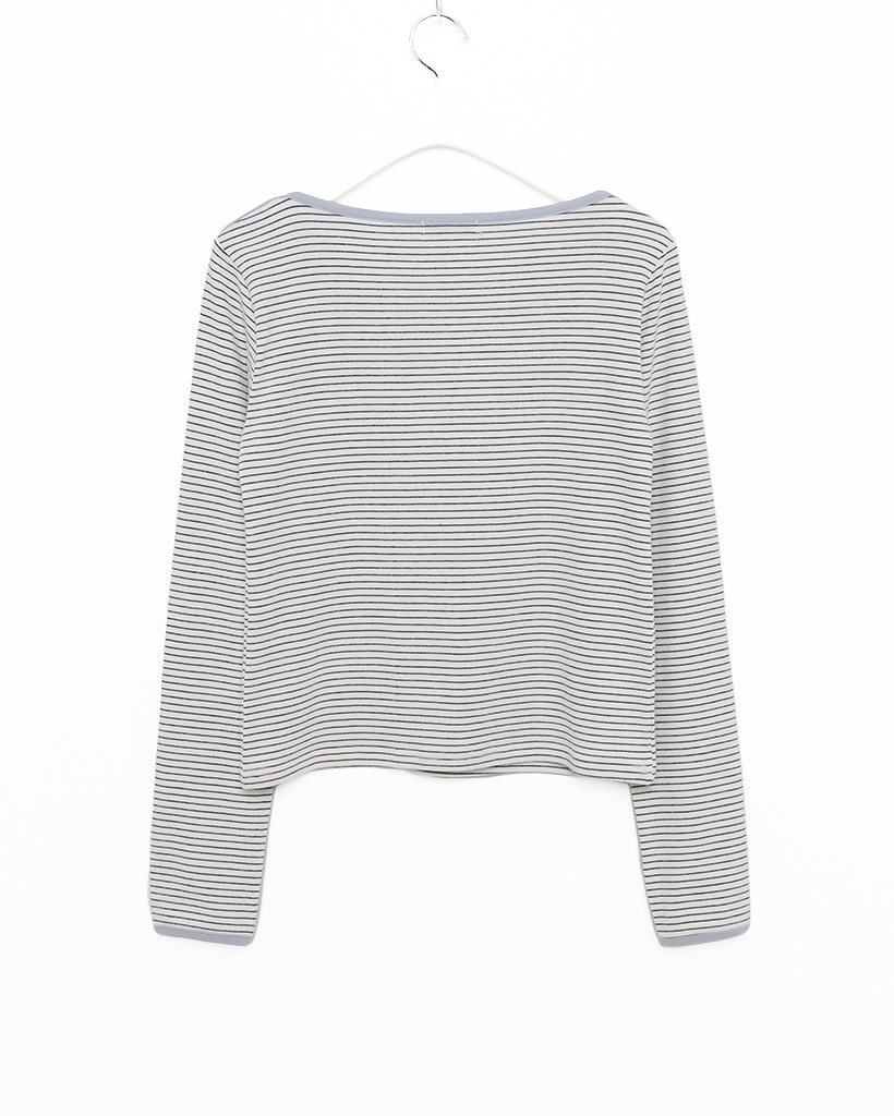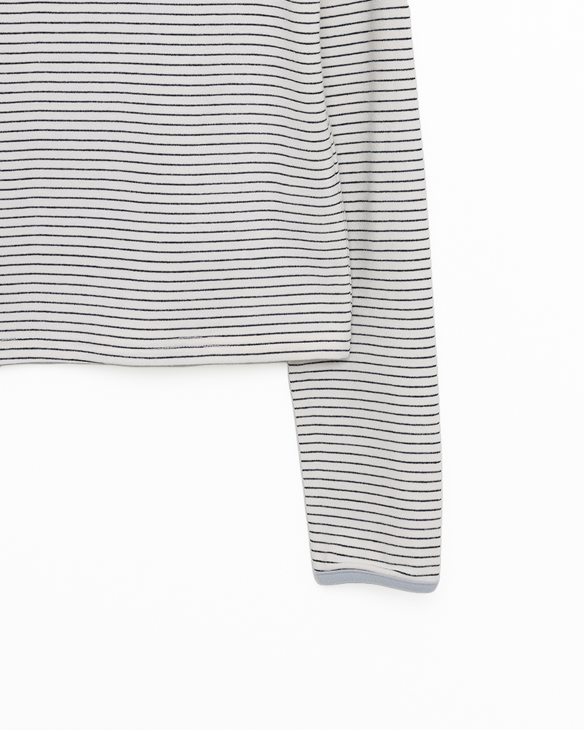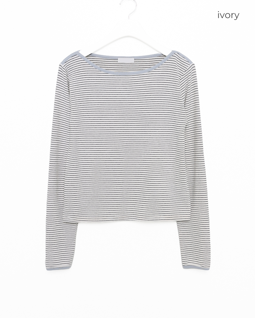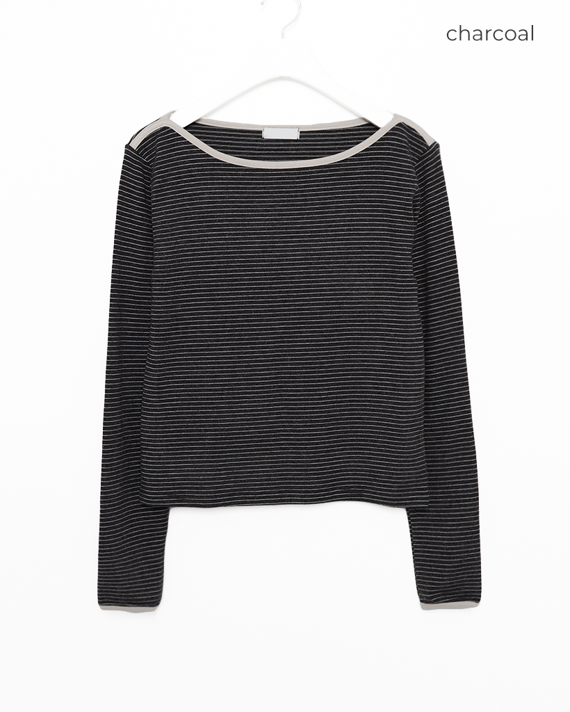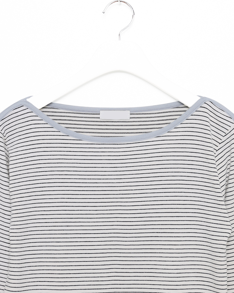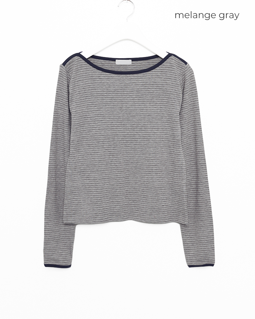 ボートネックピンボーダーパイピングロングTシャツ