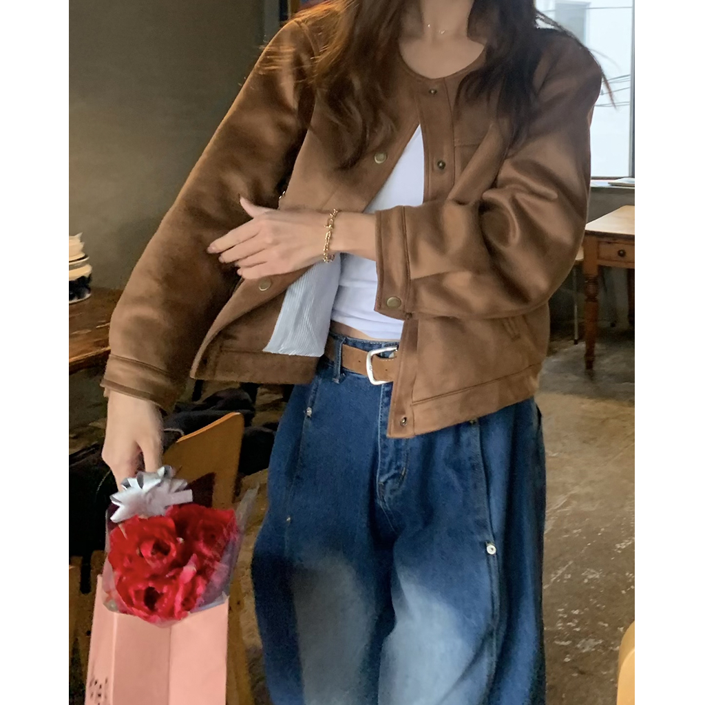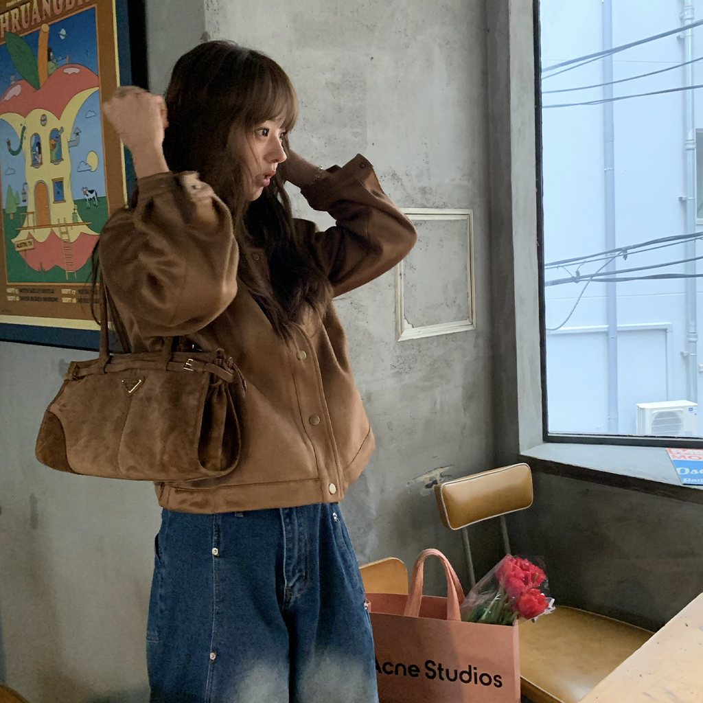 スエードノーカラージャケット