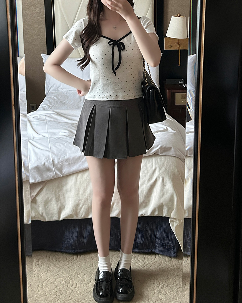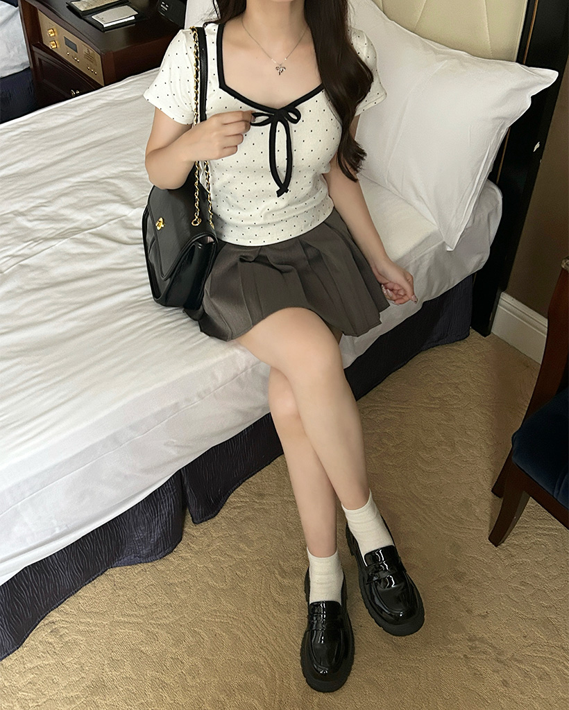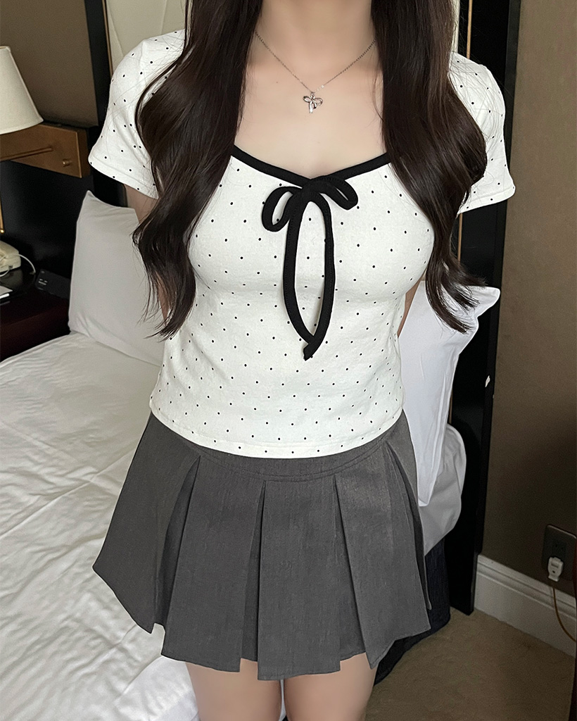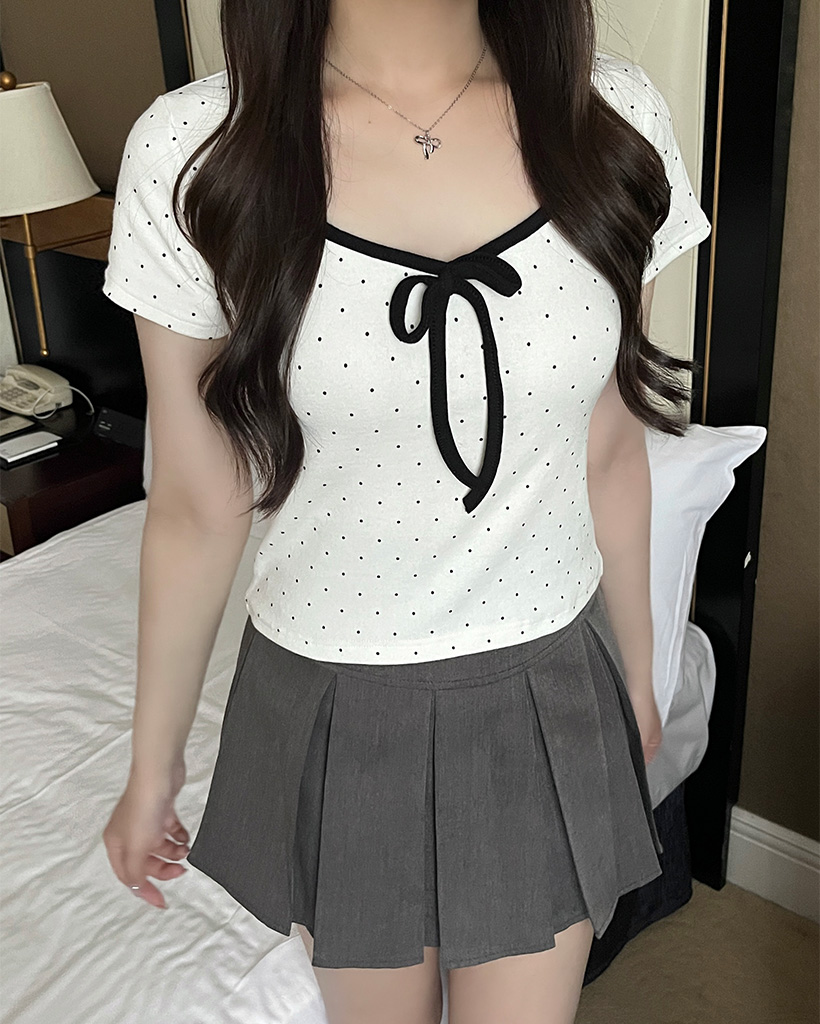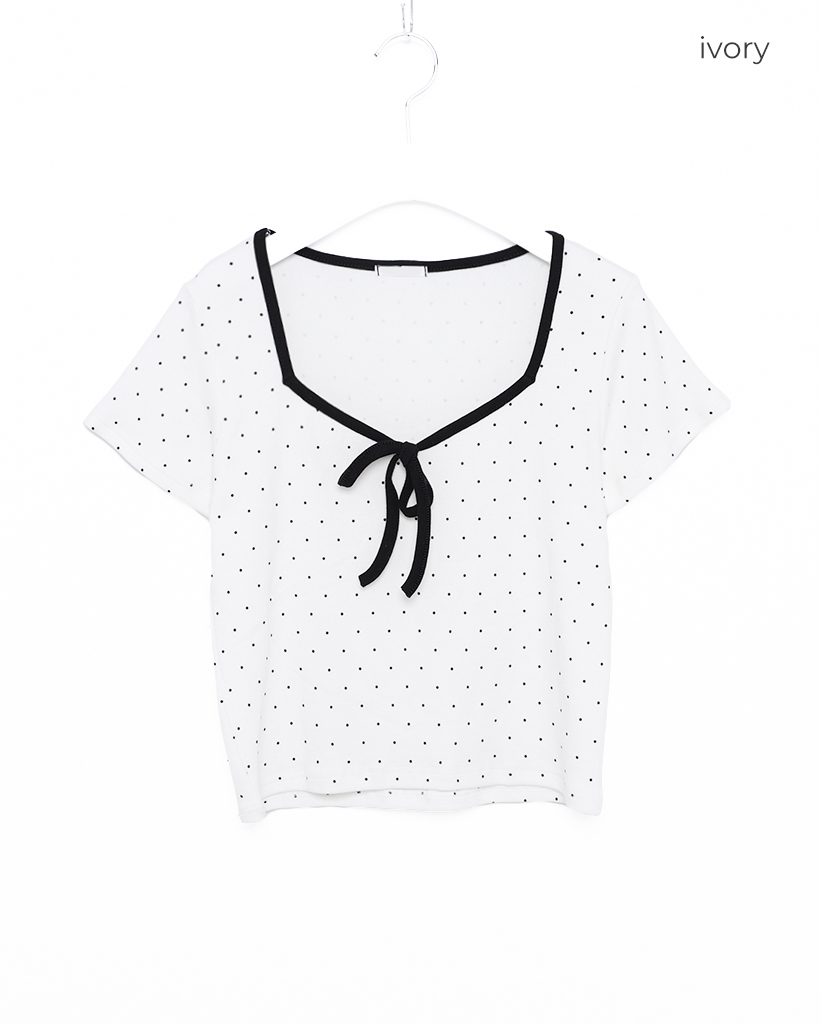バイカラーリボンドットTシャツ