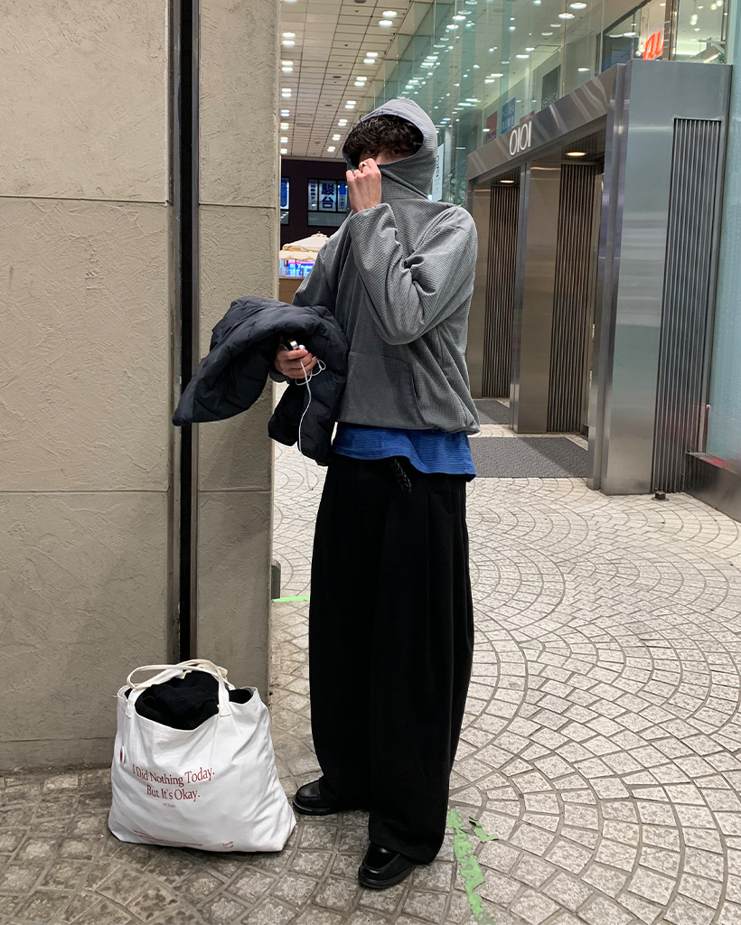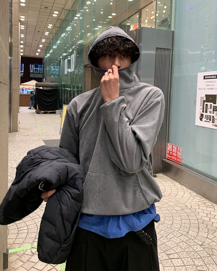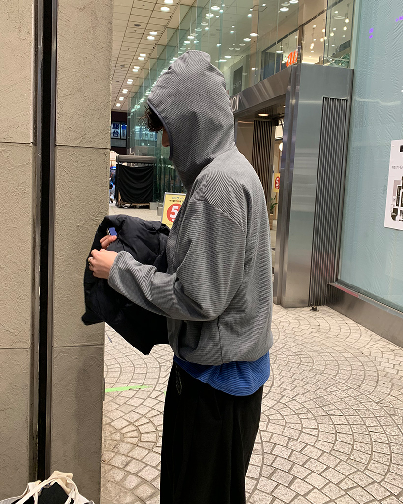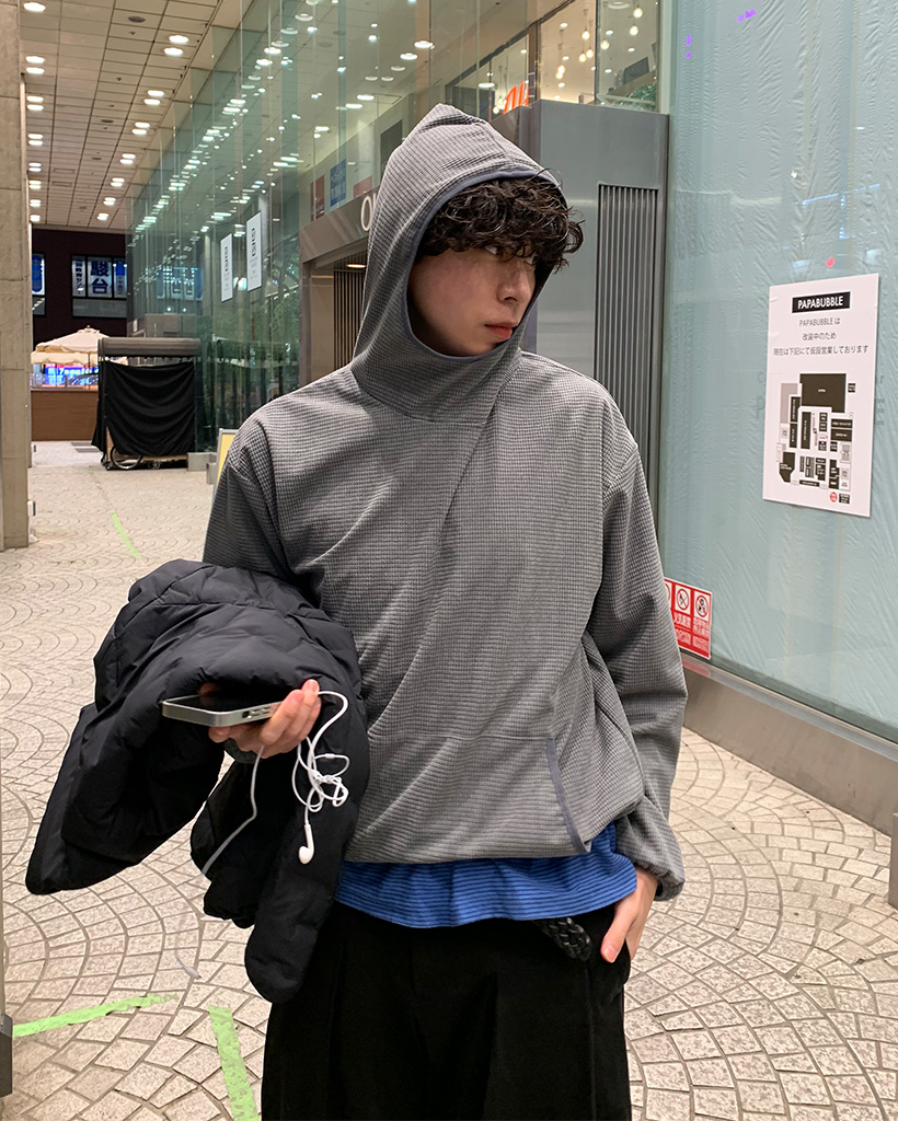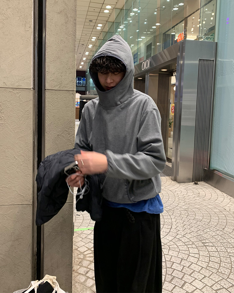 ワッフルストリングバラクラバフードTシャツ