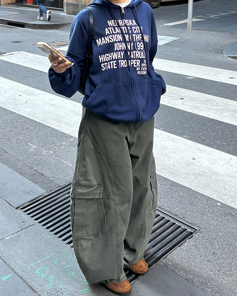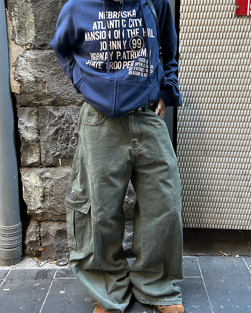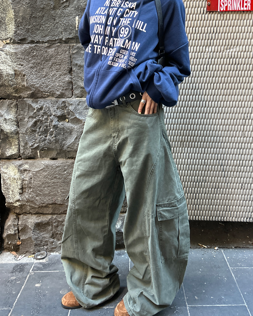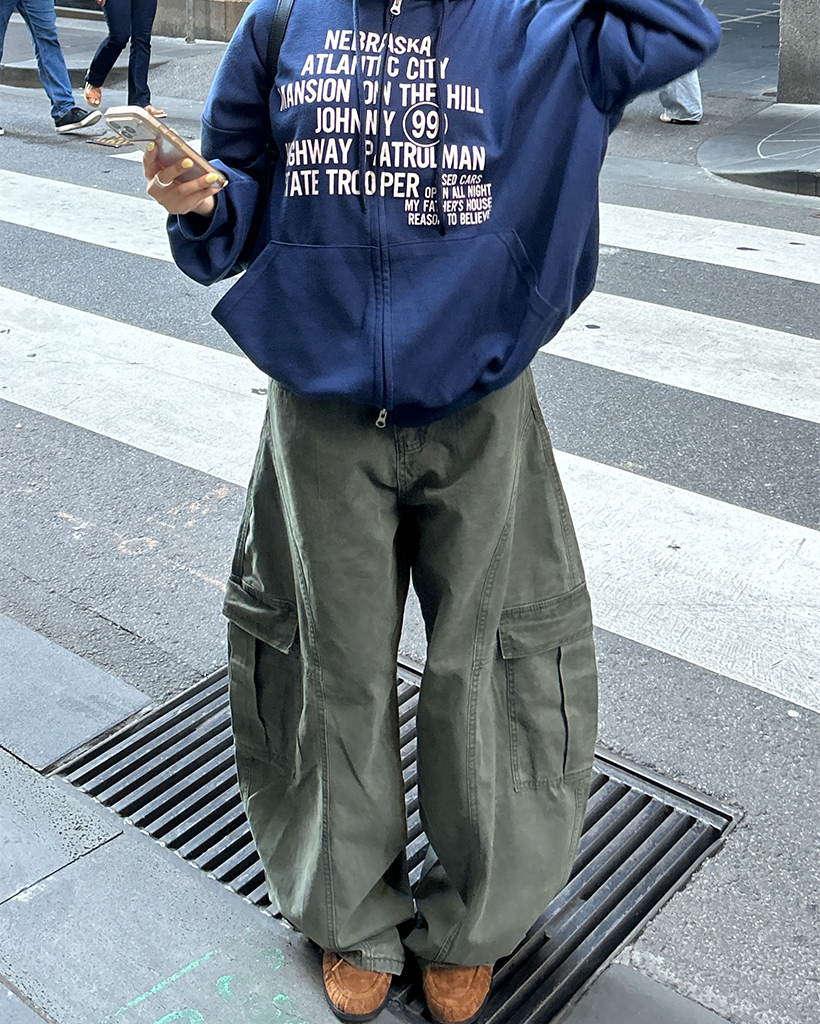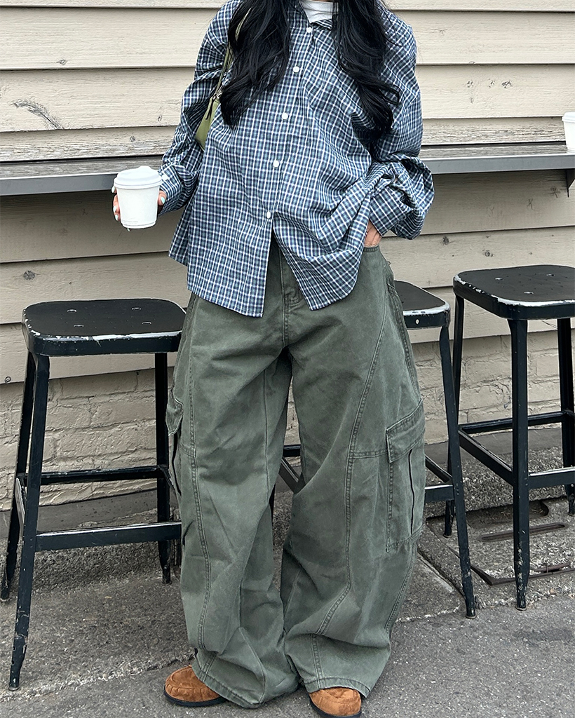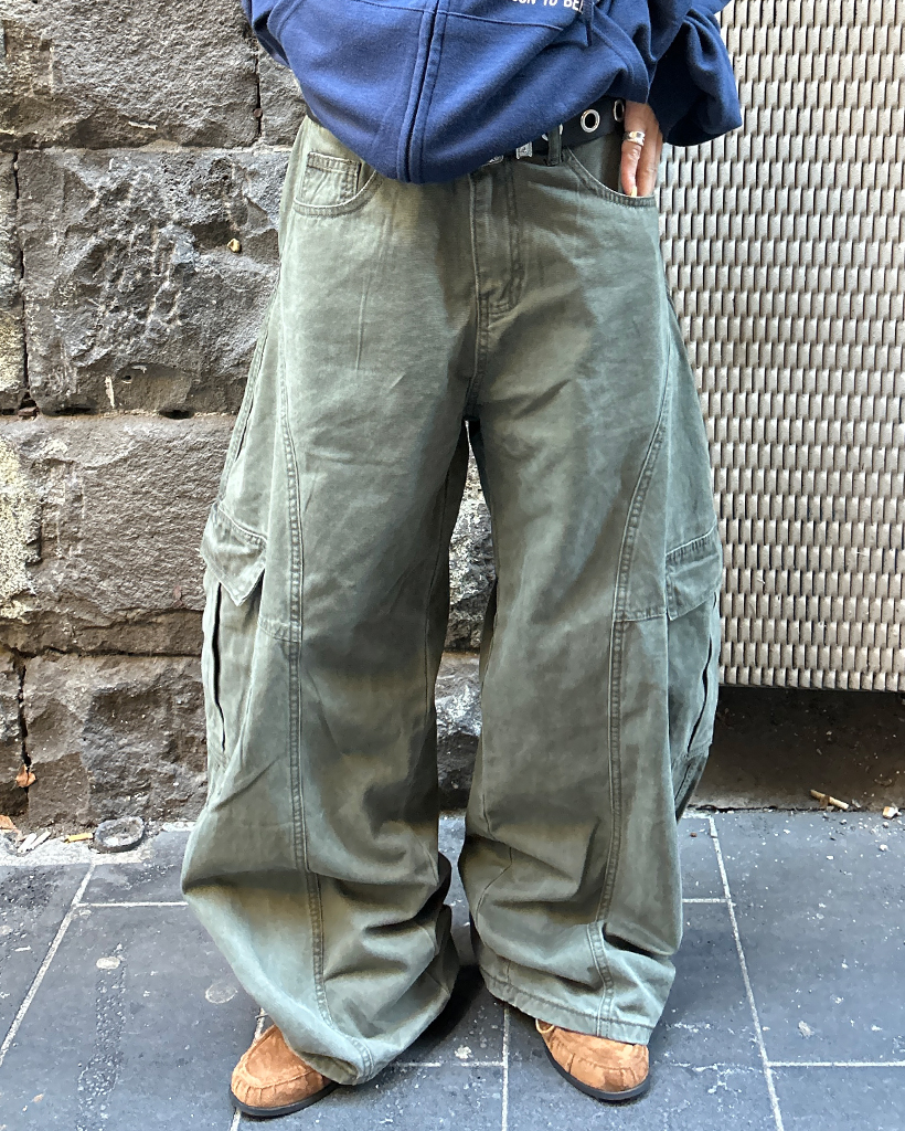 (ユニセックス)ユニークアウトシームコットンカーゴパンツ