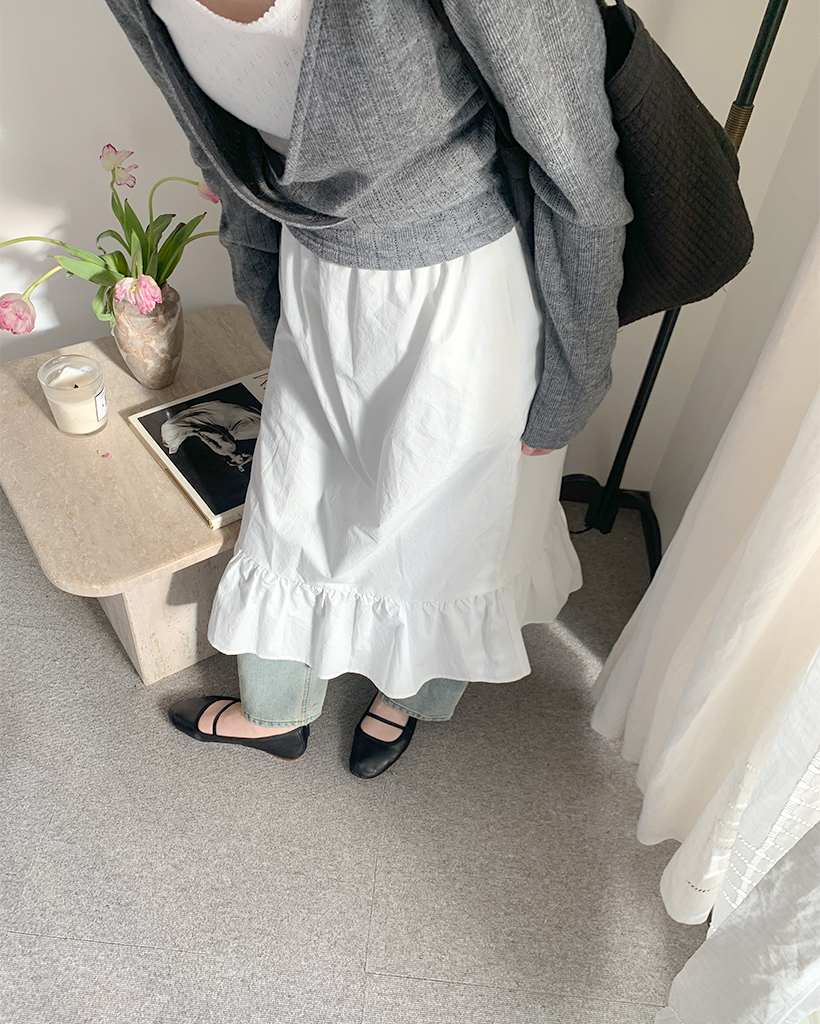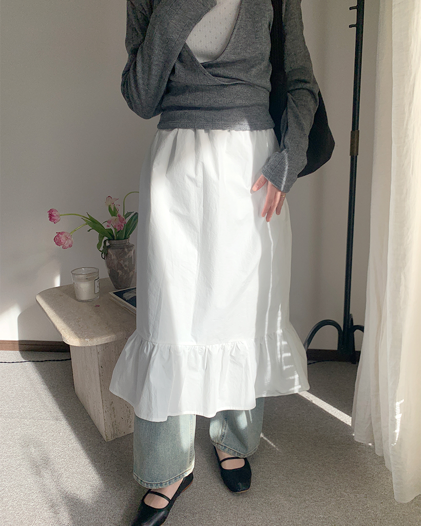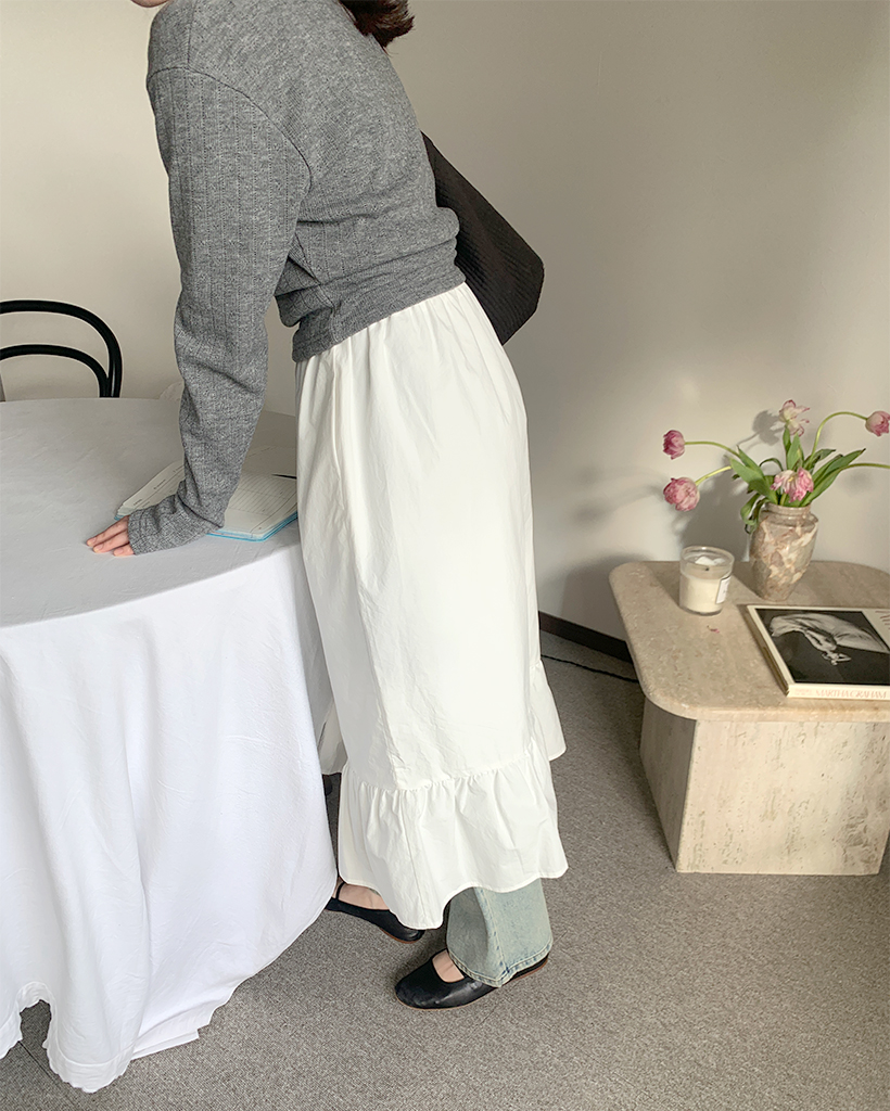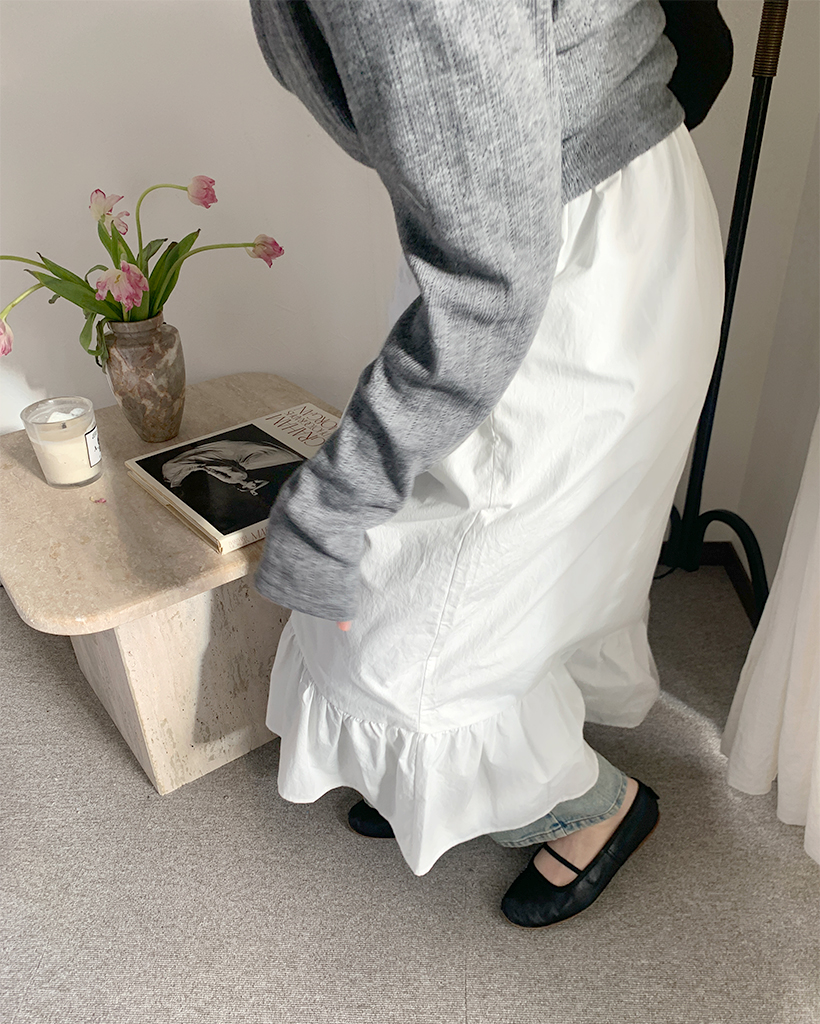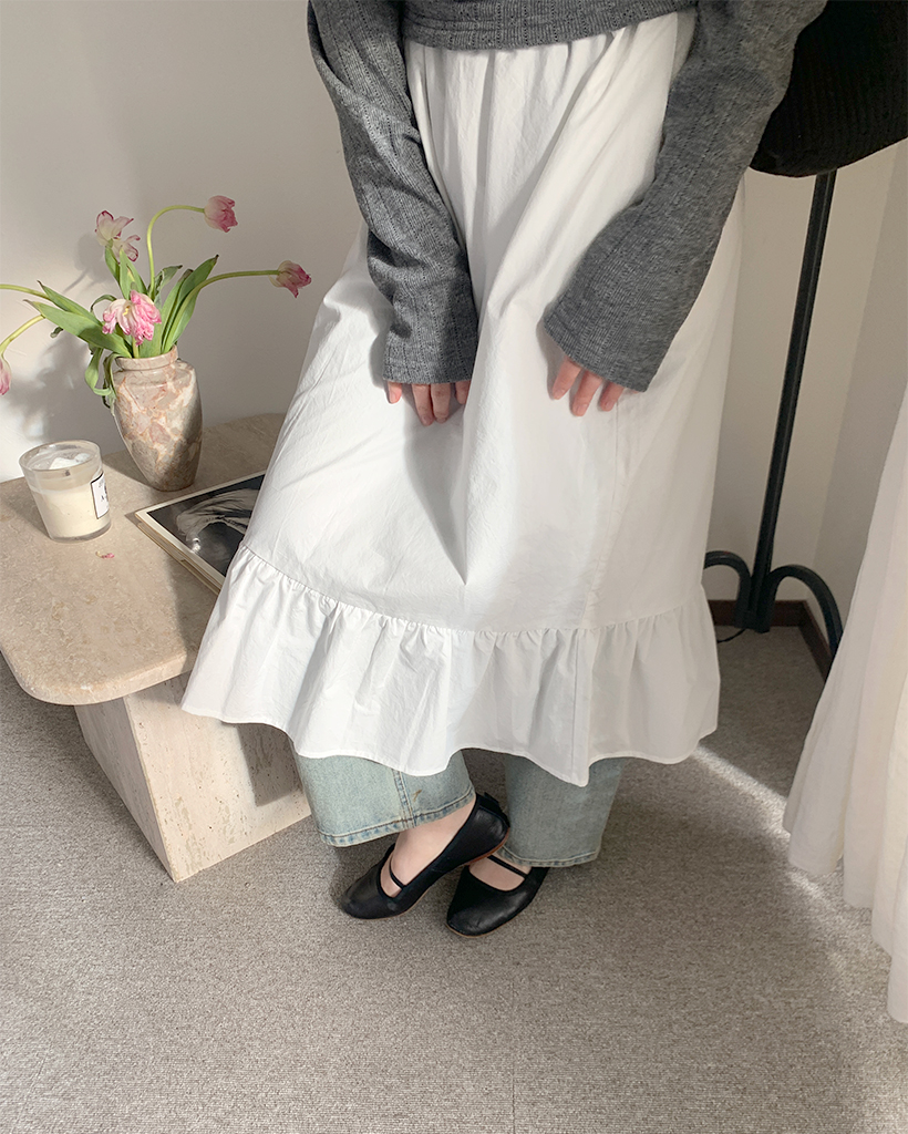 フリルヘムコットンロングスカート