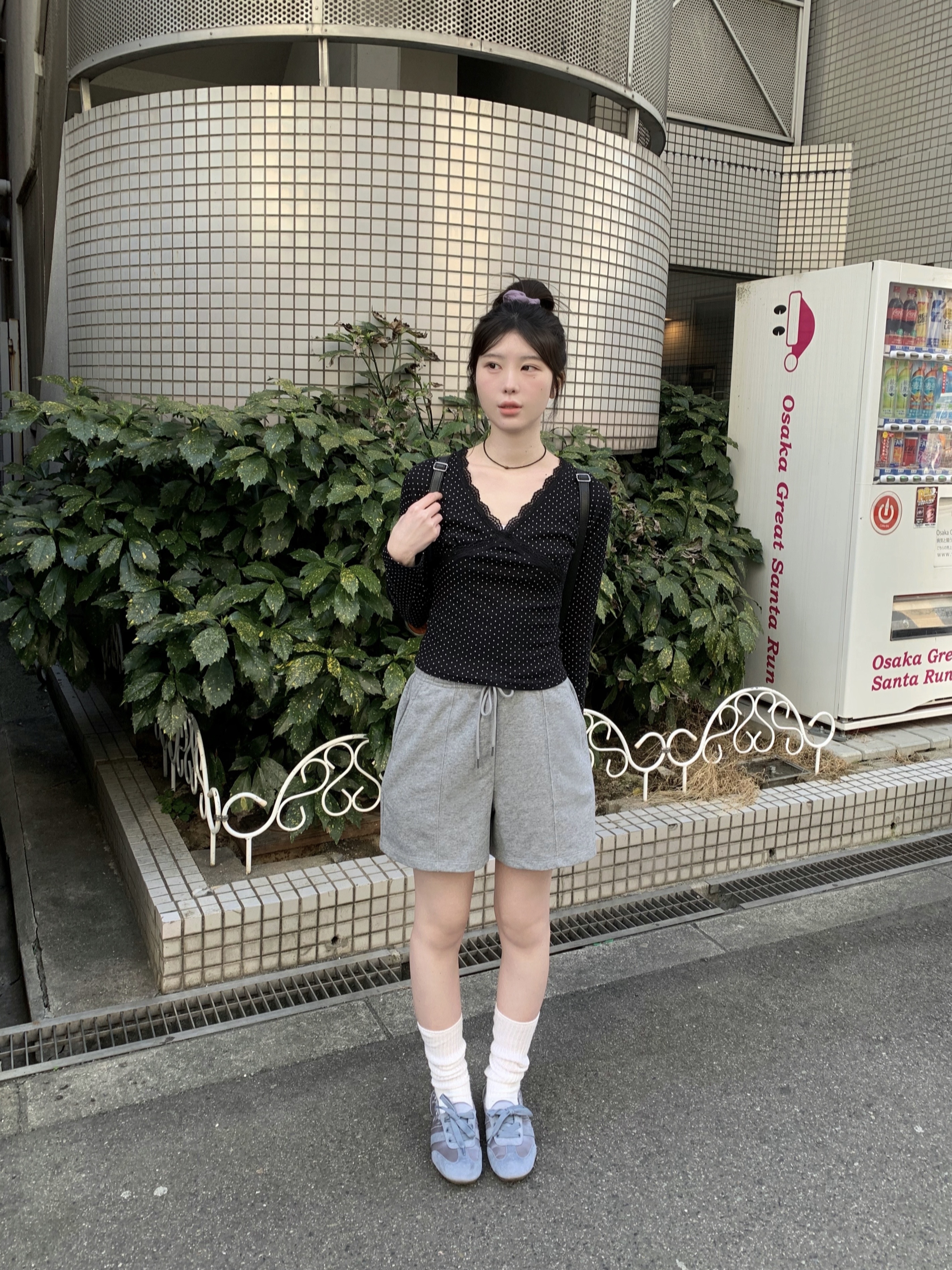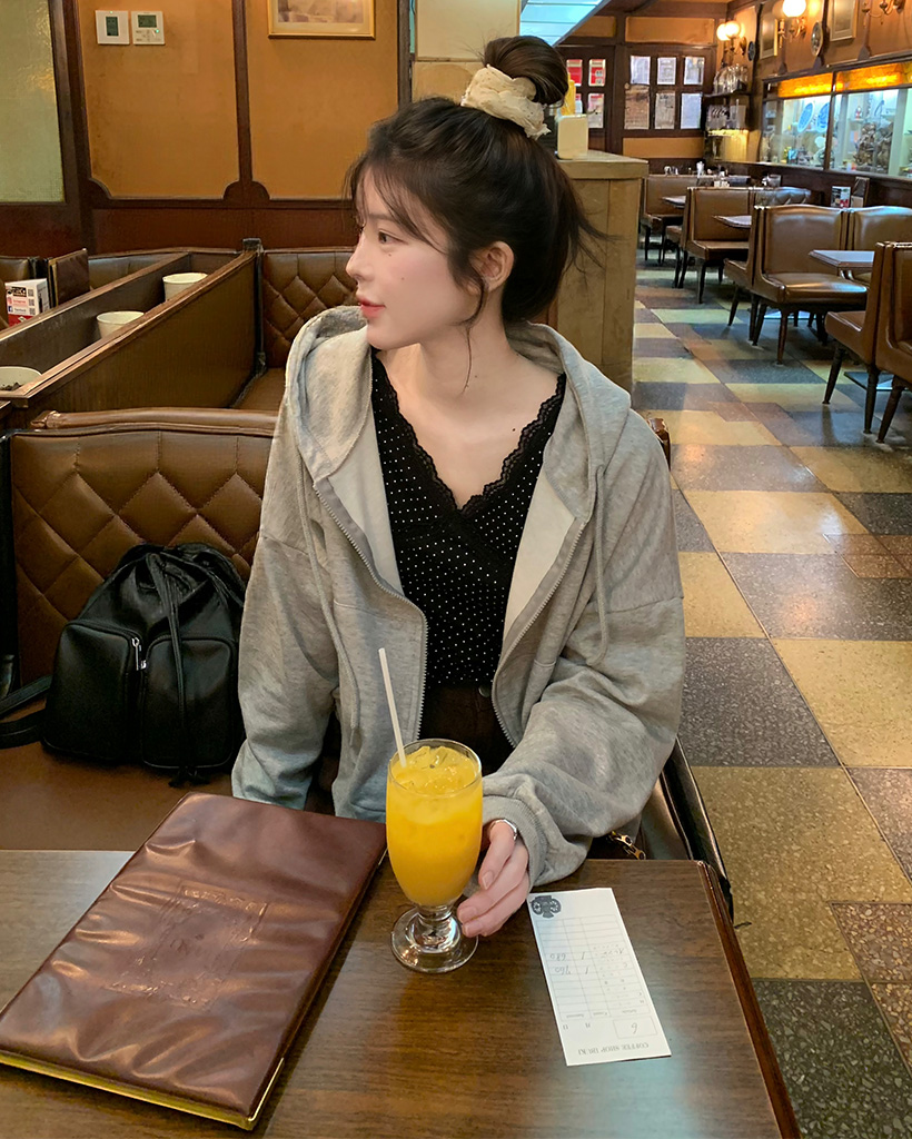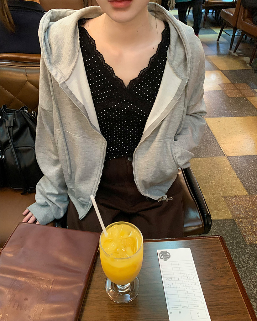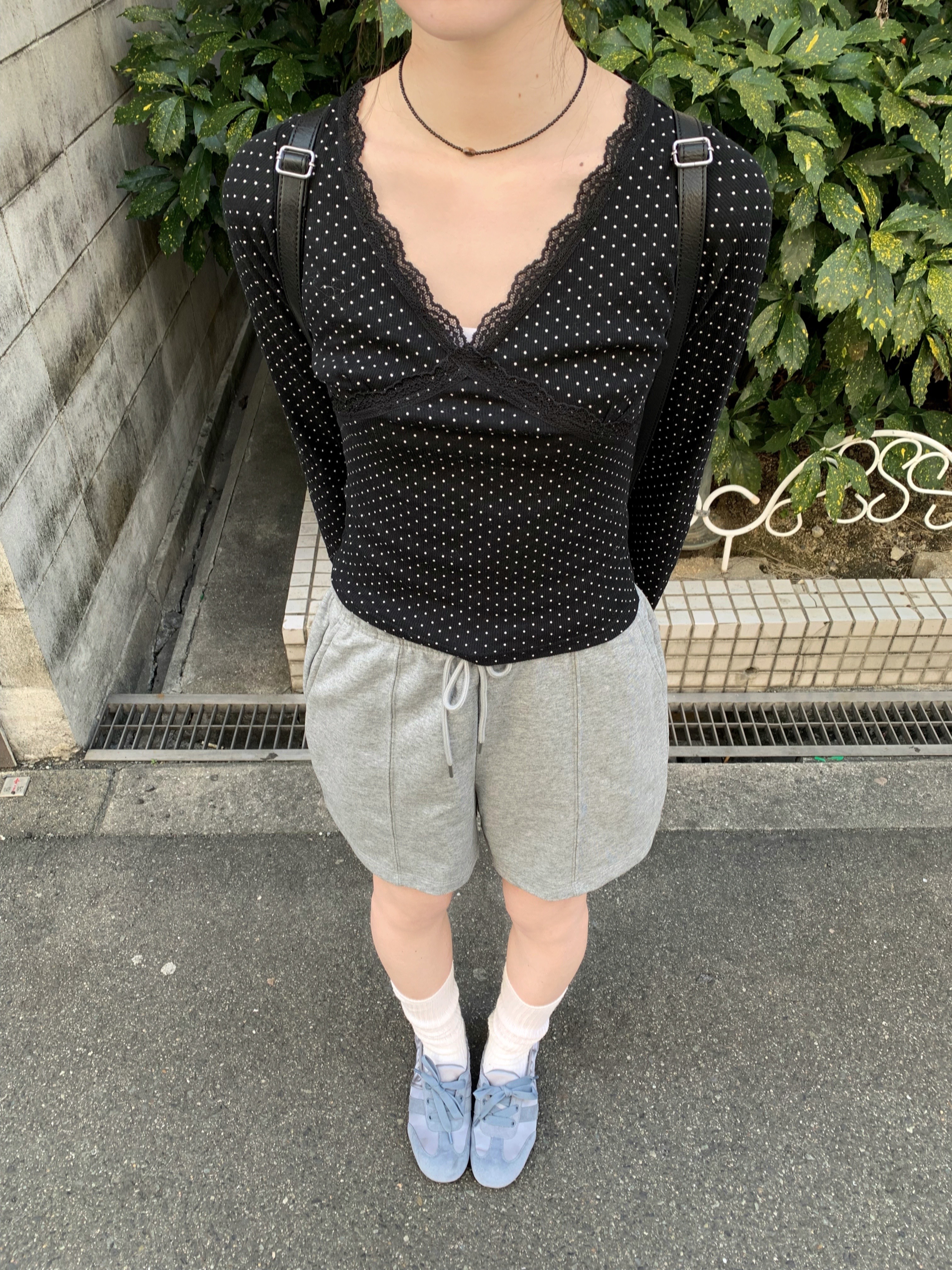 VネックレースドットTシャツ