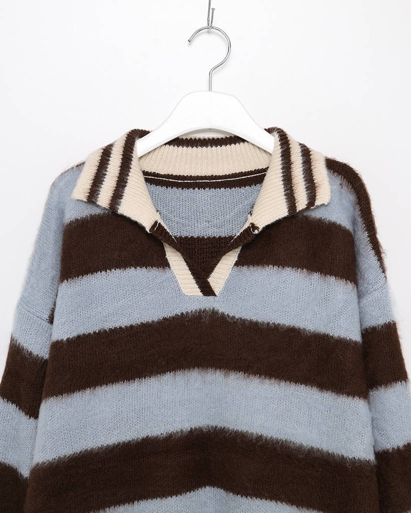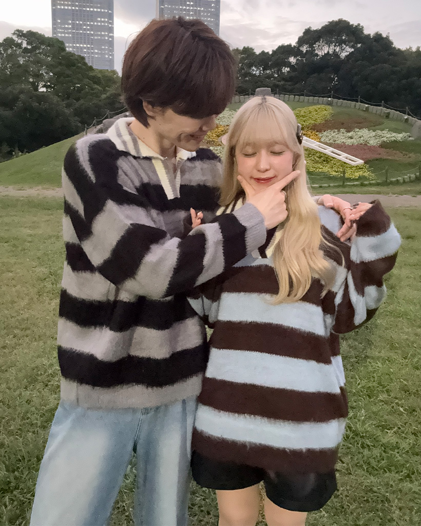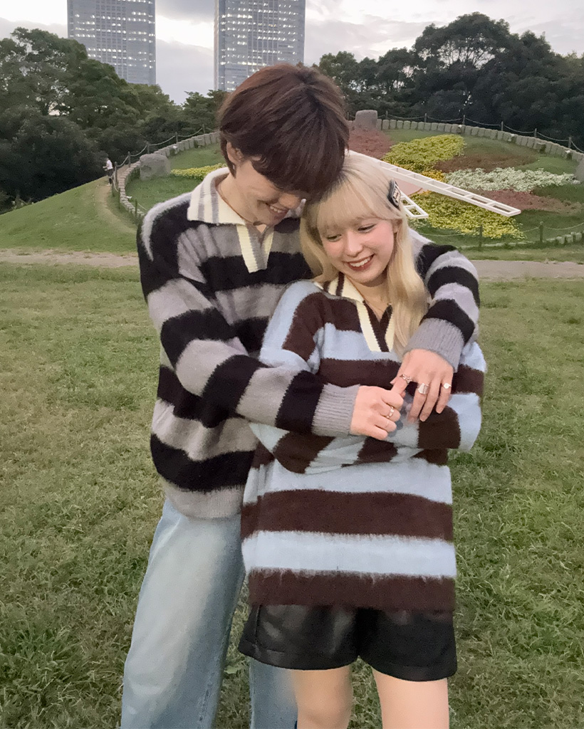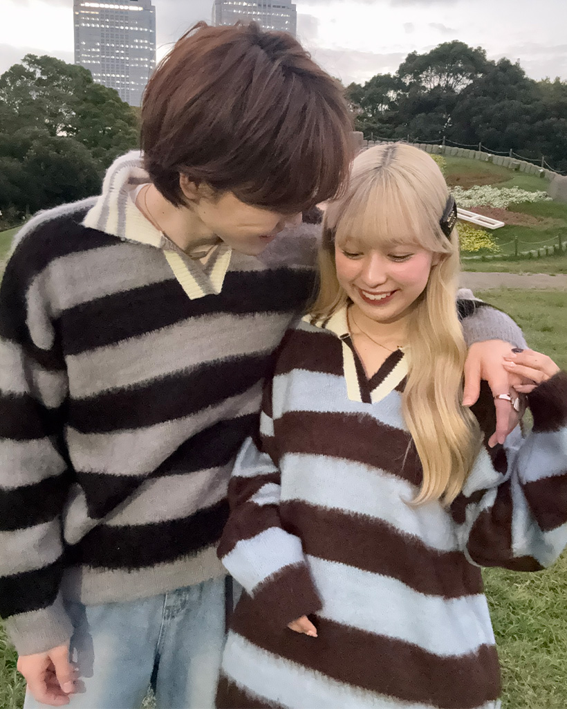 (ユニセックス)ボーダーバイカラーニット