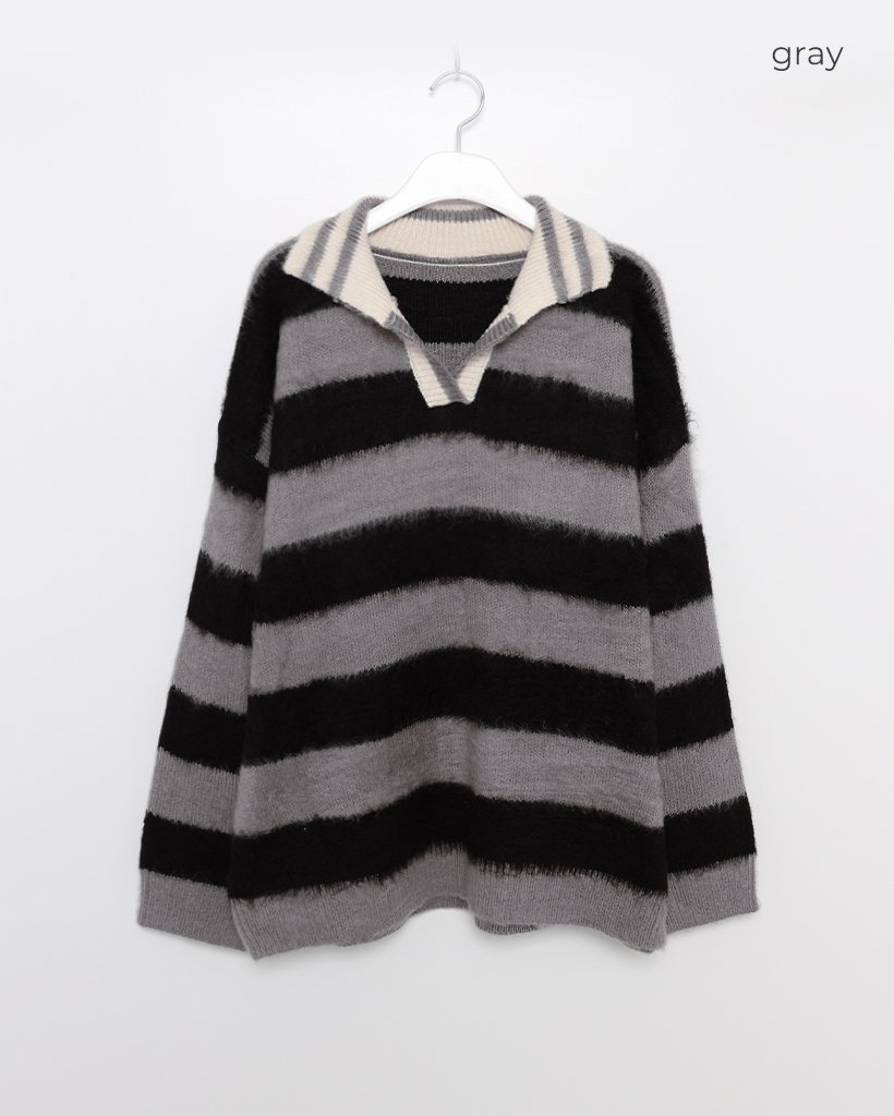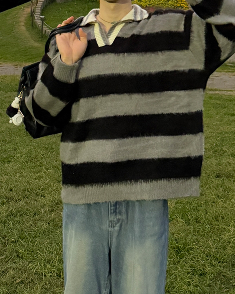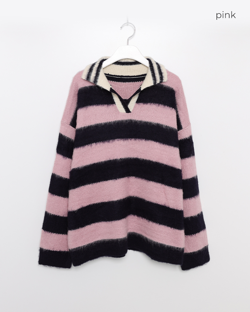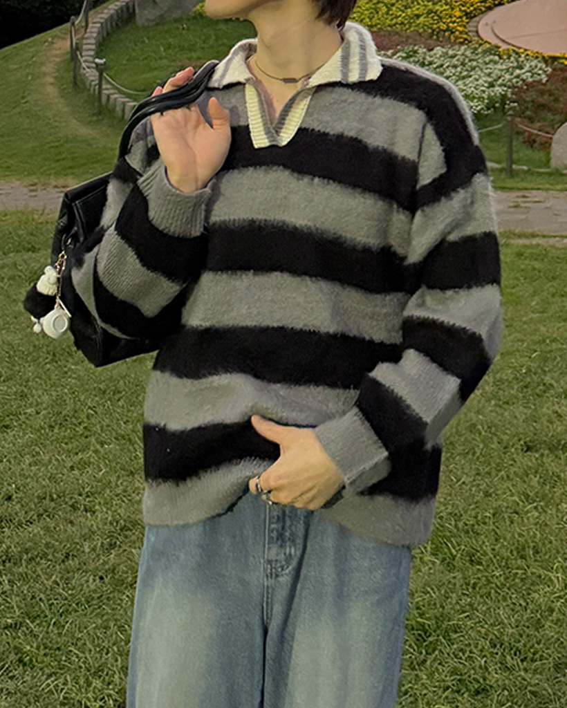 (ユニセックス)ボーダーバイカラーニット