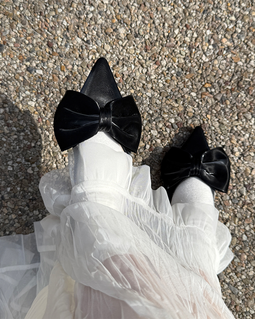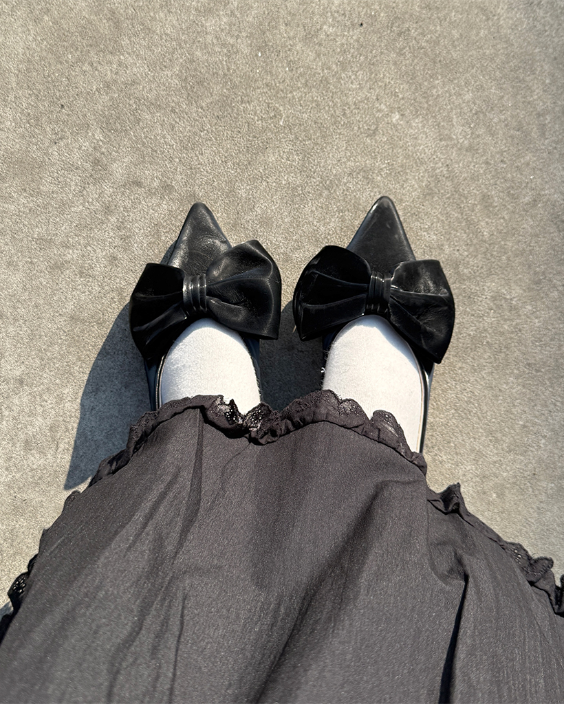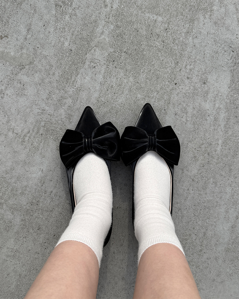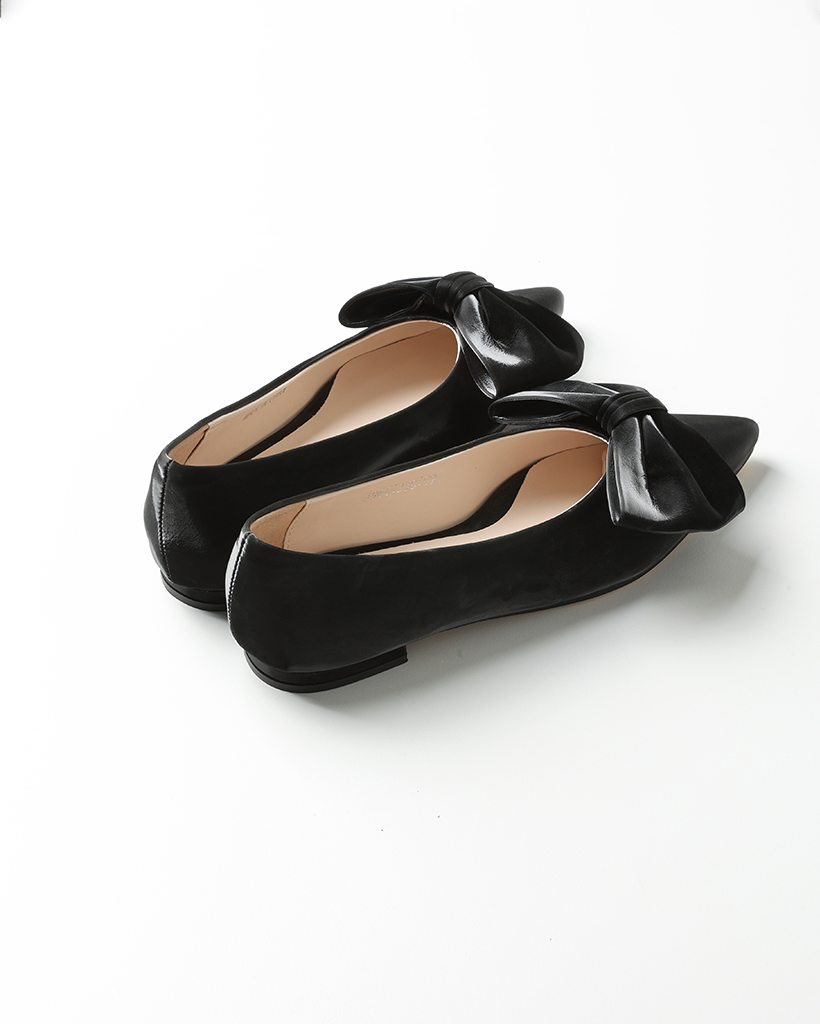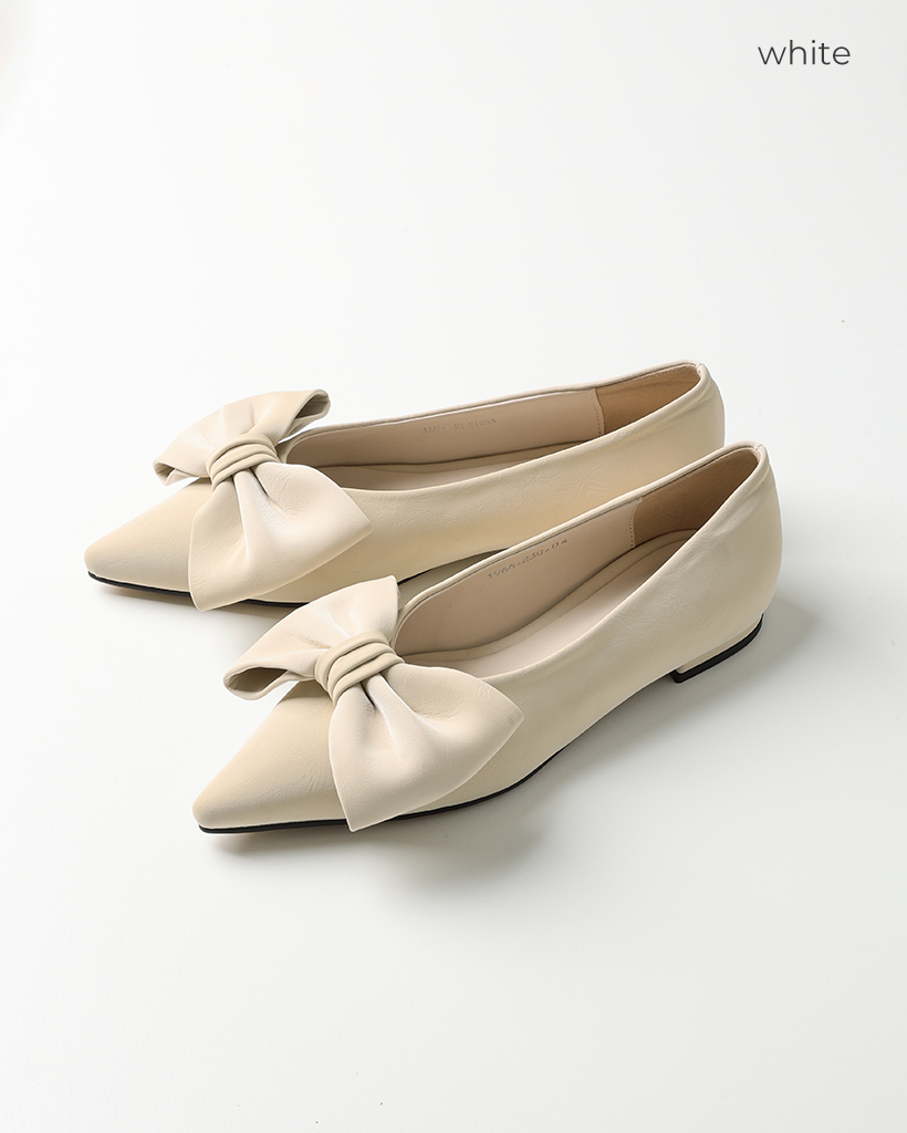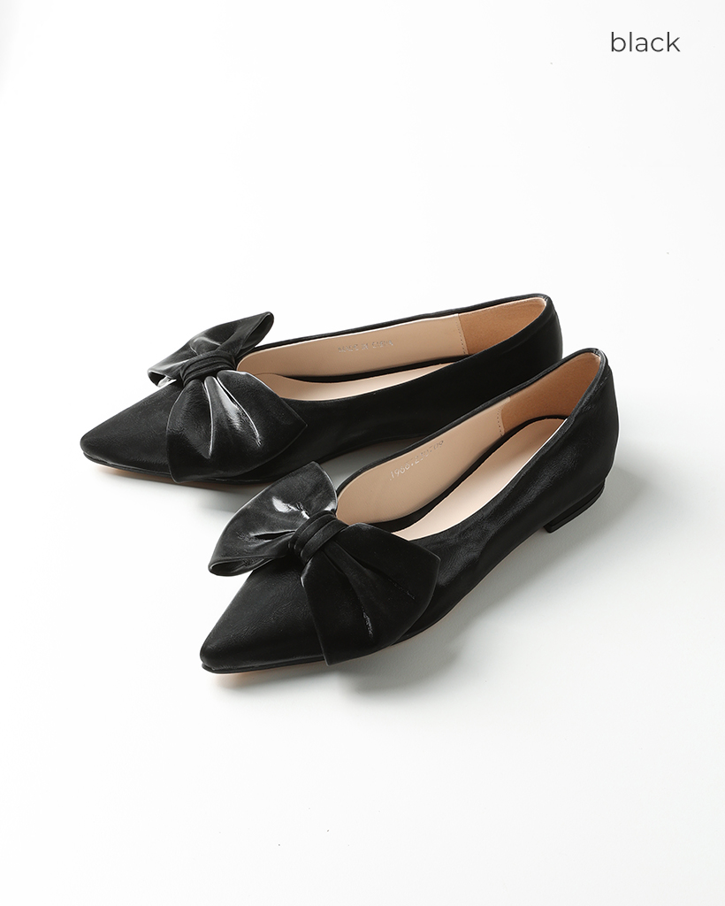 リボンスポインテッドトゥプラットシューズ