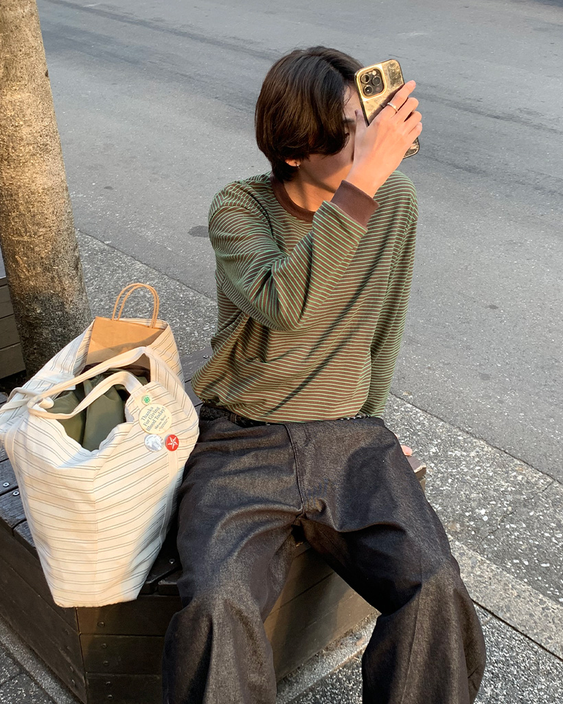バイカラーボーダーロングTシャツ