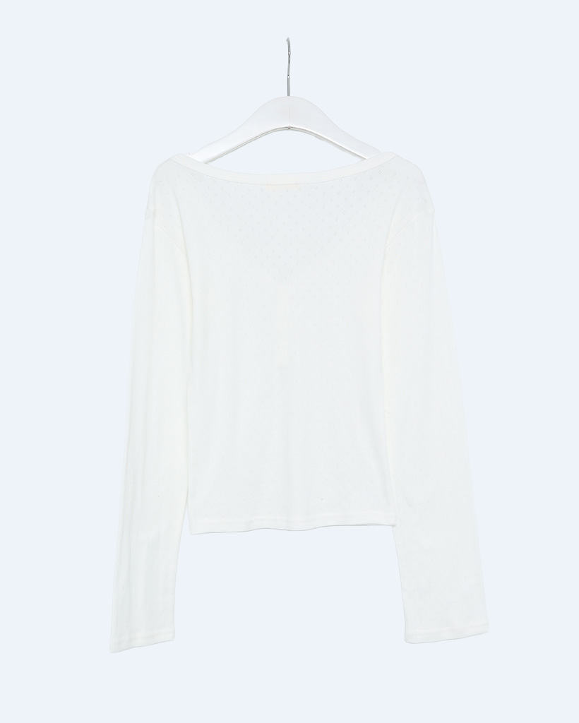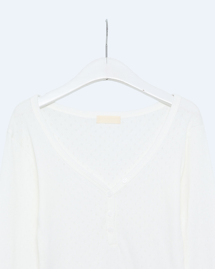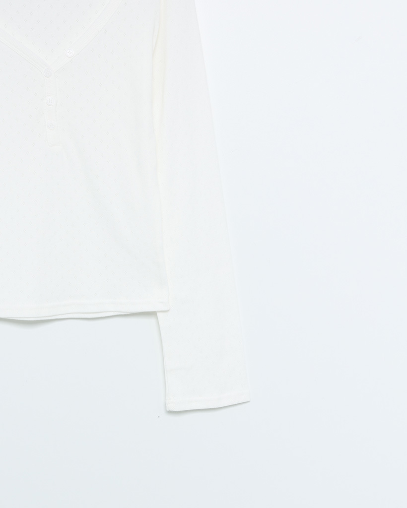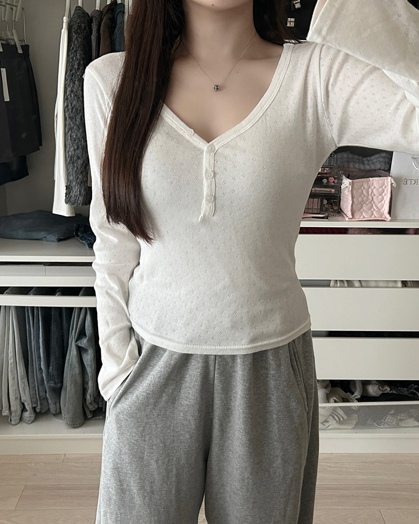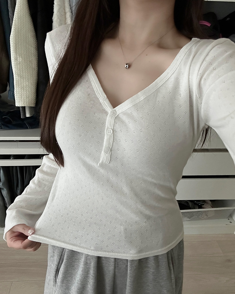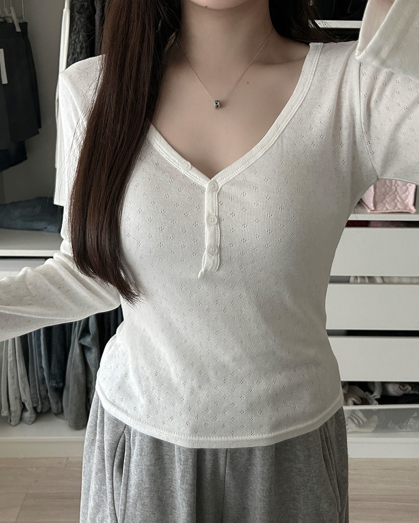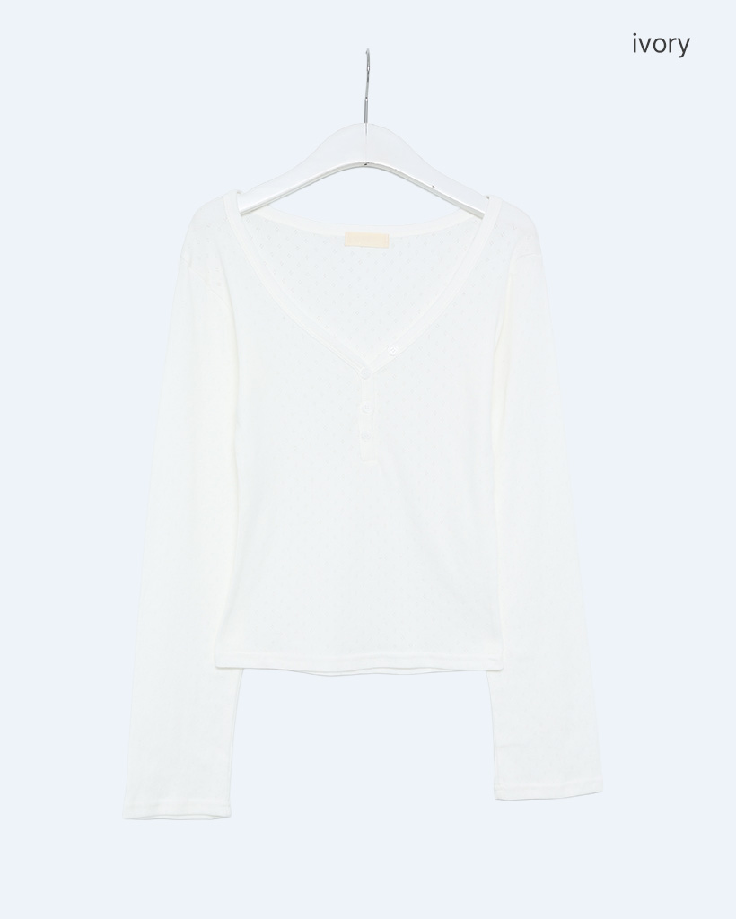 Vネックパンチングボタンロングスリーブシャツ