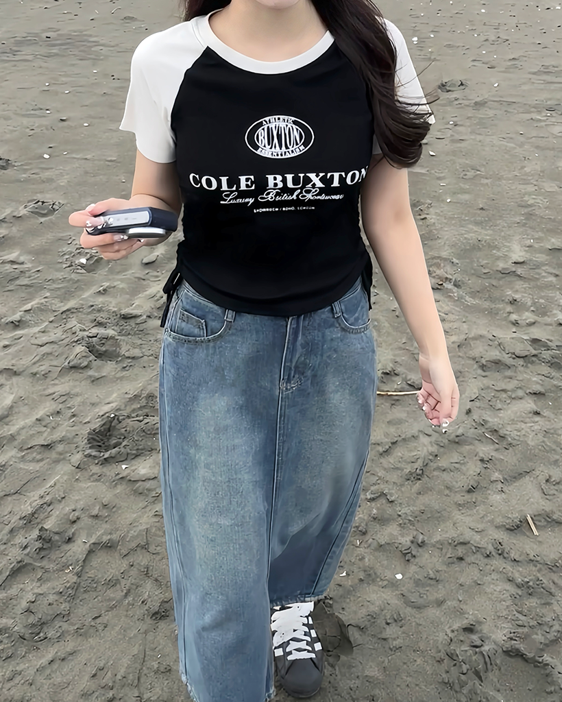 ストリングレタリングラグラン半袖Tシャツ
