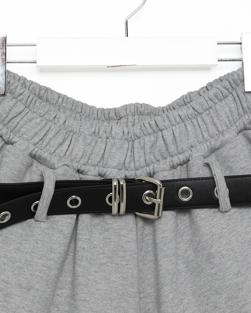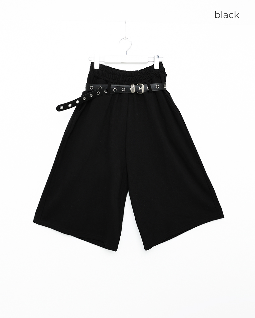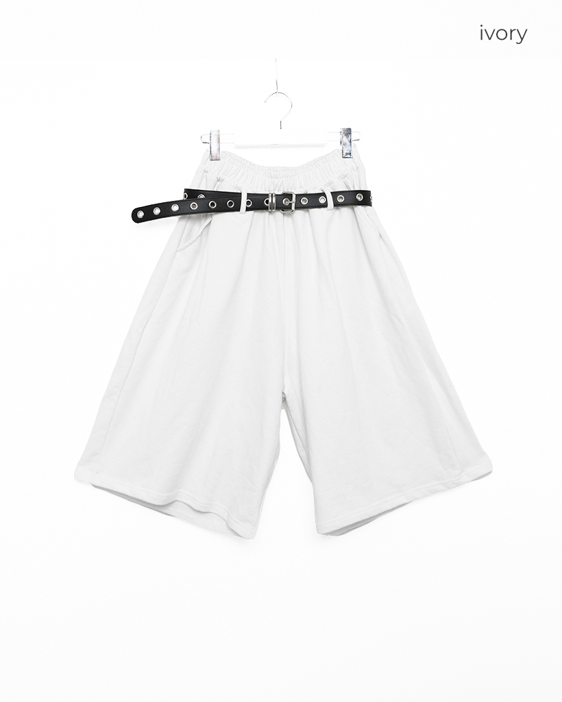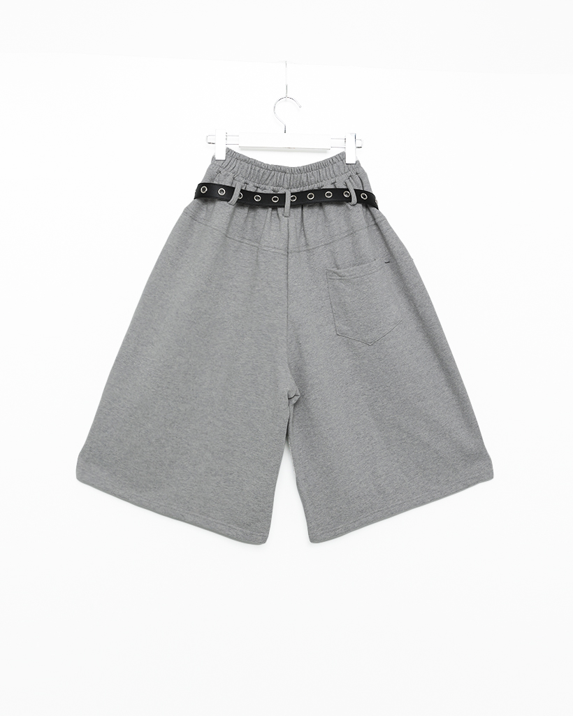 ベルト付きワイドスウェットバミューダパンツ