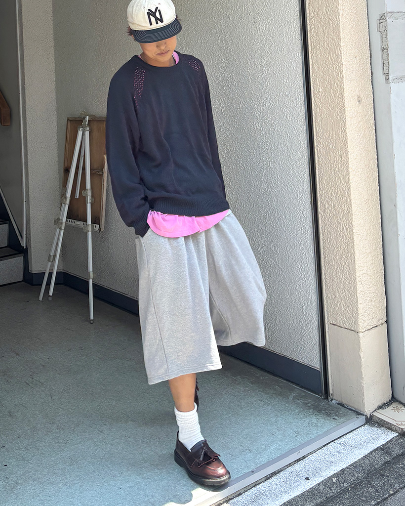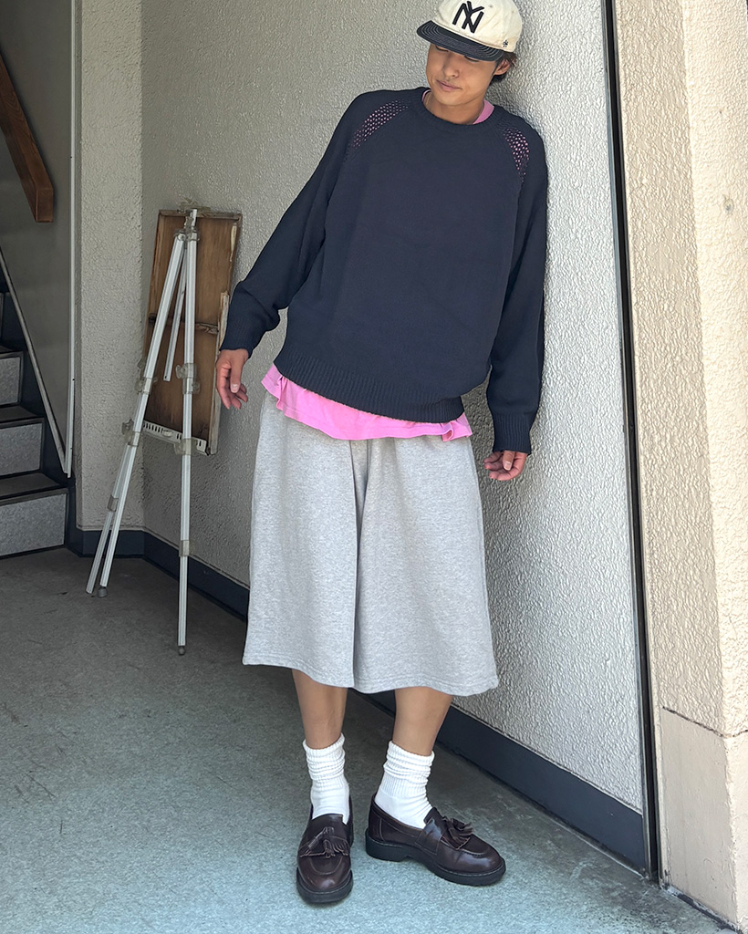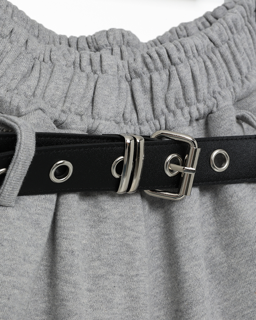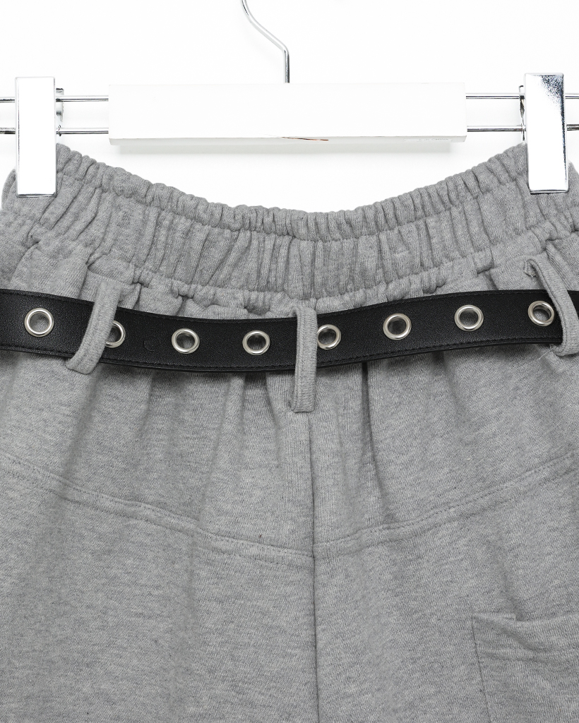 ベルト付きワイドスウェットバミューダパンツ
