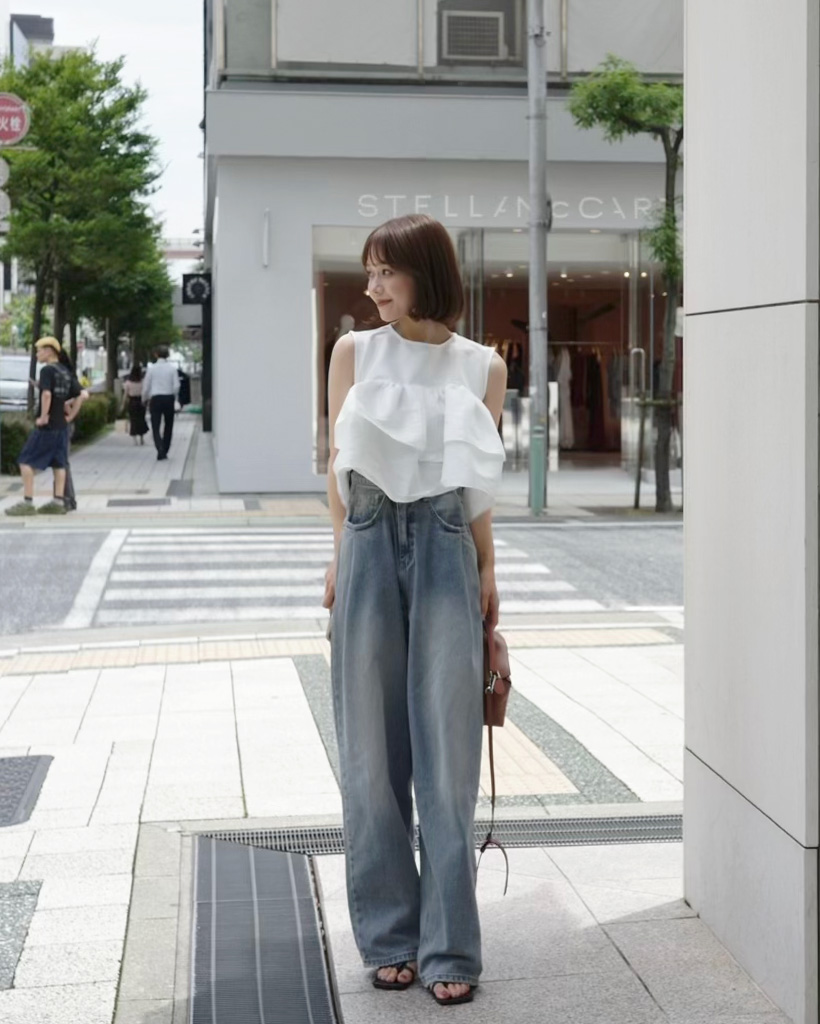 #オマユ#156cm#ウェーブ#きれいめ#シンプル#カジュアル