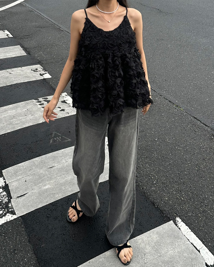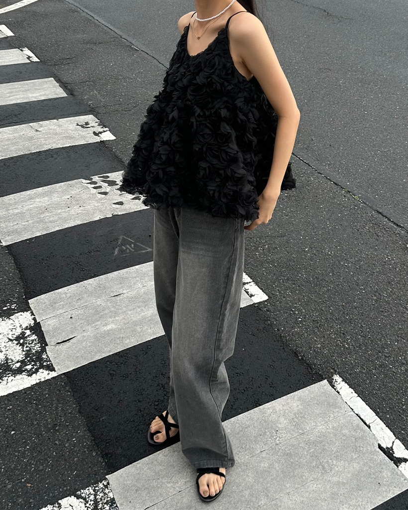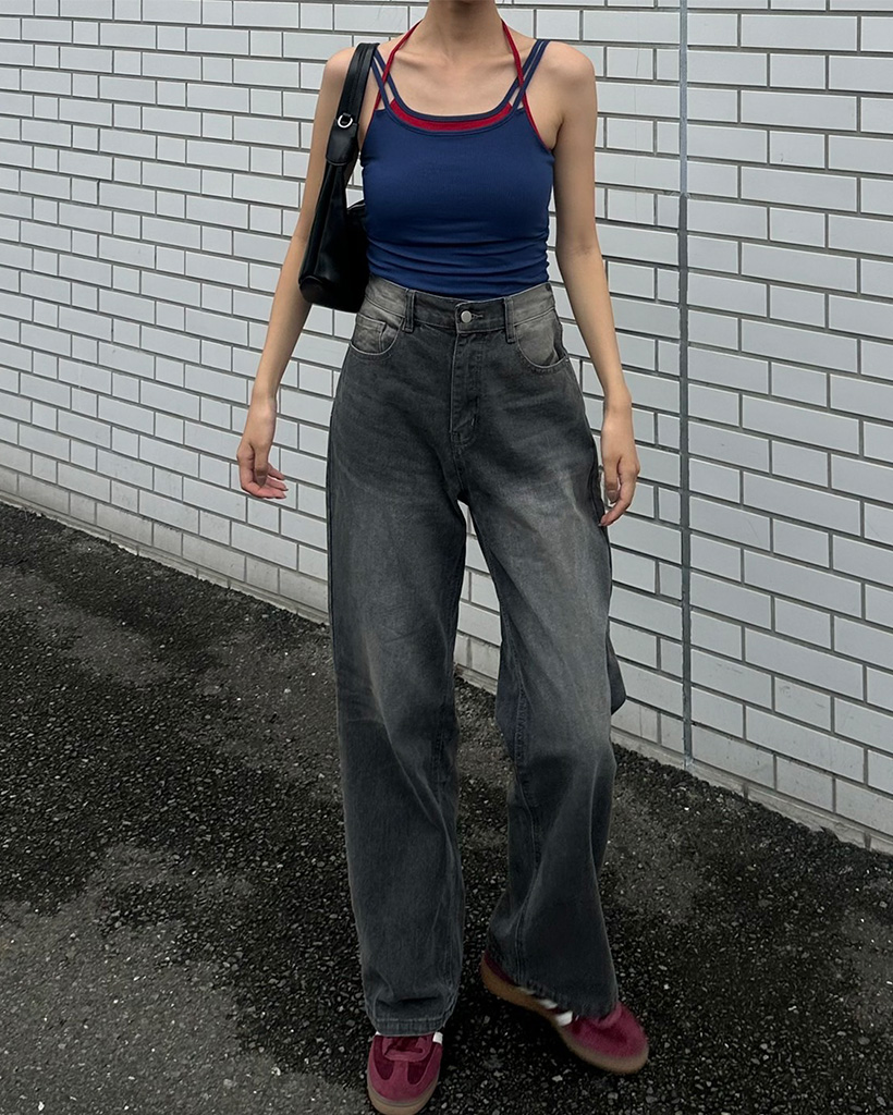 バックウエイトゴムワイドデニムパンツ