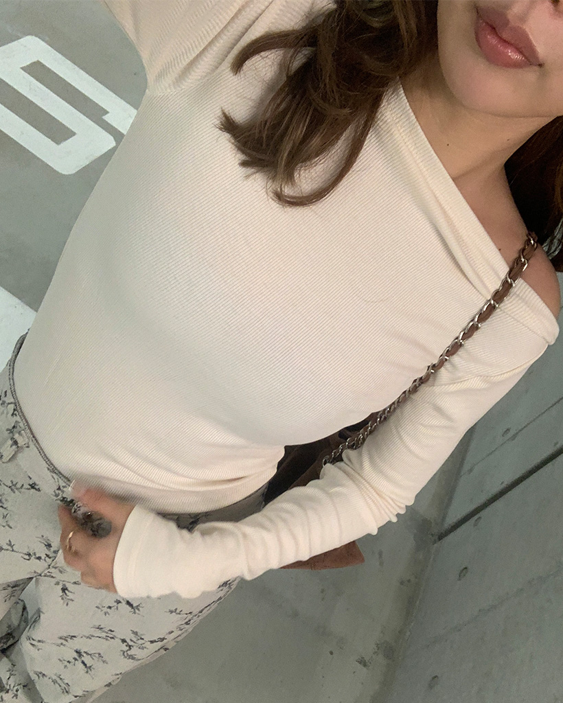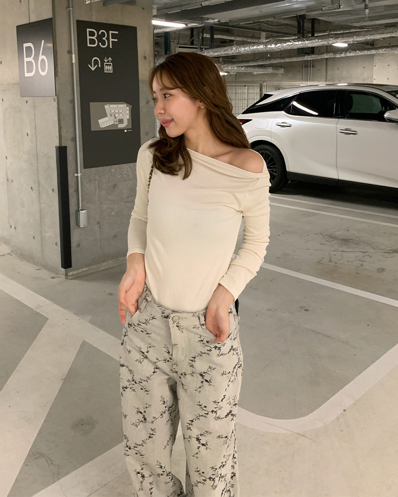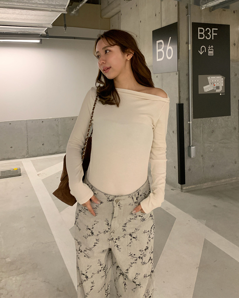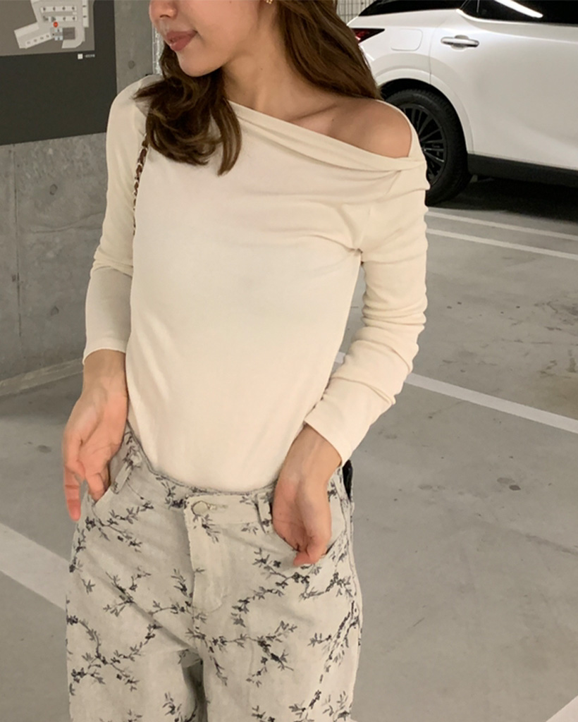 ボートネックシンプル長袖Tシャツ