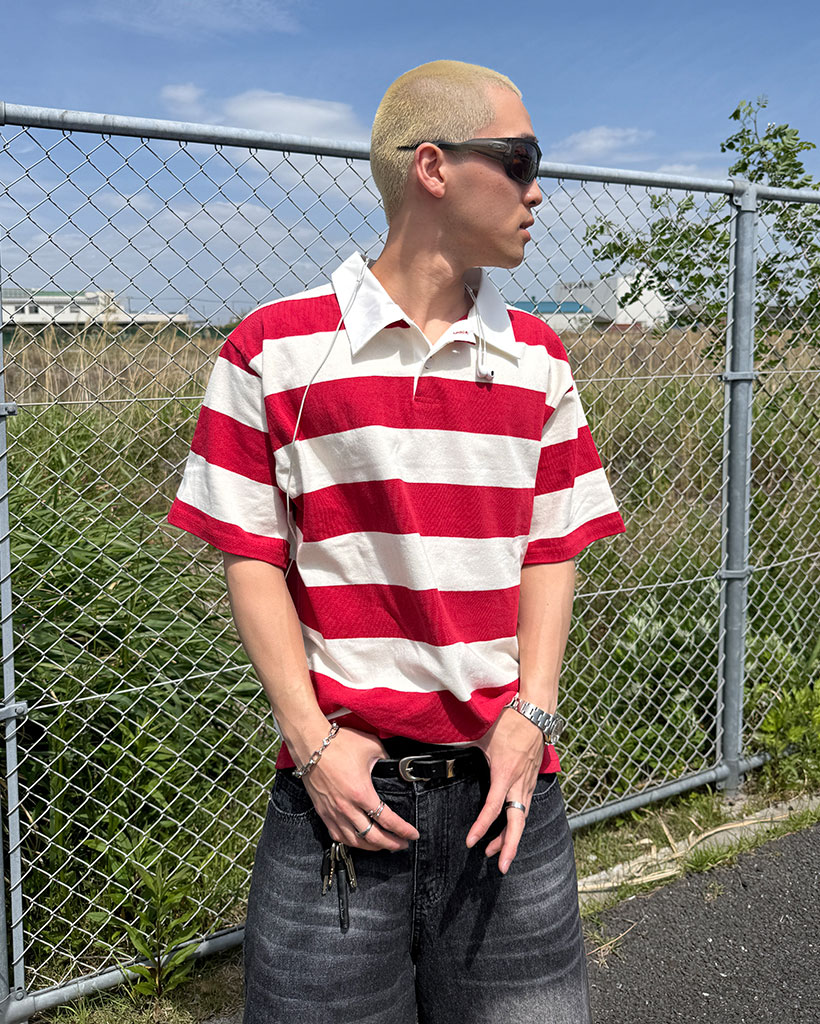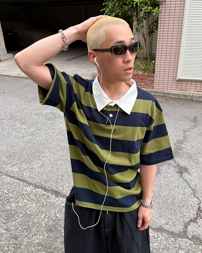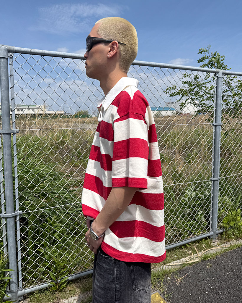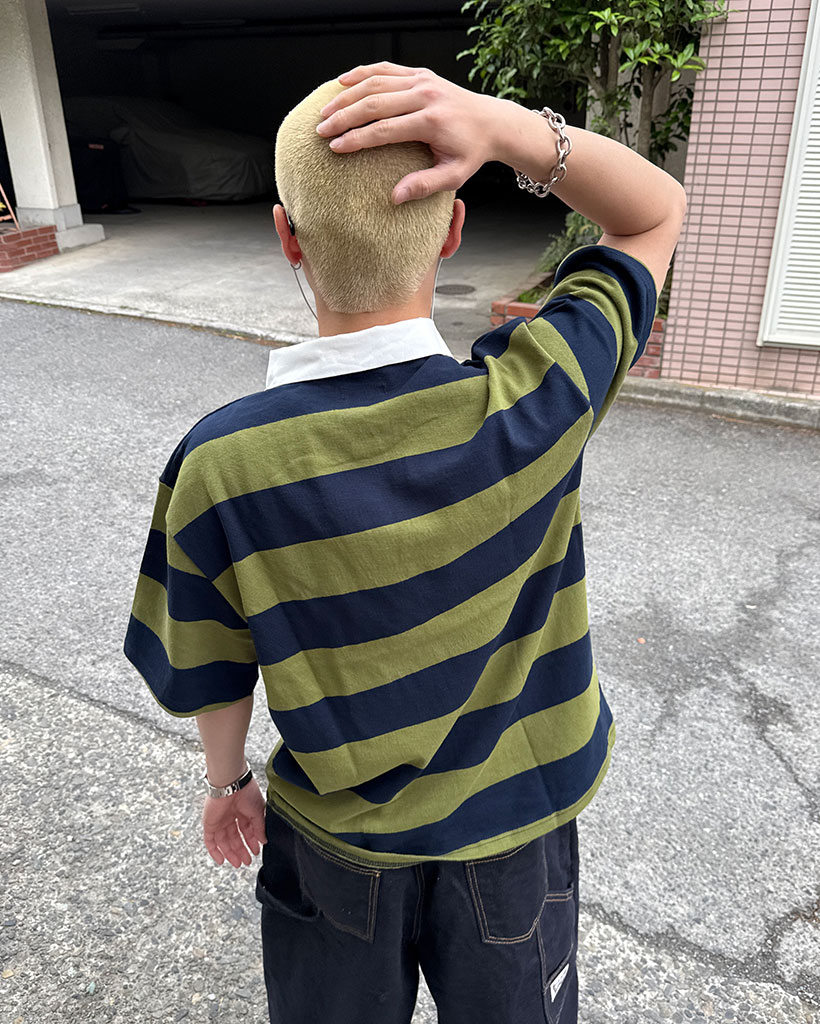 ボーダーラガーカラーTシャツ