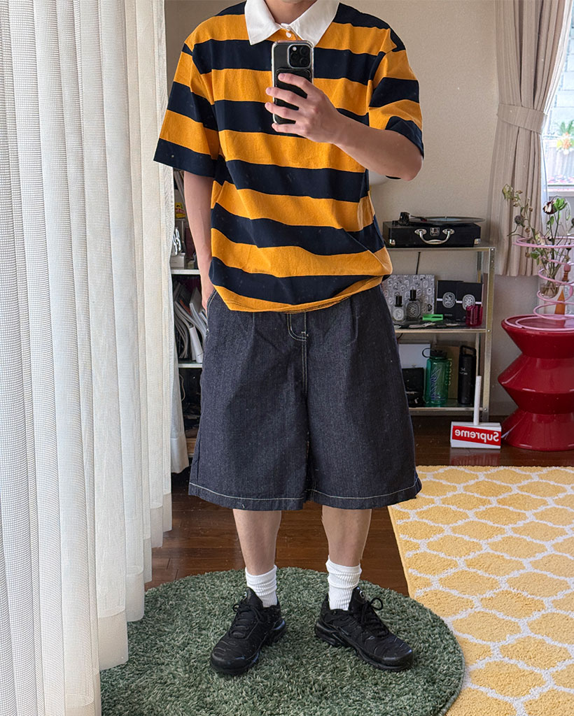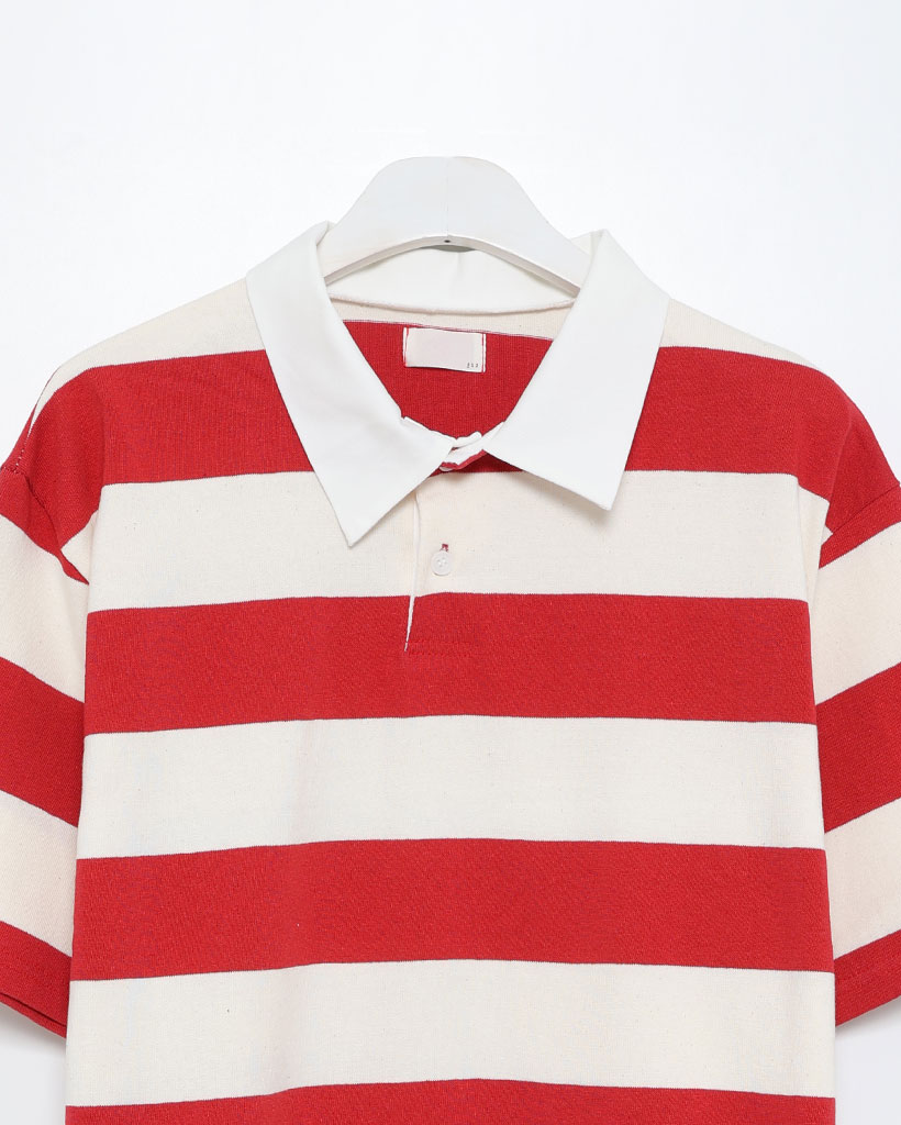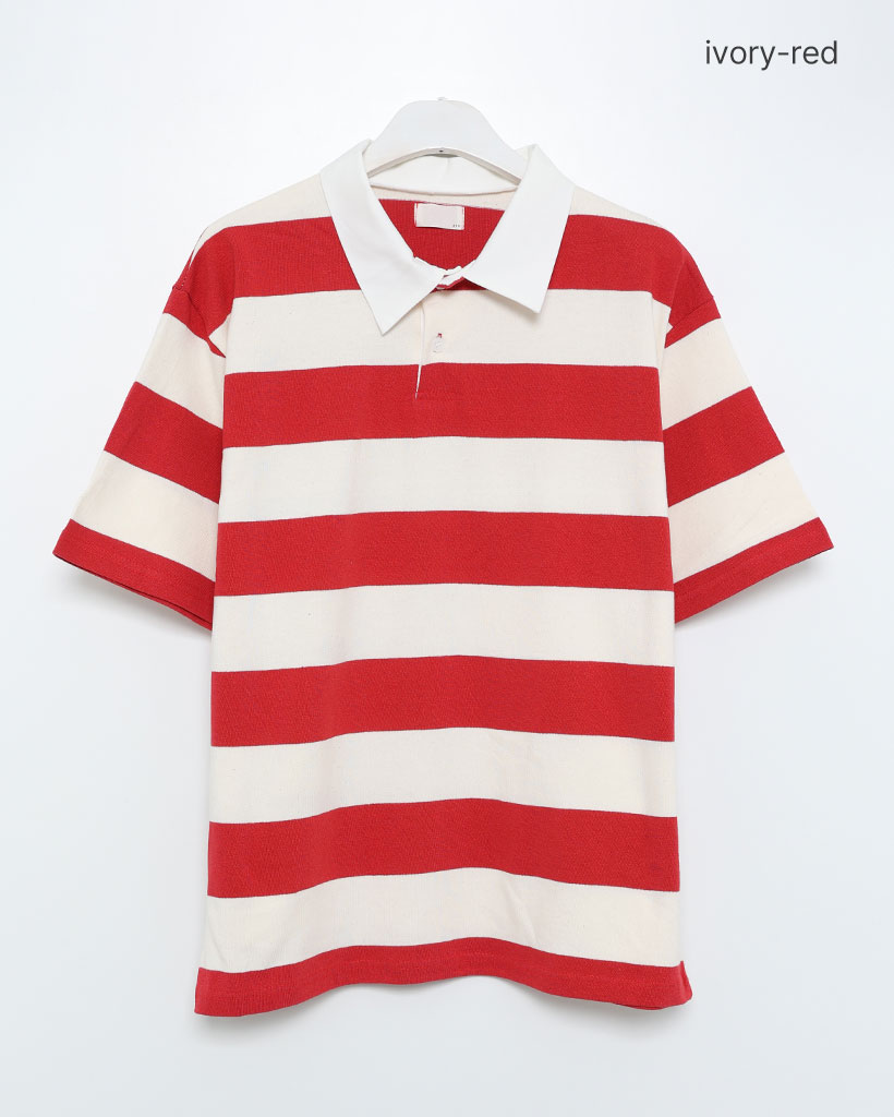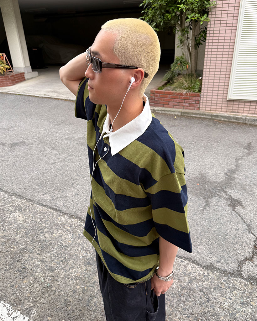ボーダーラガーカラーTシャツ