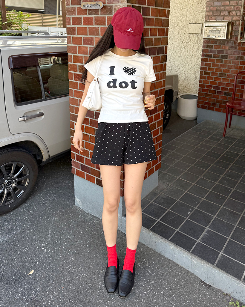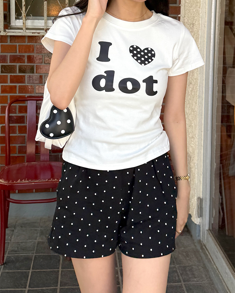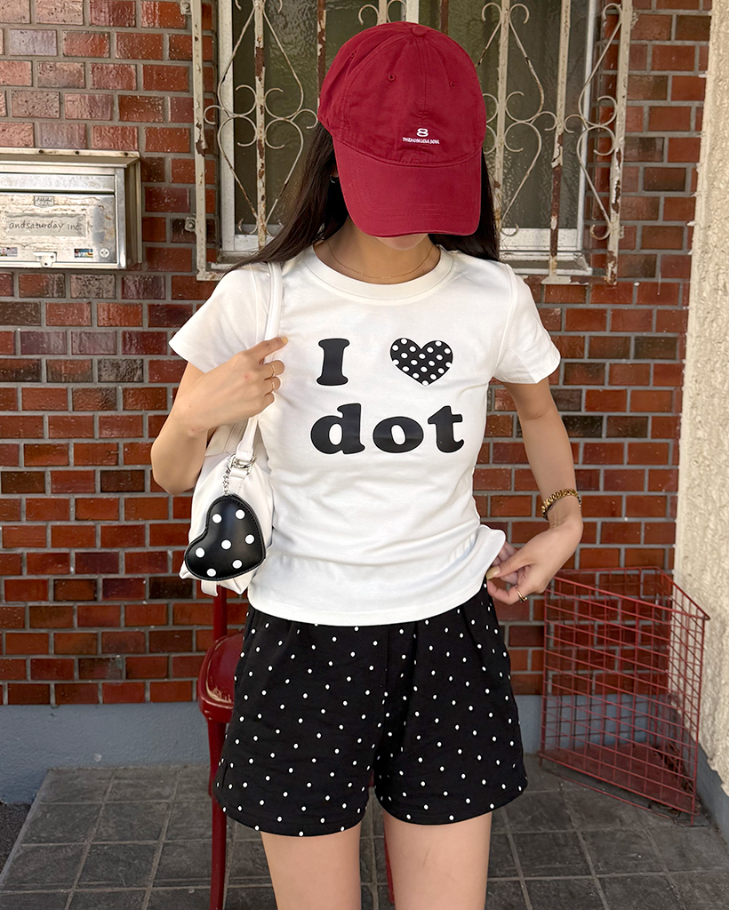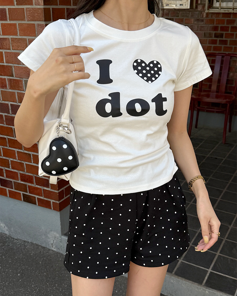 LOVEドットセミクロップ半袖Tシャツ