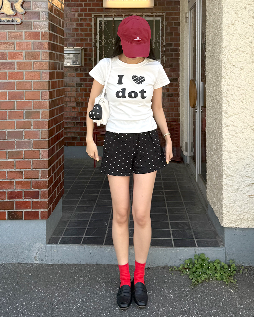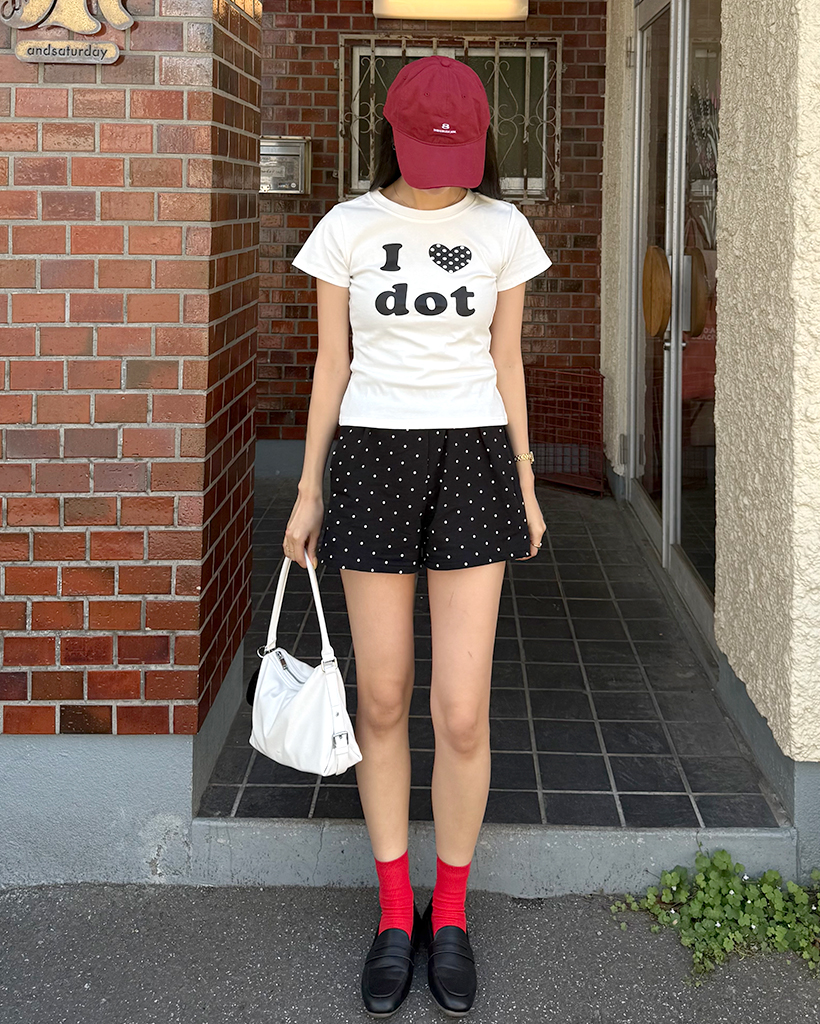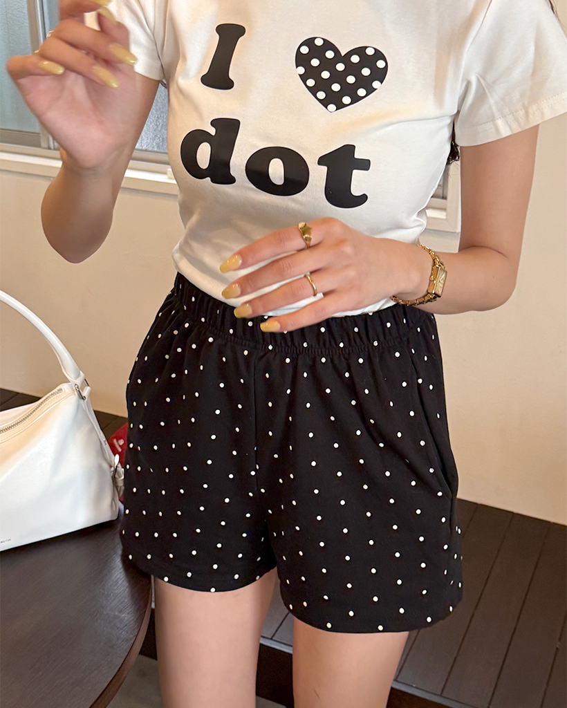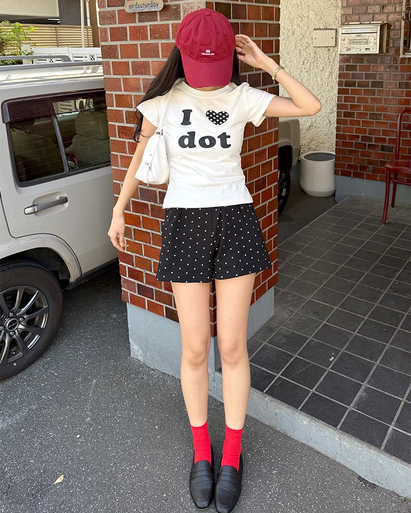 LOVEドットセミクロップ半袖Tシャツ