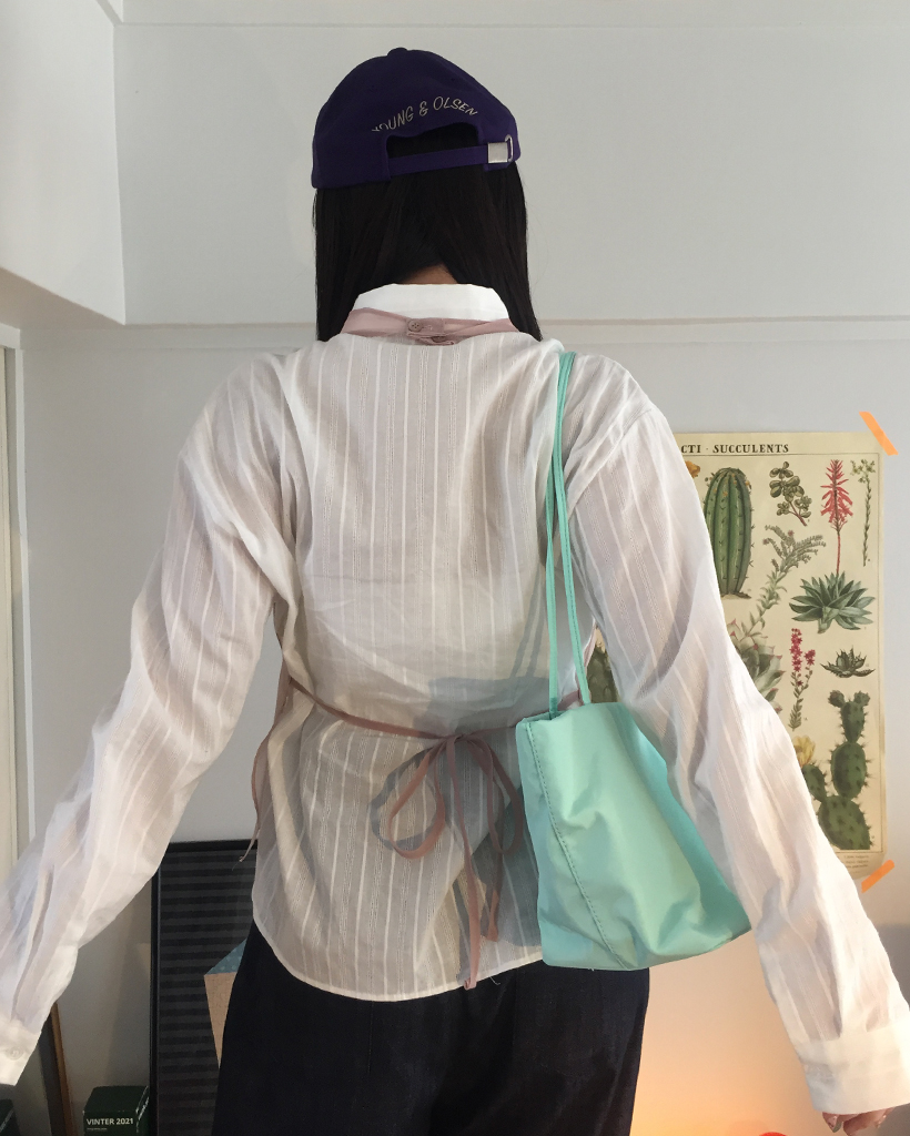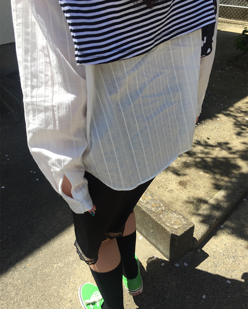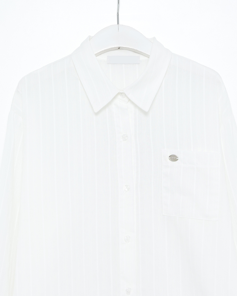 メタルタグポケットパンチングストライプシャツ