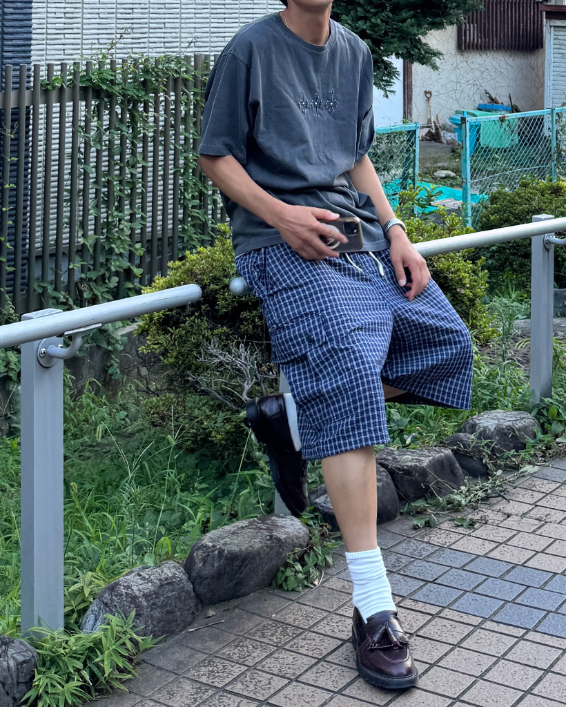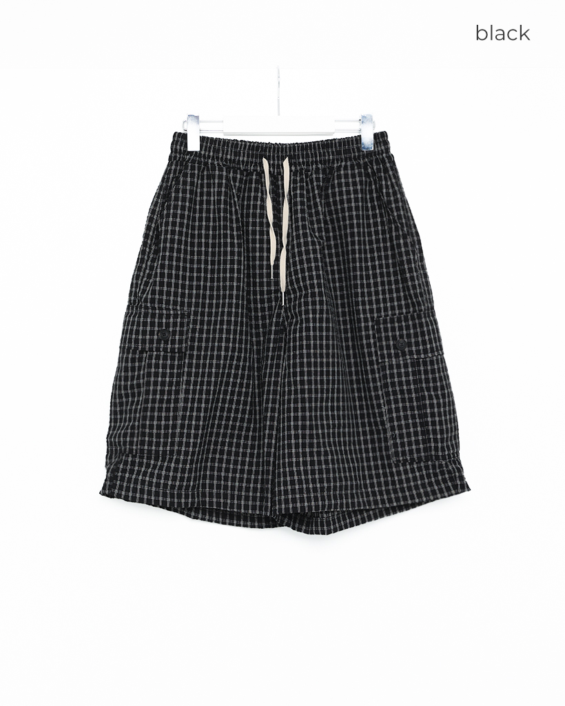 (ユニセックス)チェック カーゴ バミューダパンツ