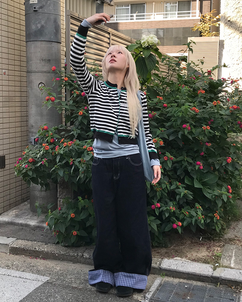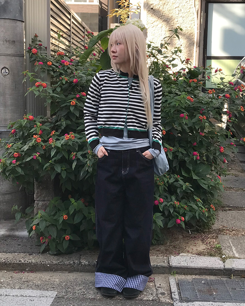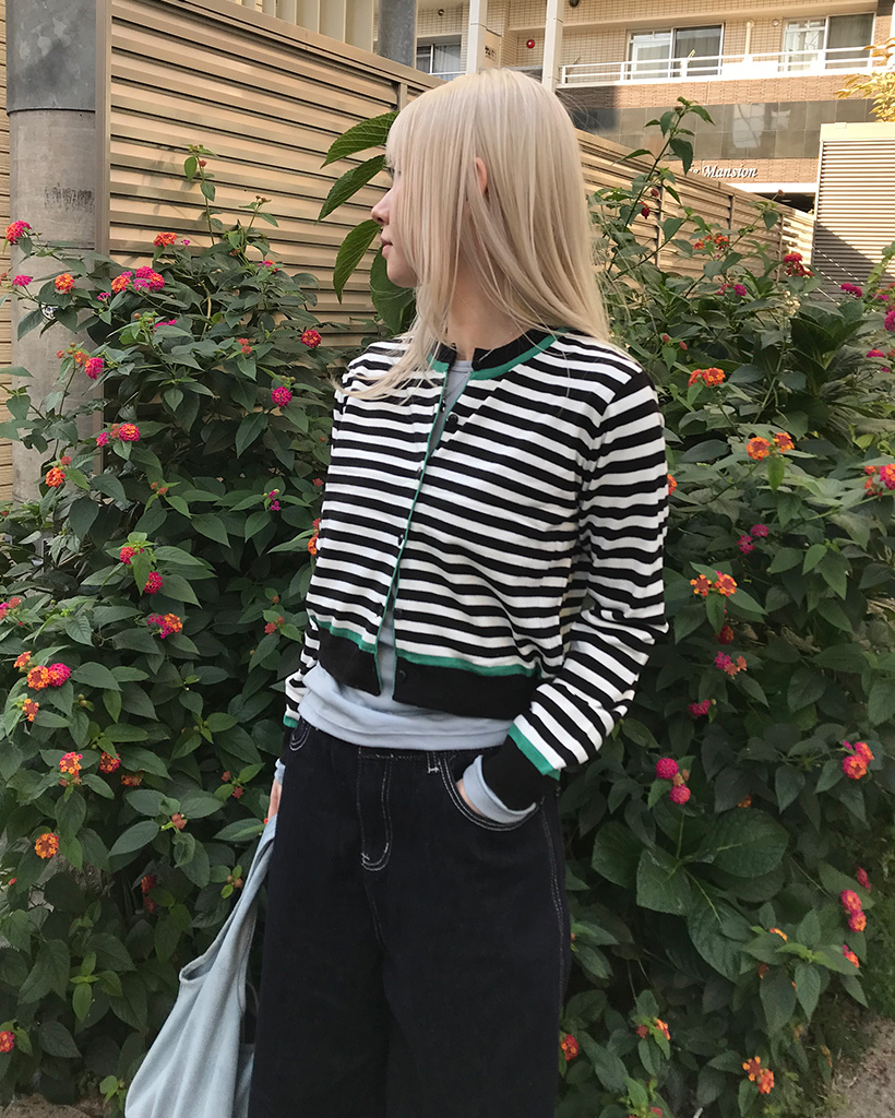 バイカラーボーダーカーディガン