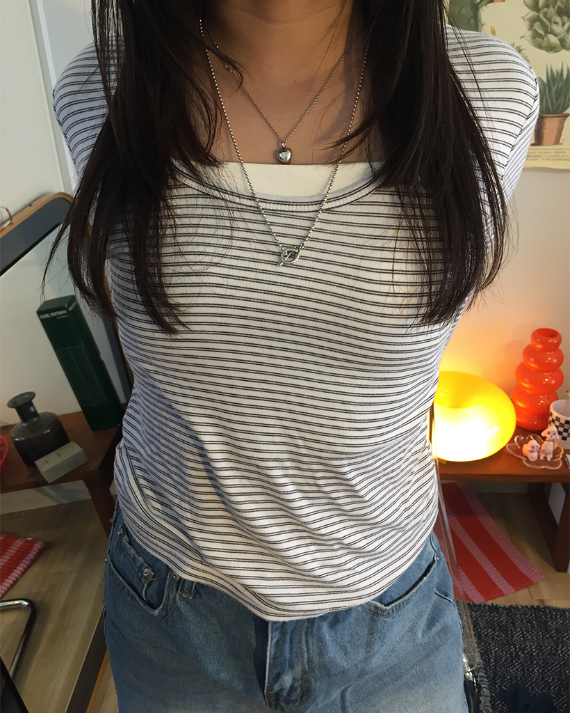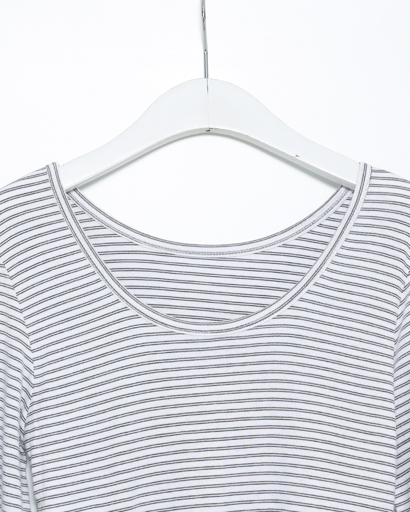 ボーダーオーバルネッククロップドスリーブTシャツ
