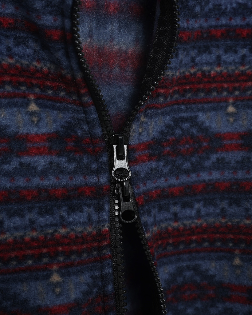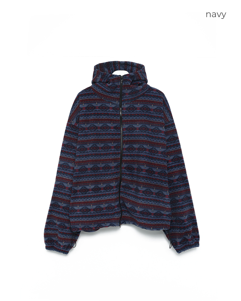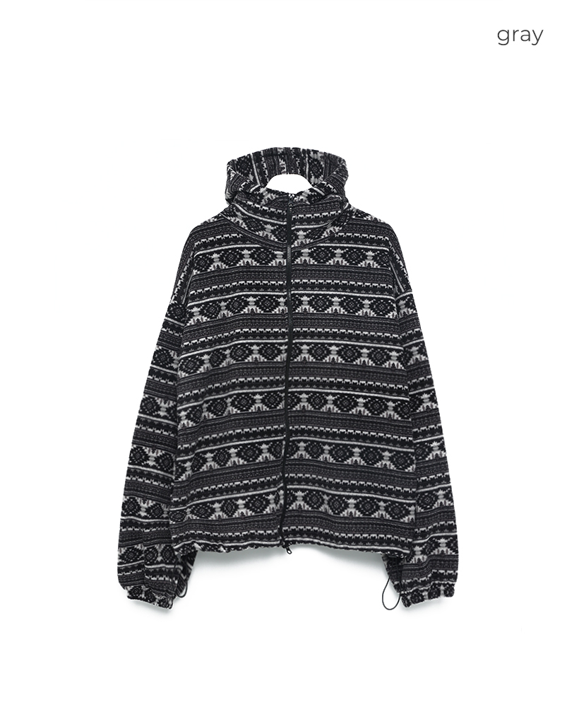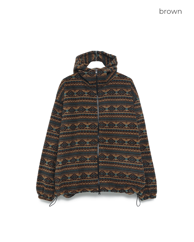 (ユニセックス)エスニックフリースフードストリング付きジャケット