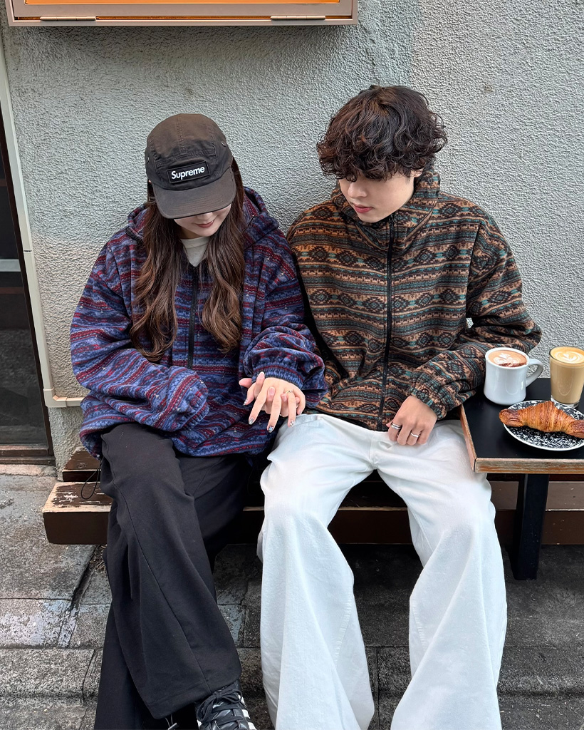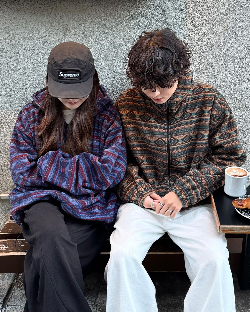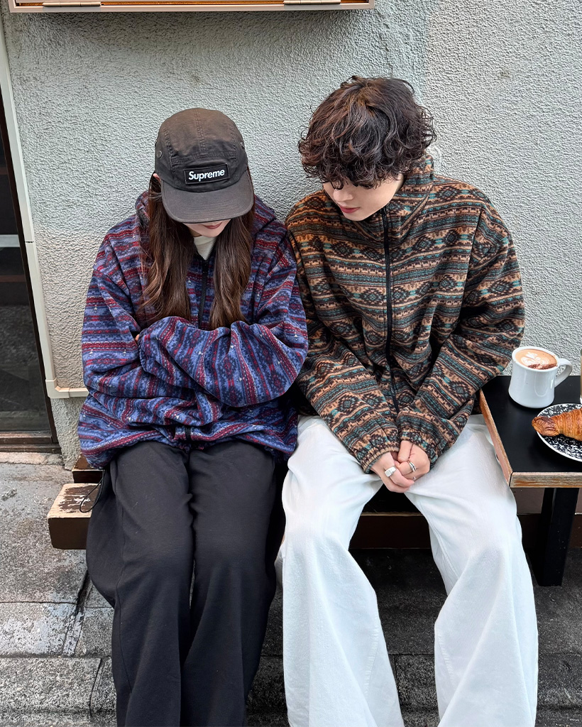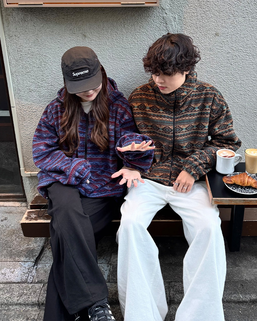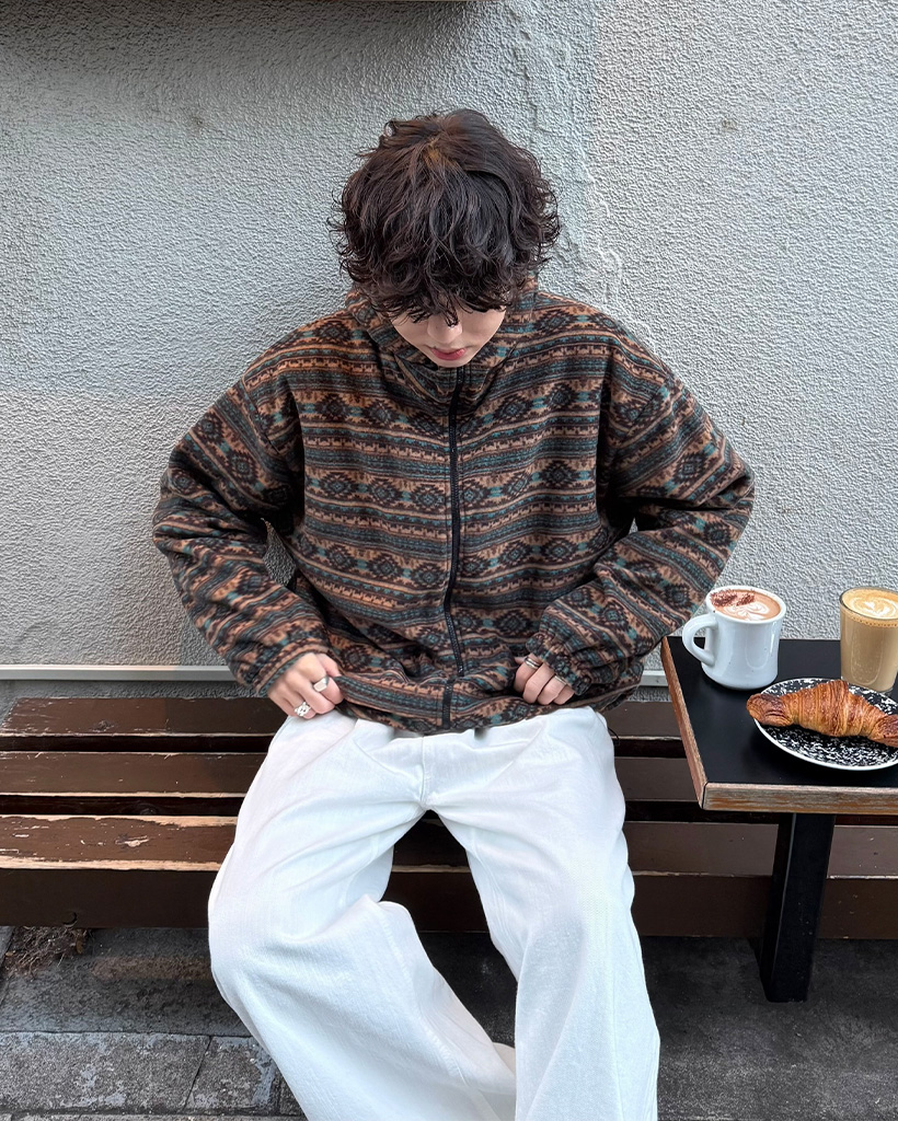 (ユニセックス)エスニックフリースフードストリング付きジャケット