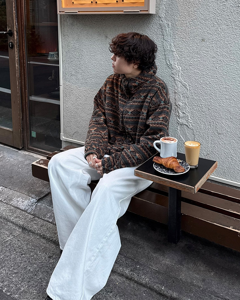 #マユ#157cm#ウェーブ#モノトーン#ユニセックス#カジュアル