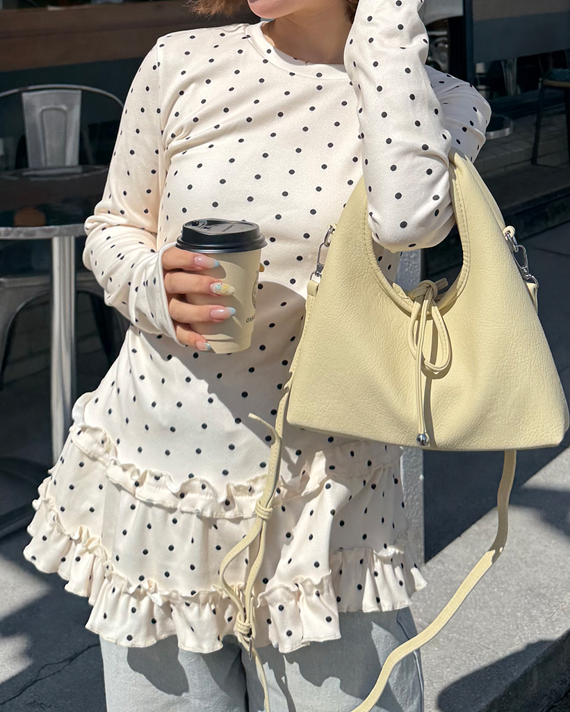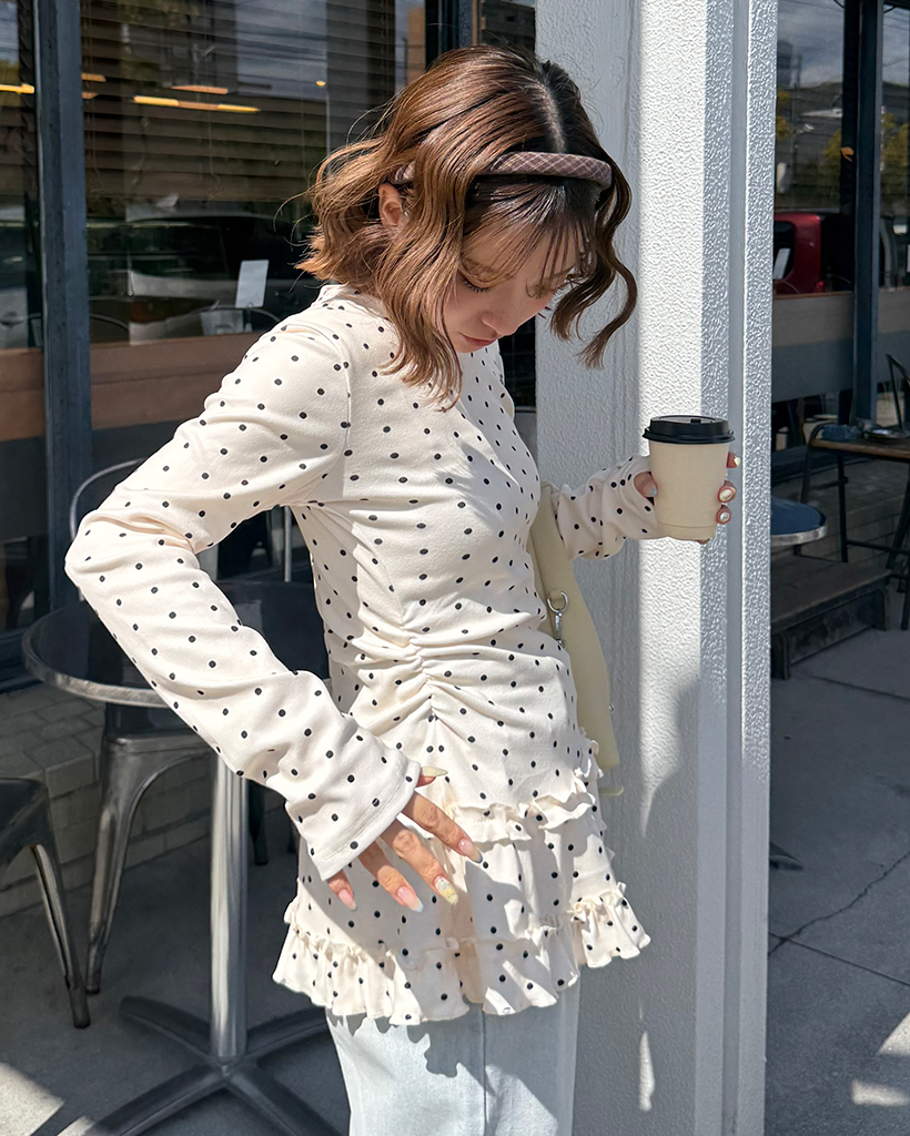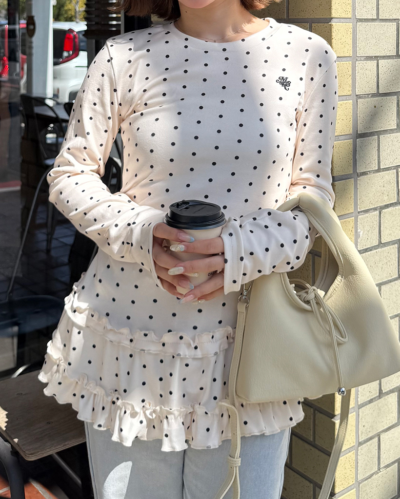 ピンドットティアードヘムスリムロングTシャツ