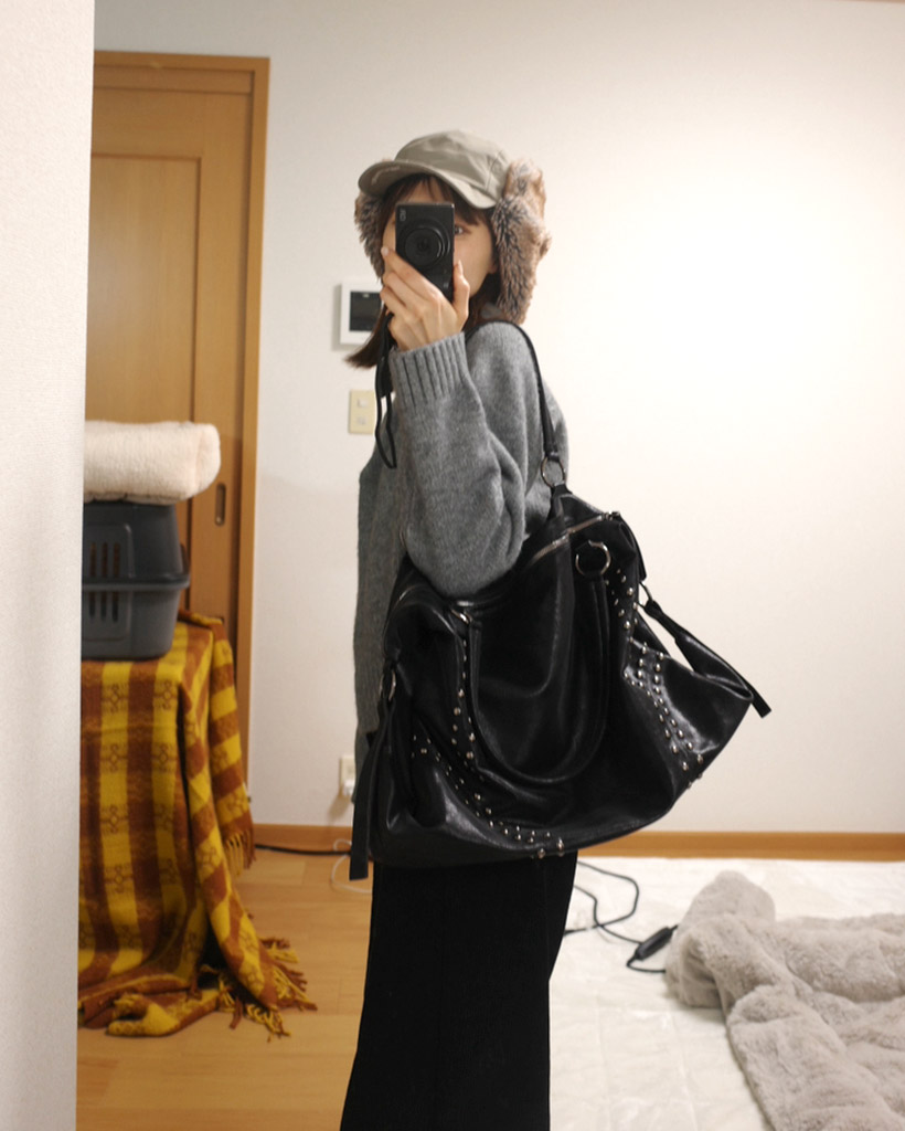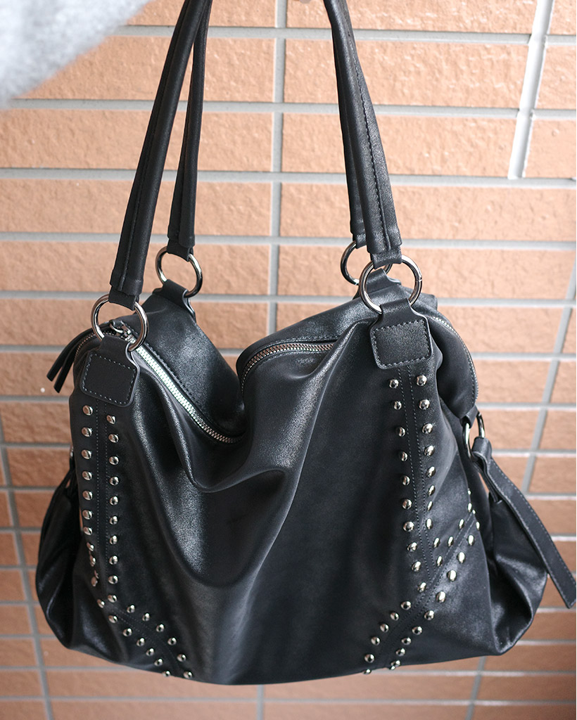 フェイクレザースタッズショルダーバッグ