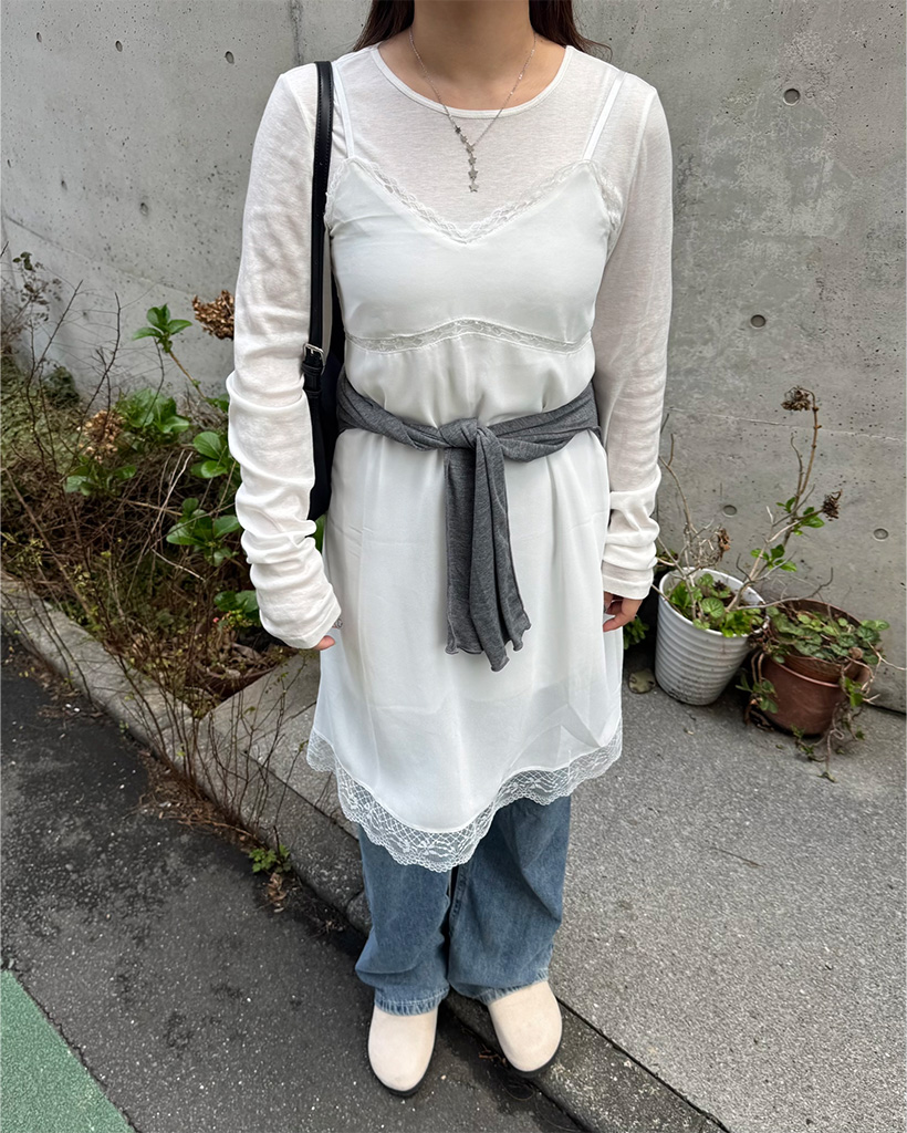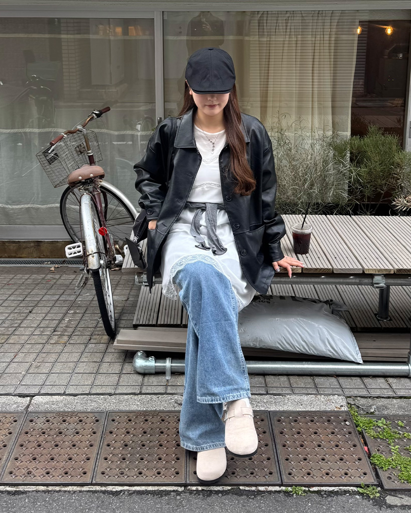 #マユ#157cm#ウェーブ#モノトーン#ユニセックス#カジュアル