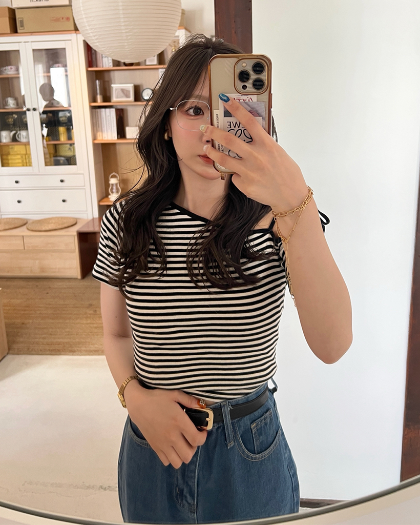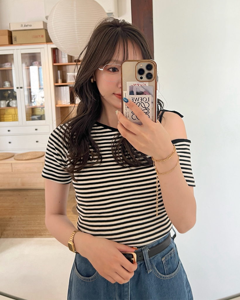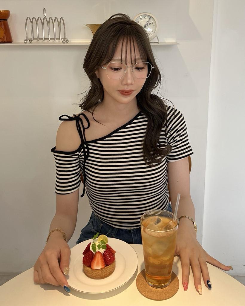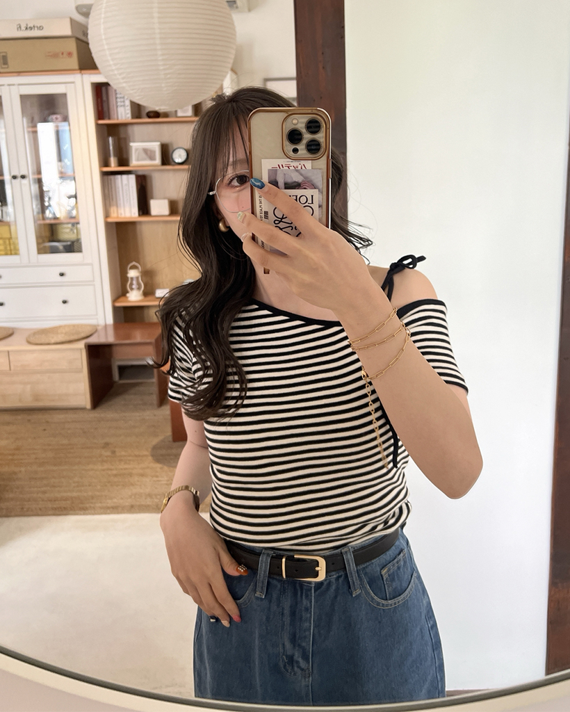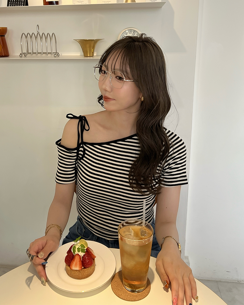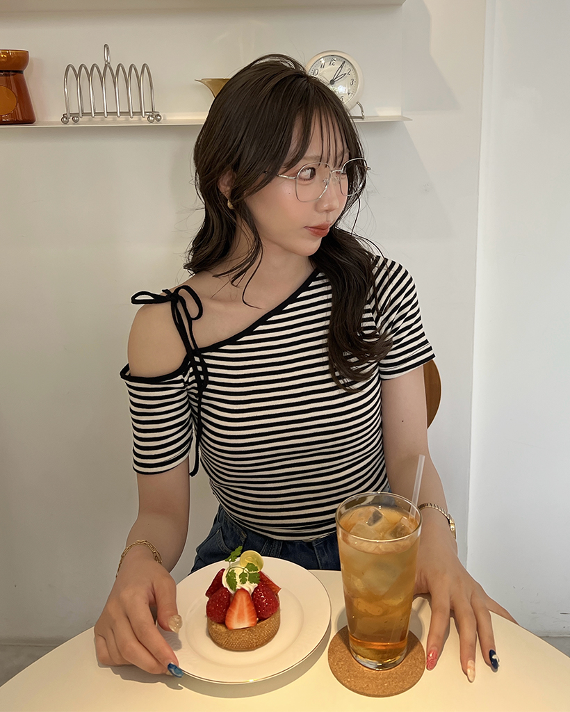 ワンショルーボーダー半袖Tシャツ