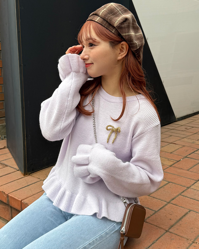 フリルヘムリブニット