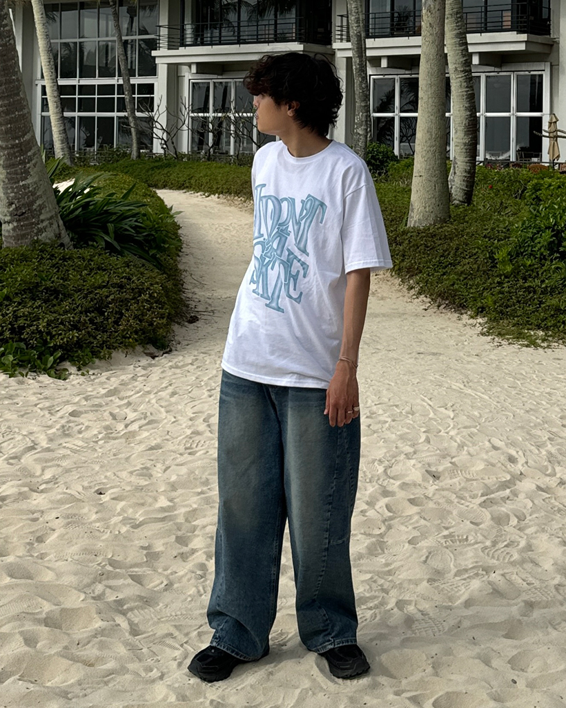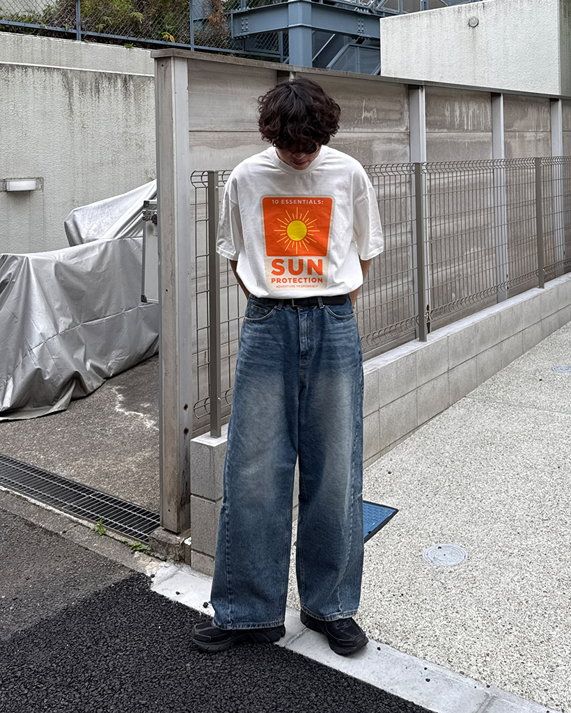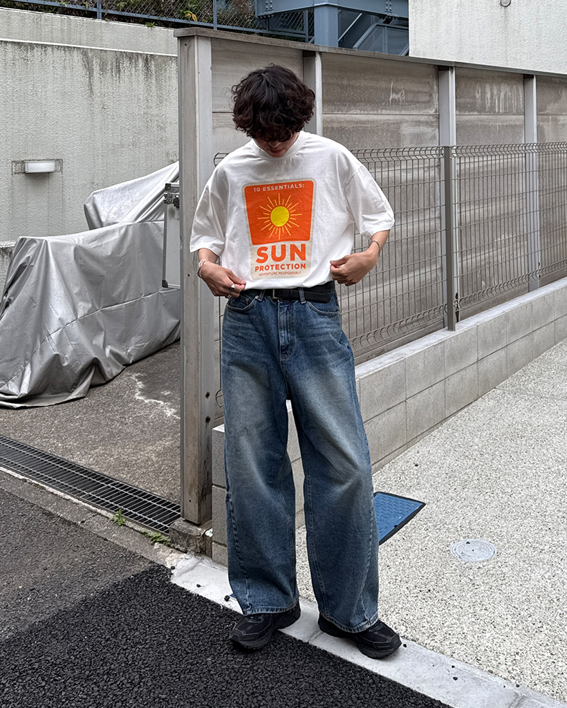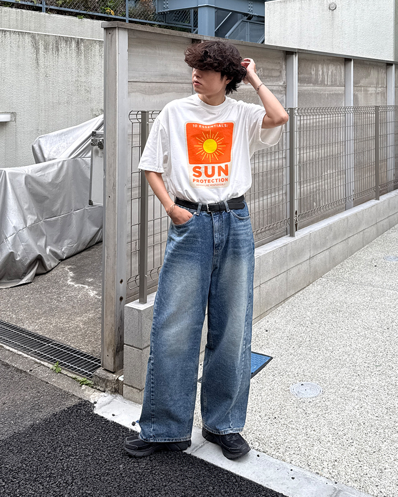 (ユニセックス)ワイドアウトシームデニムパンツ