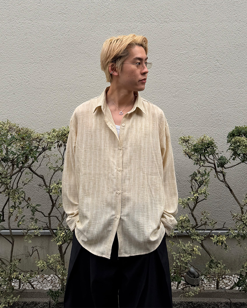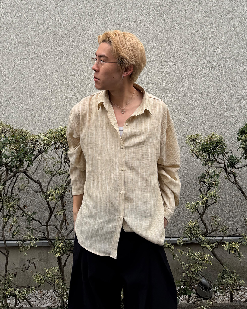 (ユニセックス)ストライプパターンシャツ