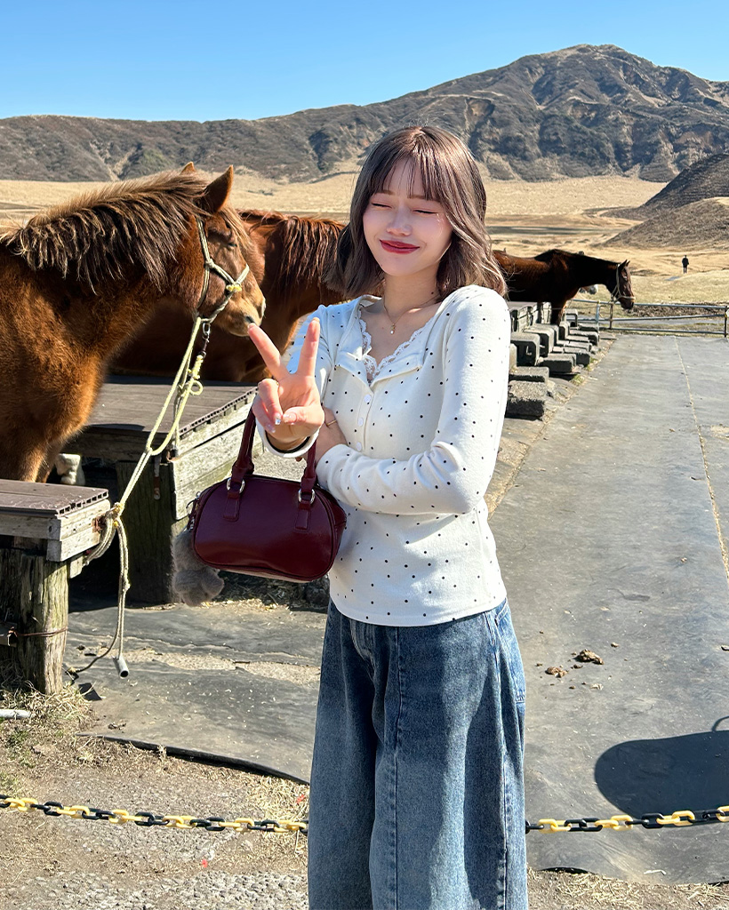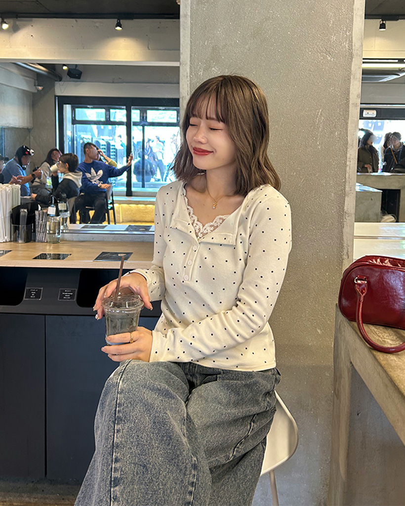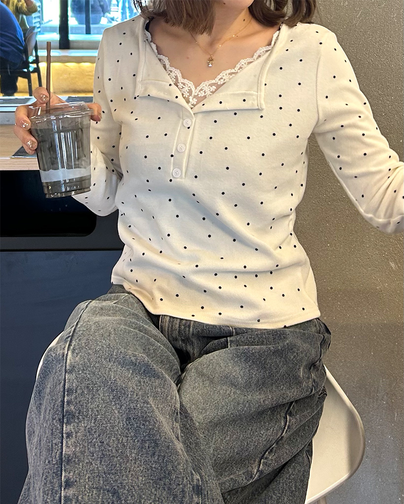 レースドットロングスリーブTシャツ