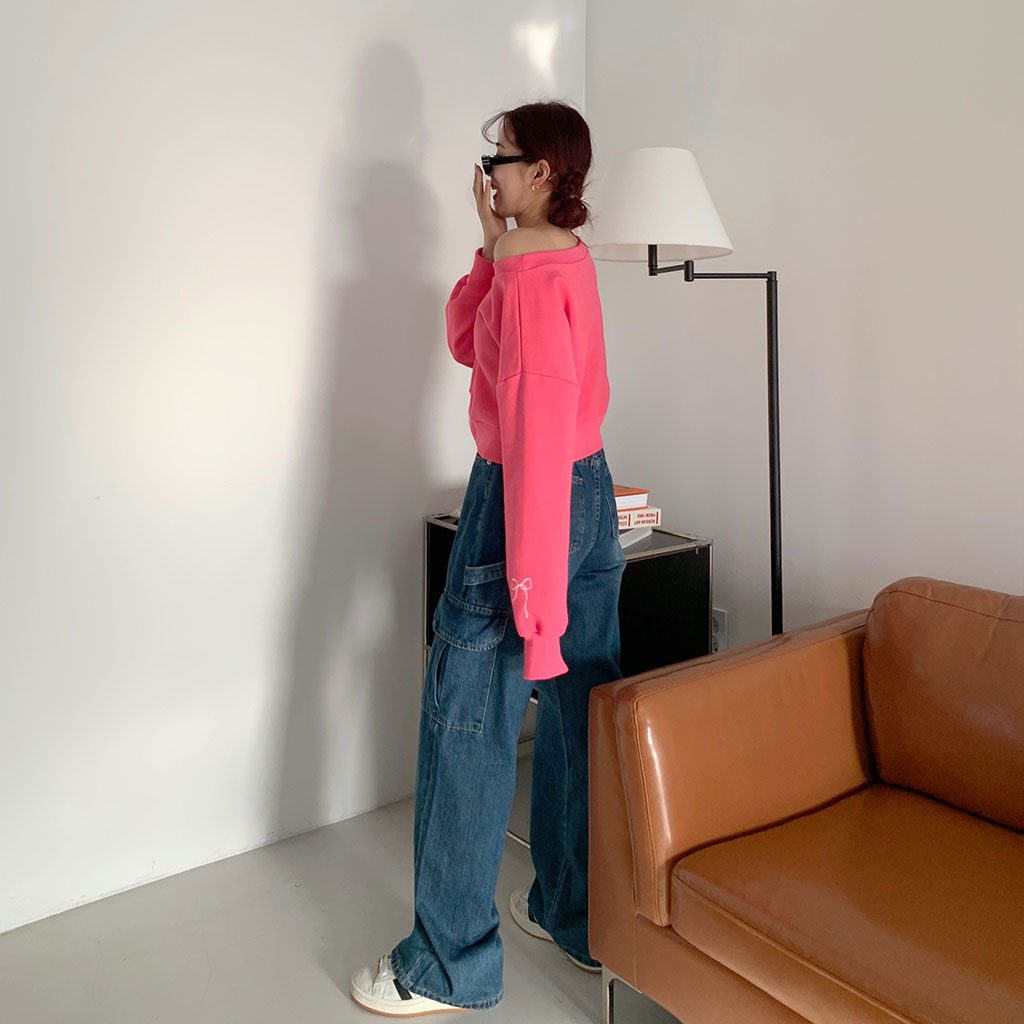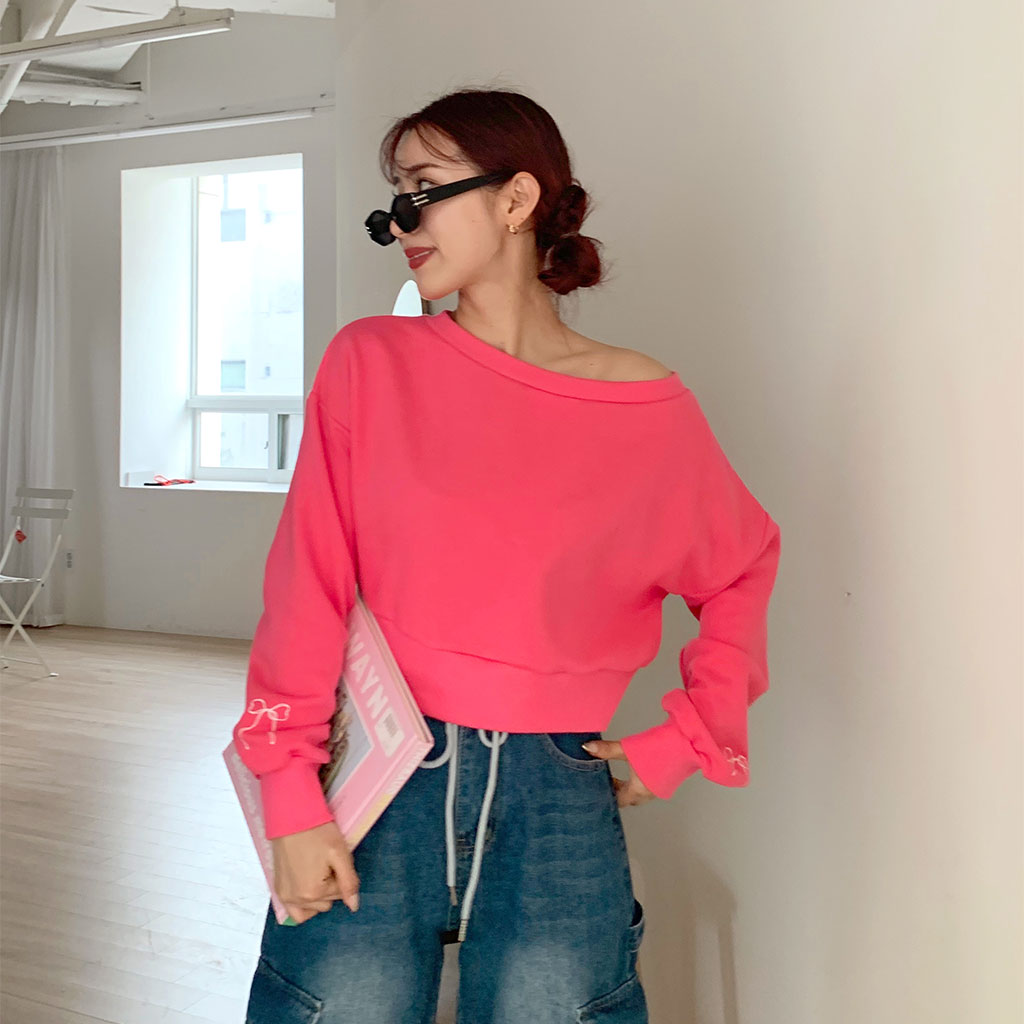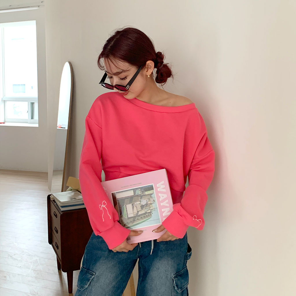 スリーブリボンオフショルダースウェットシャツ