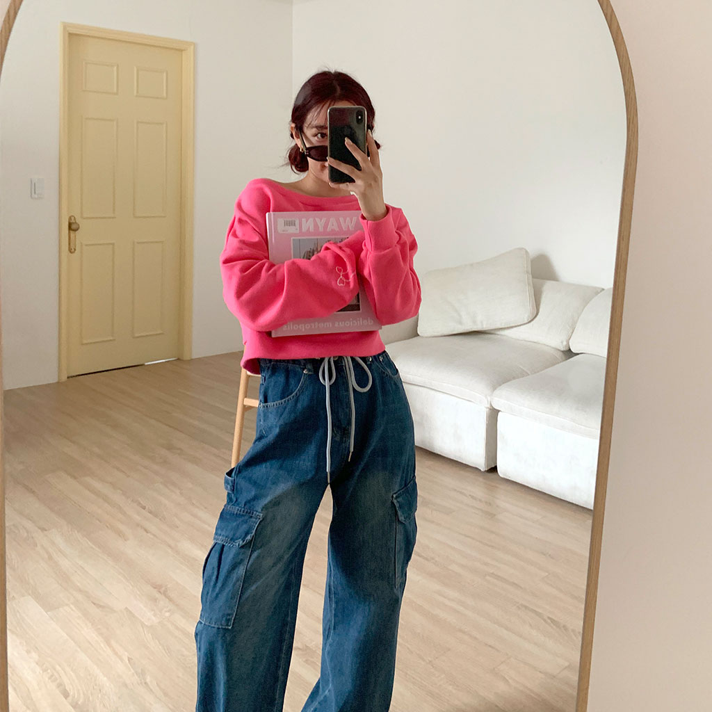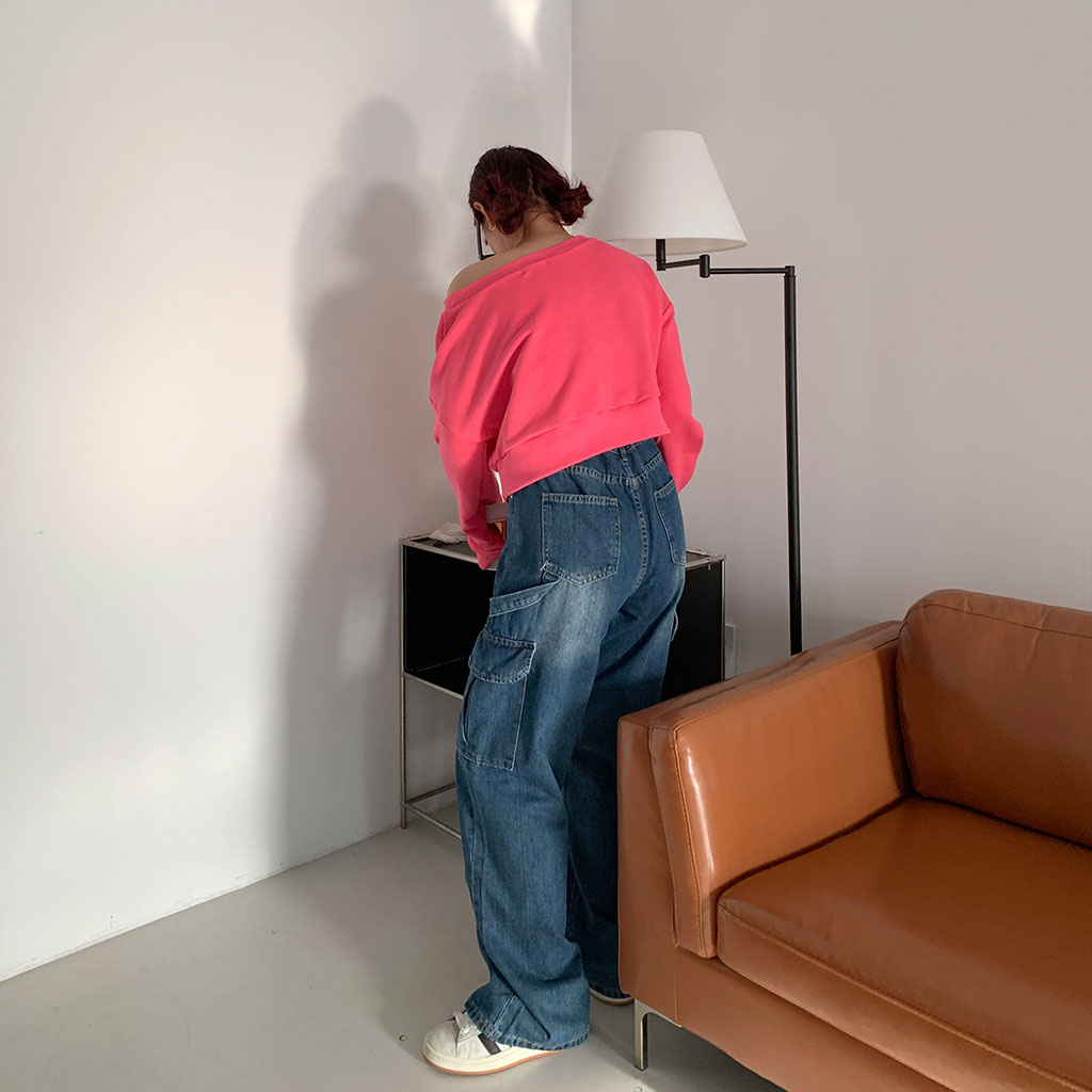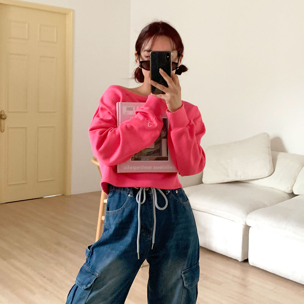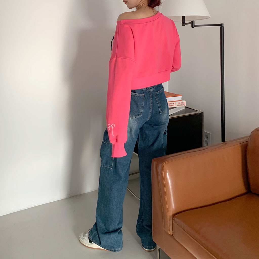 スリーブリボンオフショルダースウェットシャツ