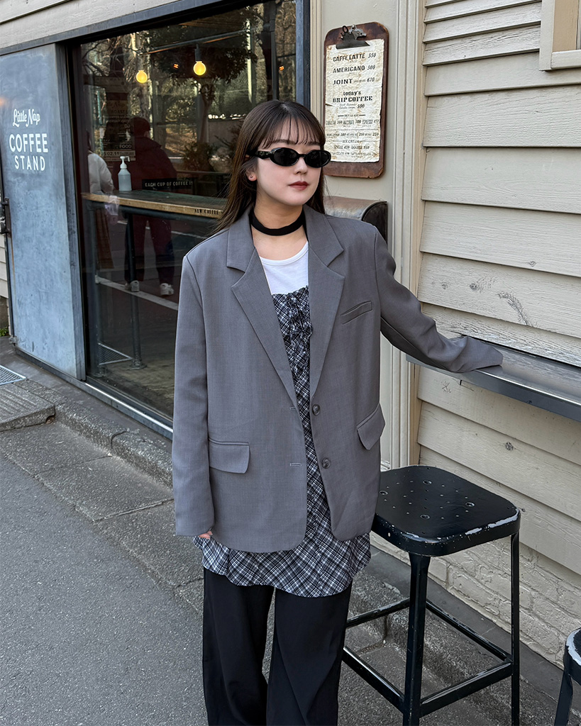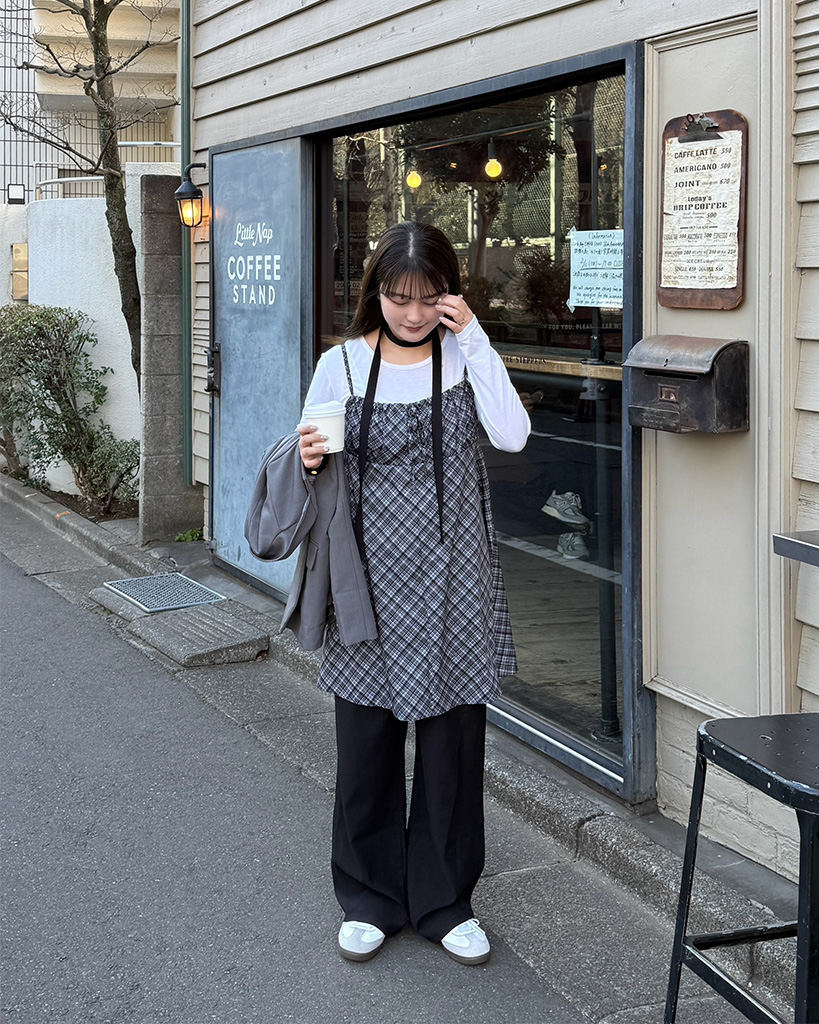 #マユ#157cm#ウェーブ#モノトーン#ユニセックス#カジュアル