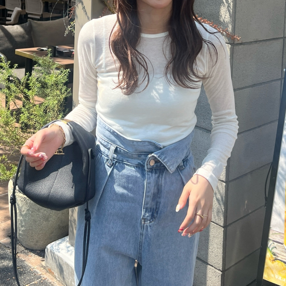ラウンドネックシアーロングTシャツ