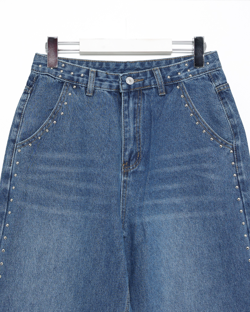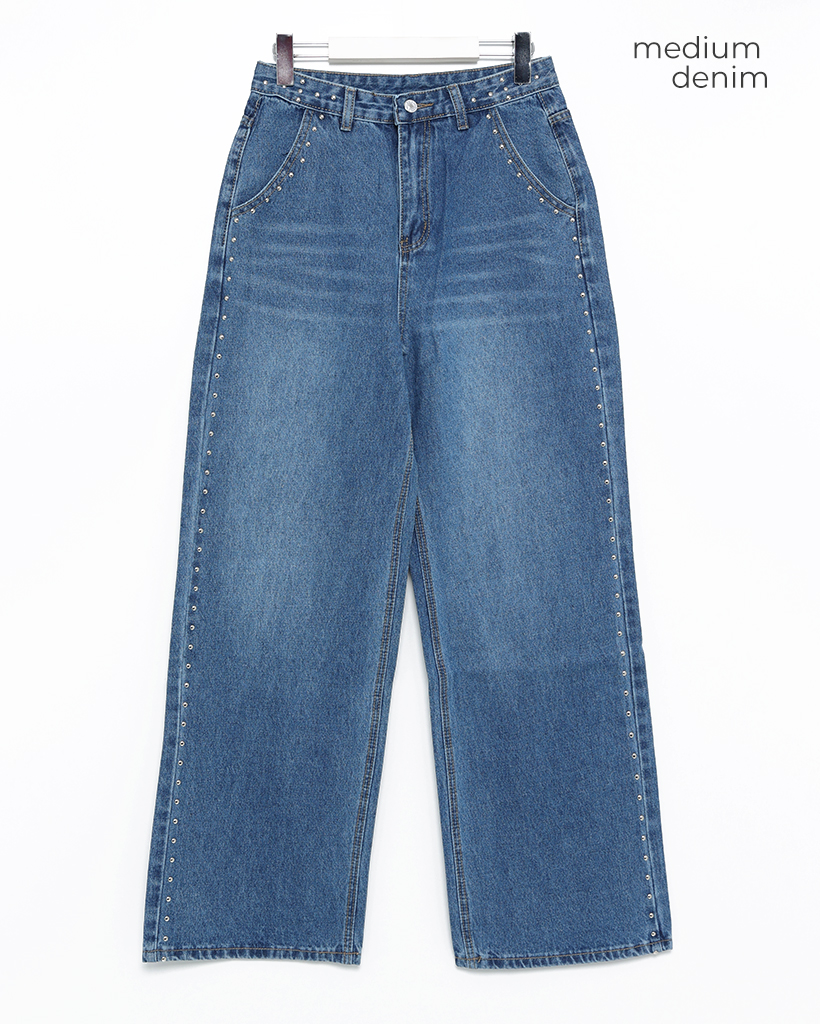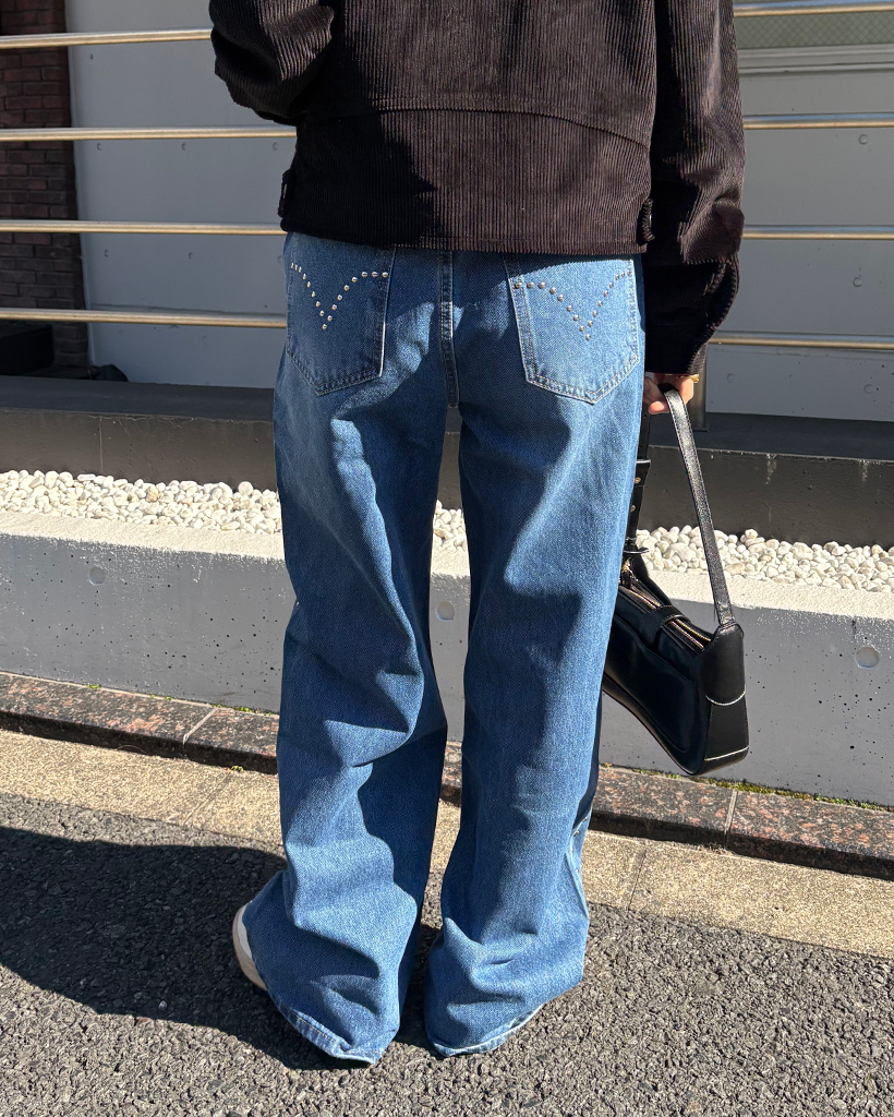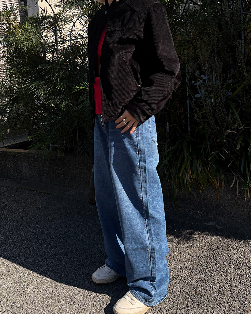 アウトシームスタッズワイドデニムパンツ