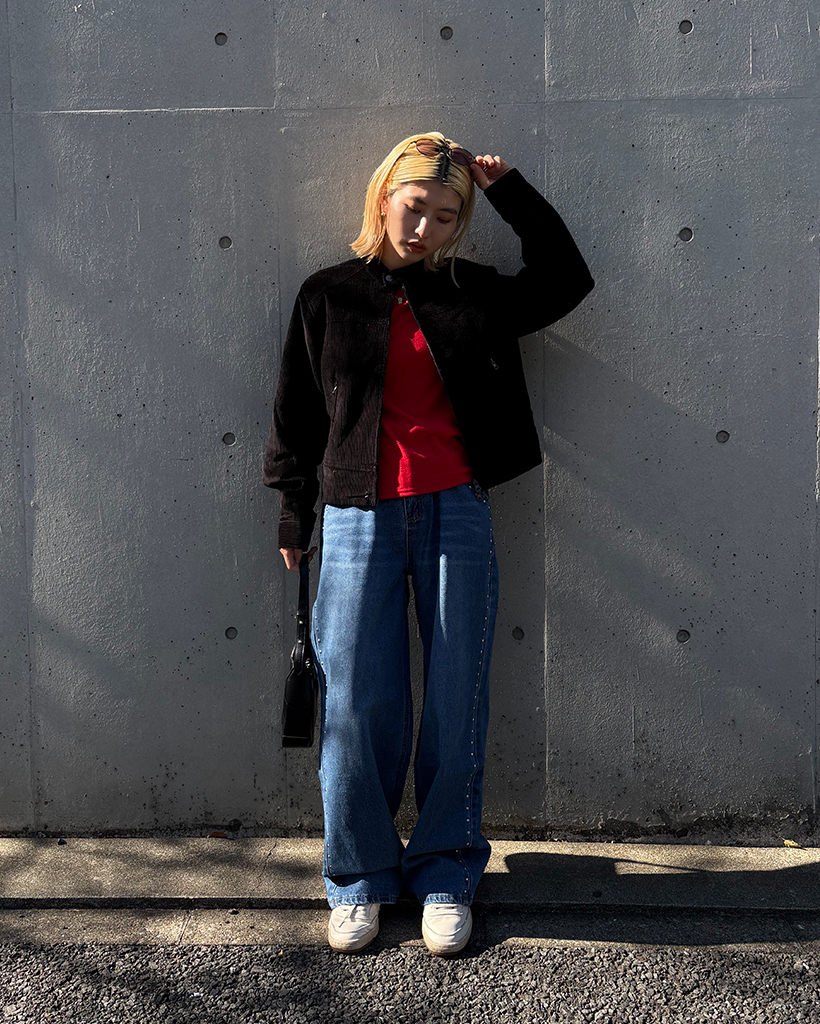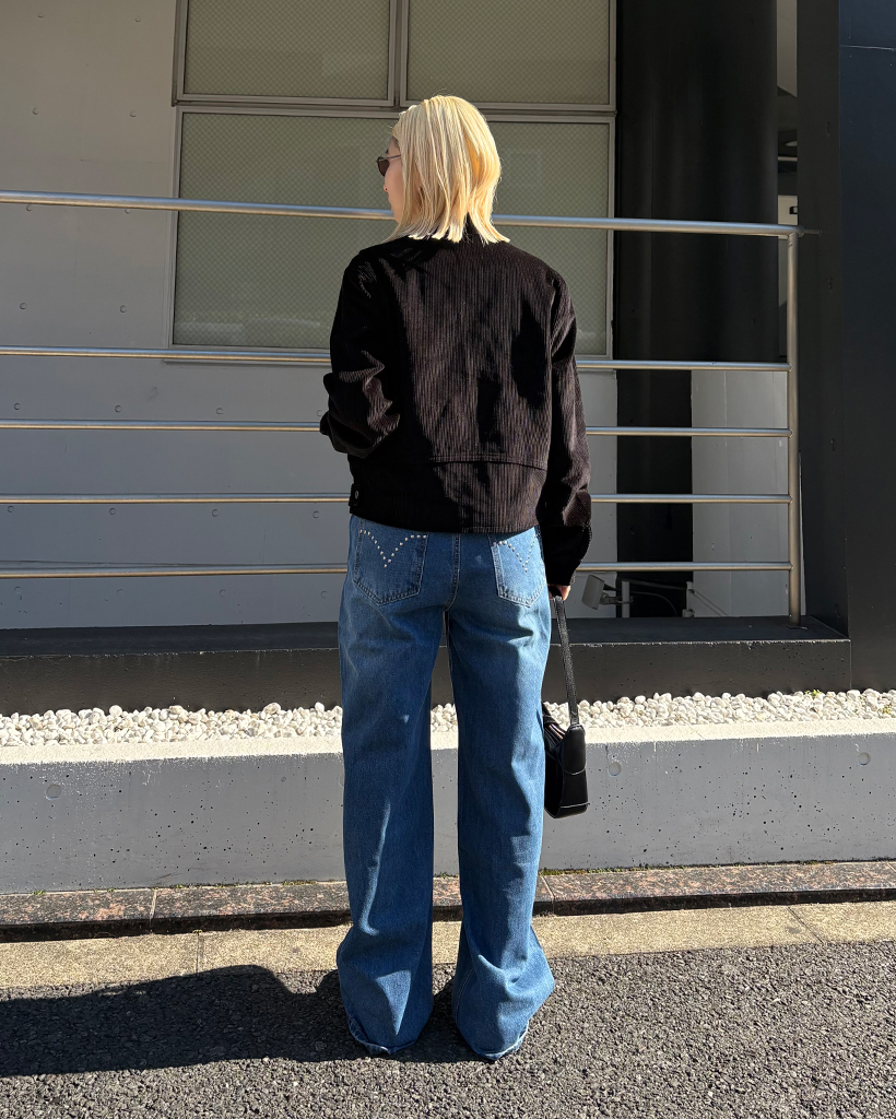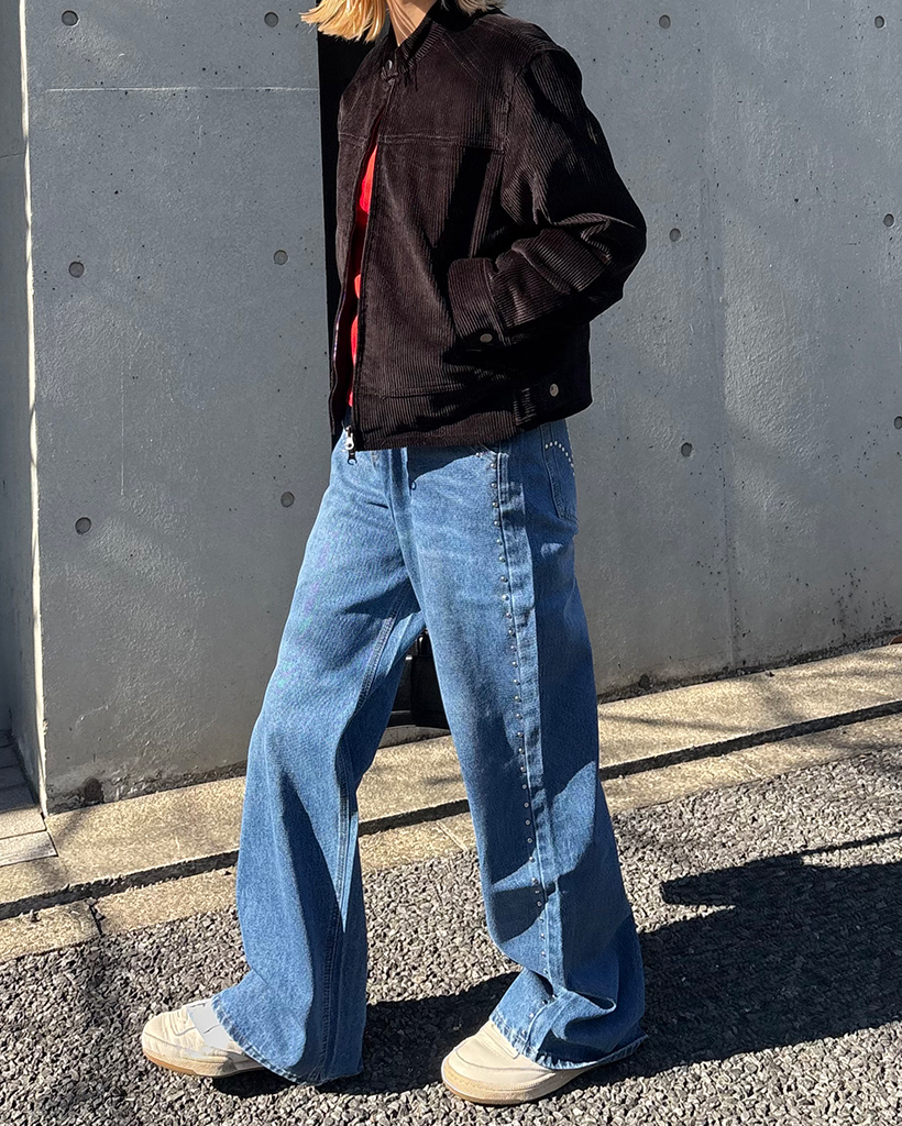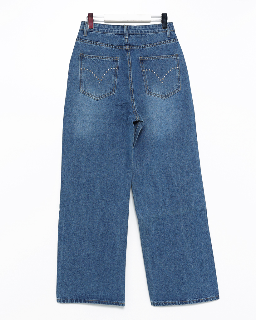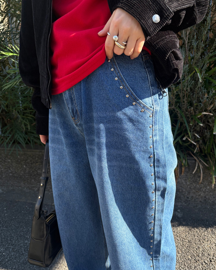 アウトシームスタッズワイドデニムパンツ