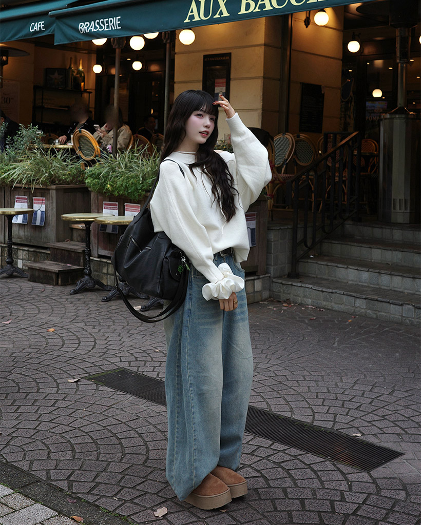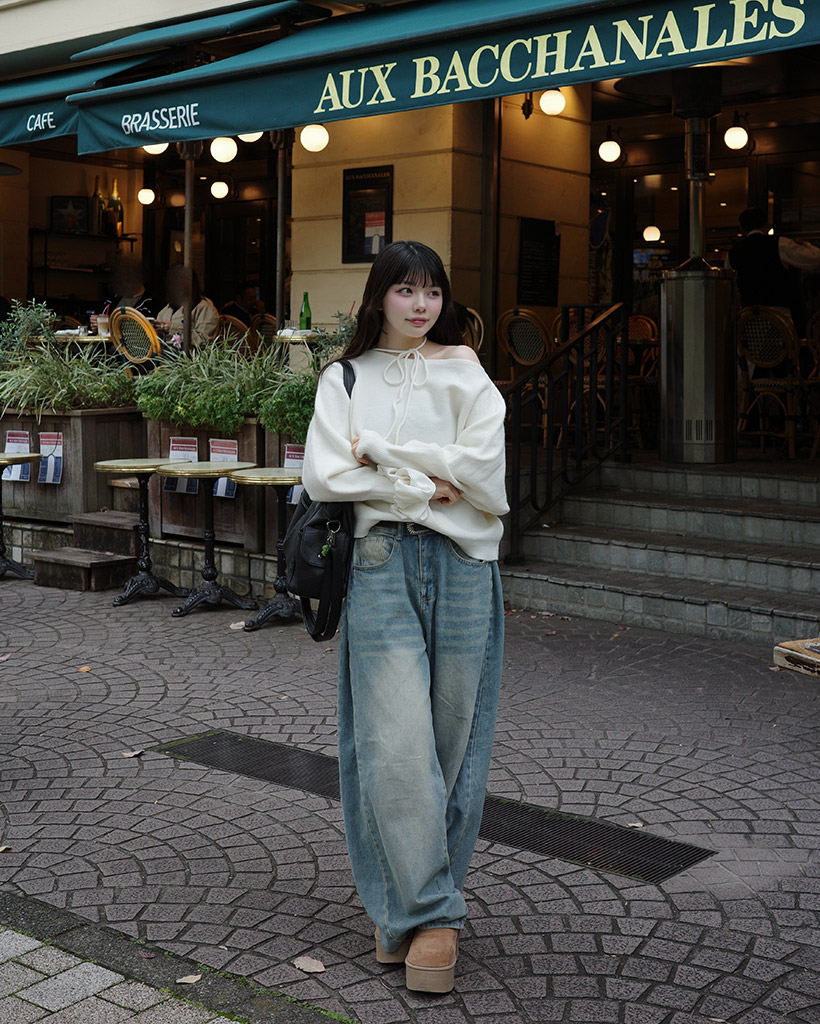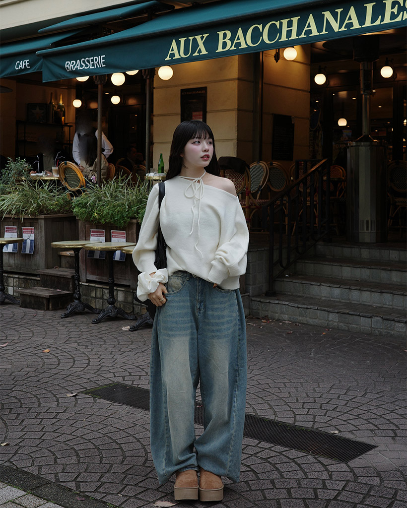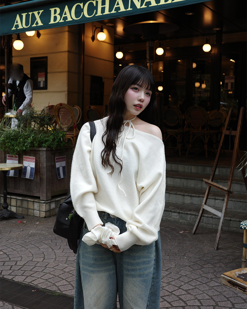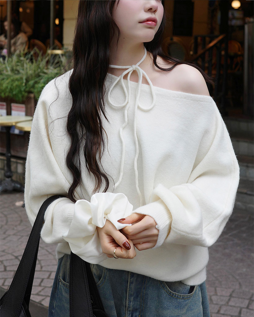 リボンタイアンバランスニット