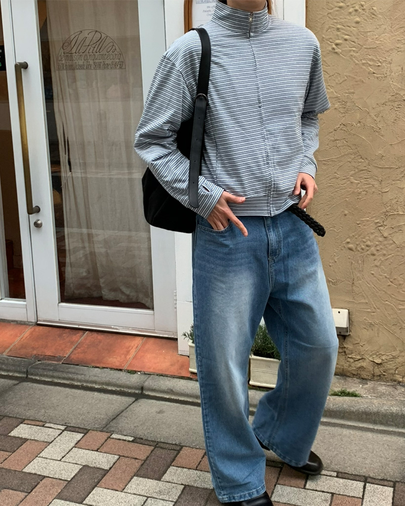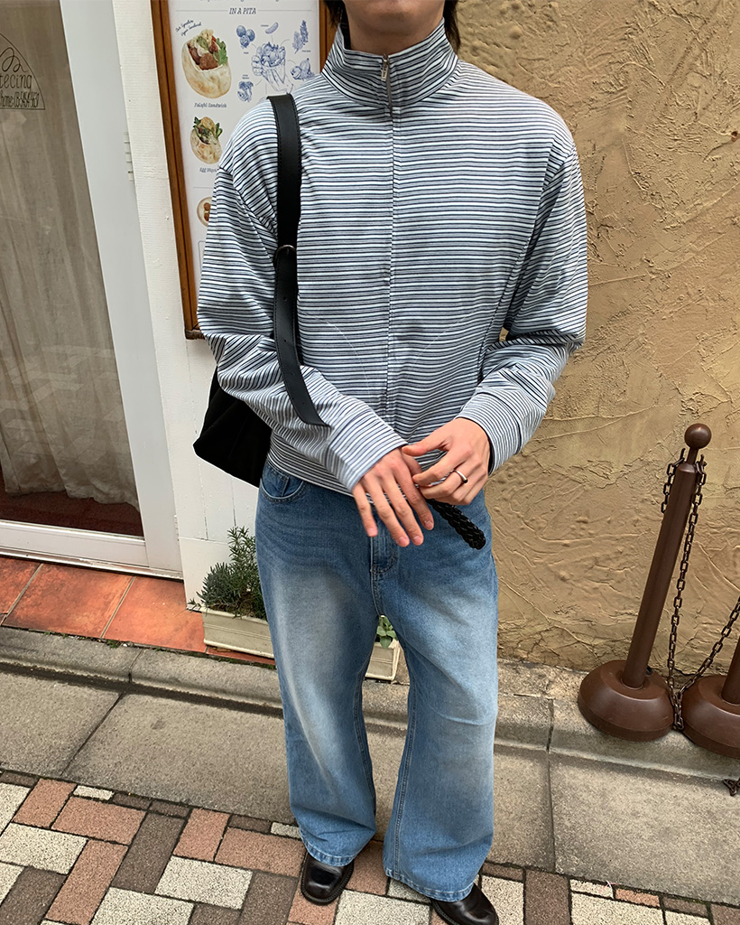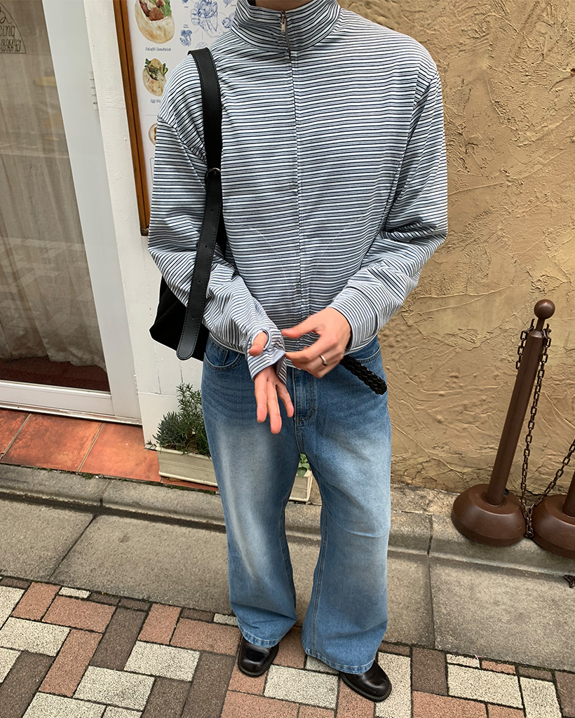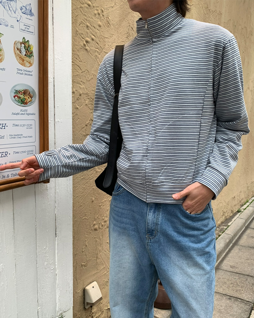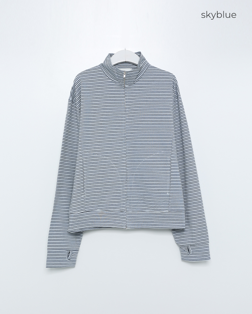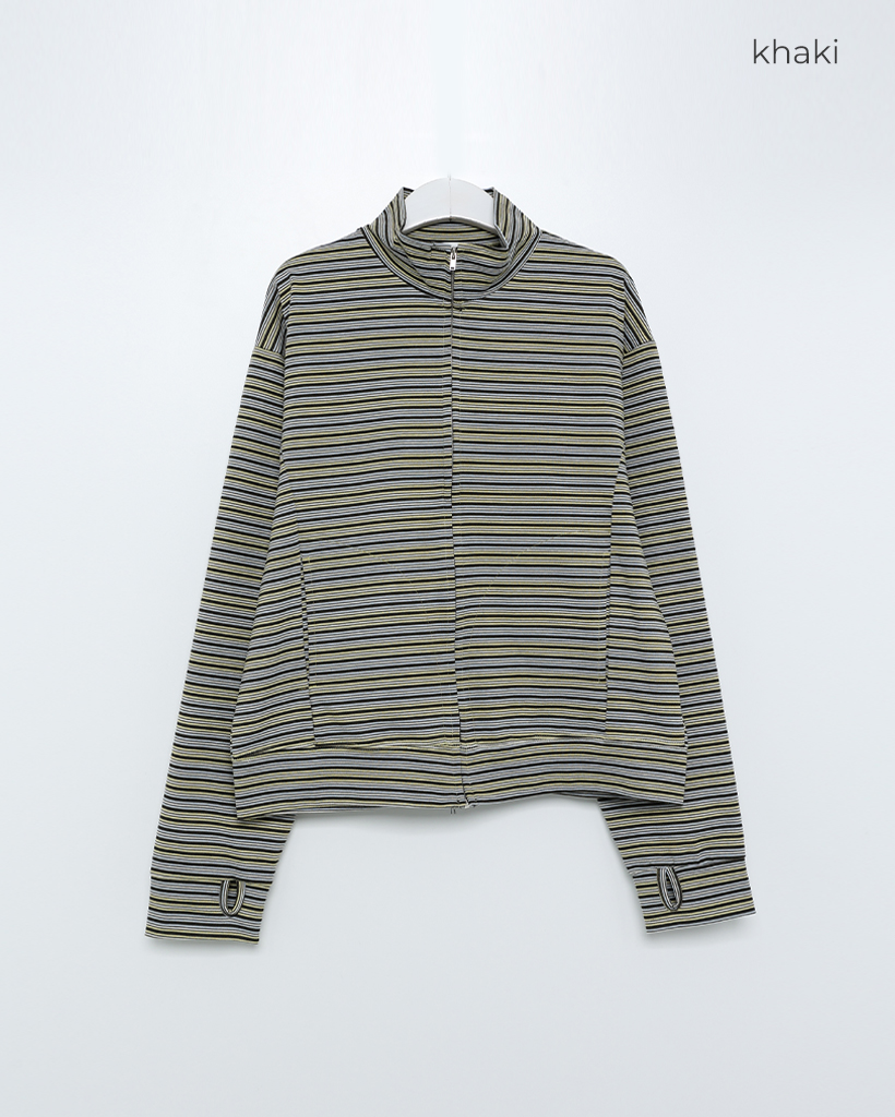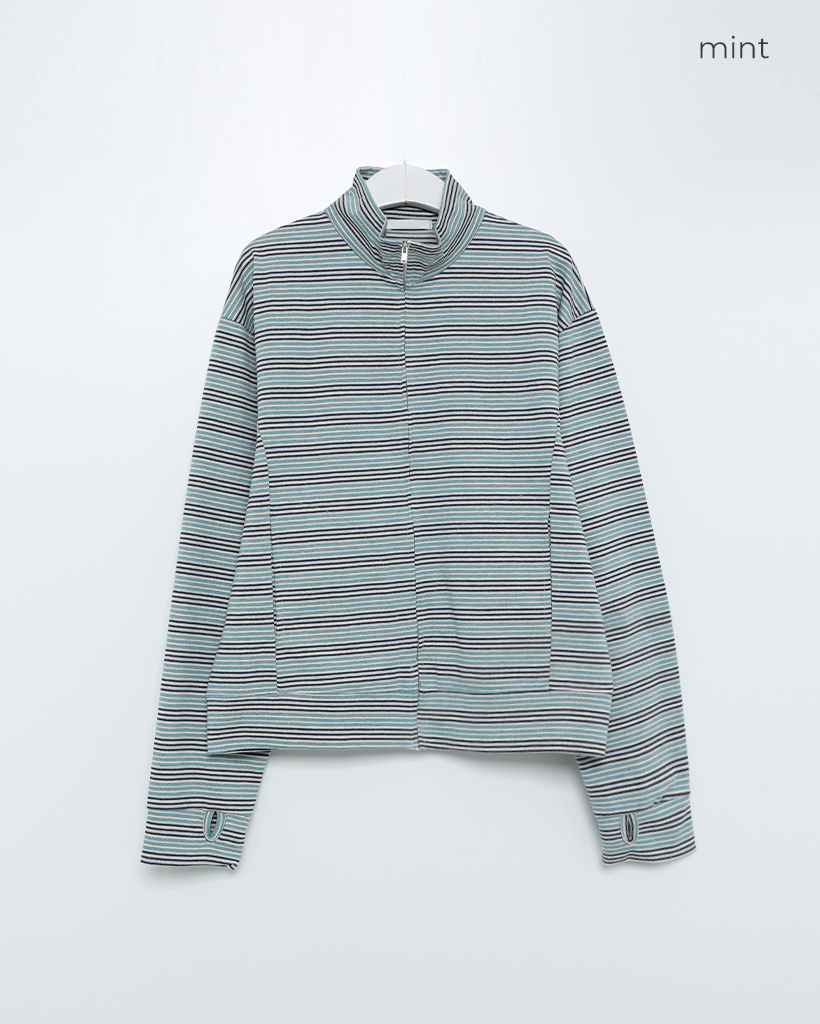(ユニセックス)ボーダーパターンフィンガーホールジャケット