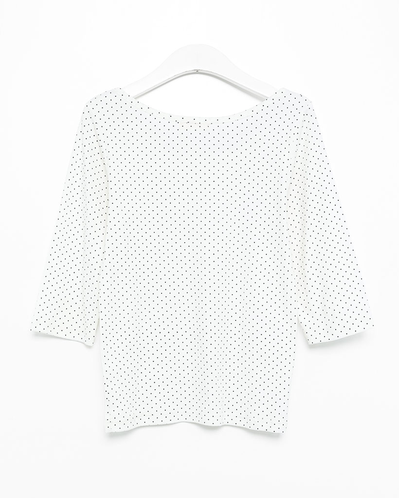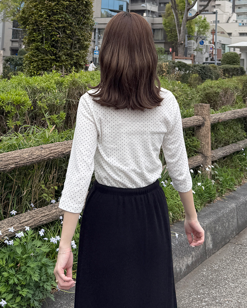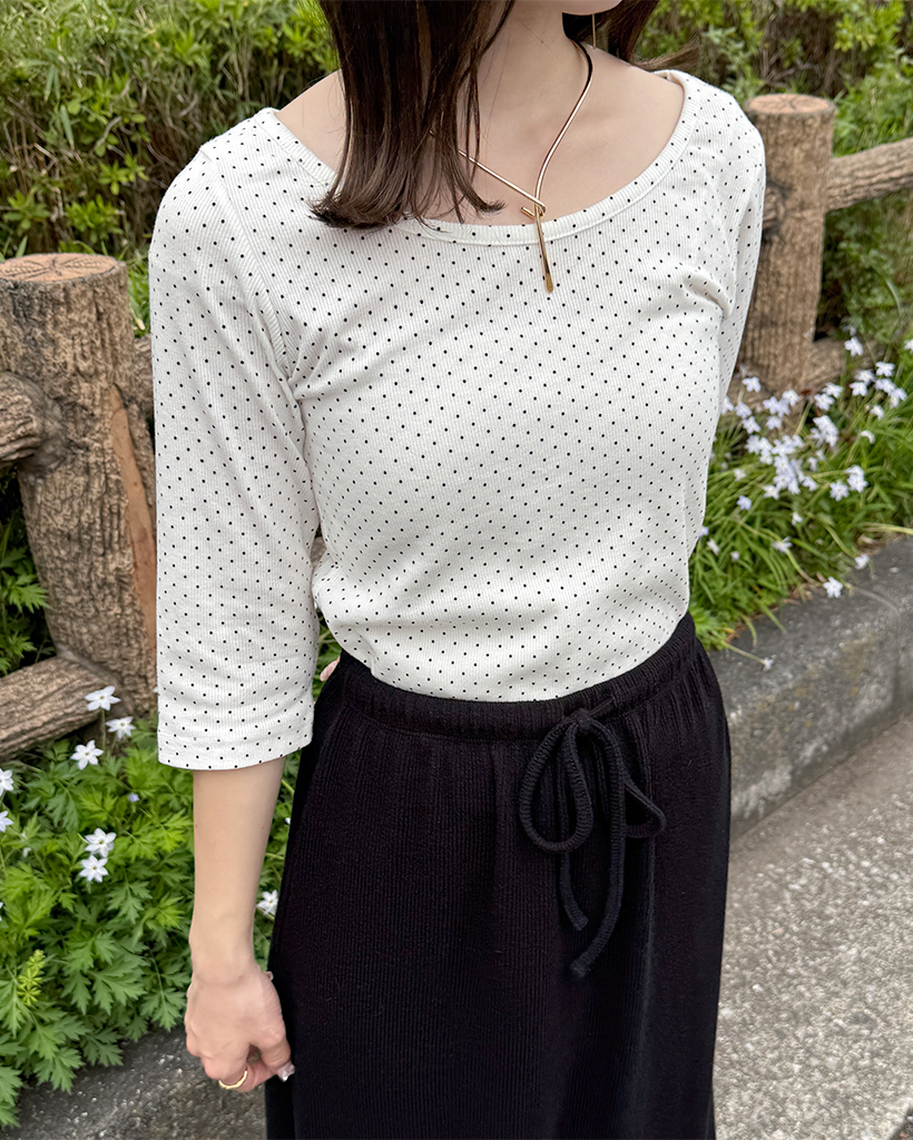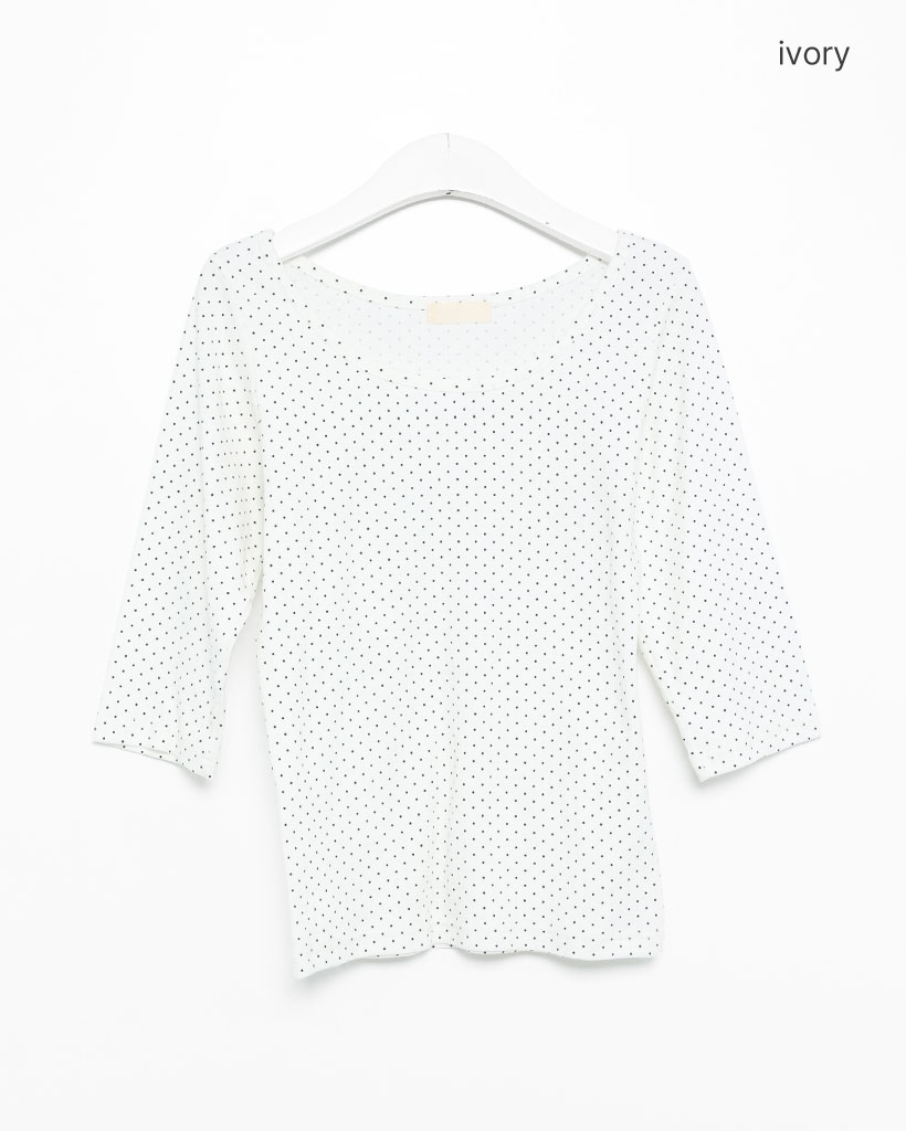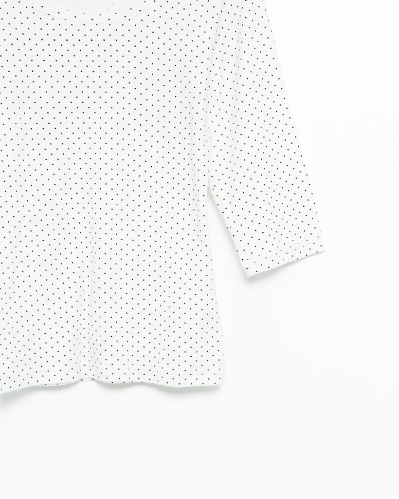 ラウンドネックドット柄ハンパ袖シャツ